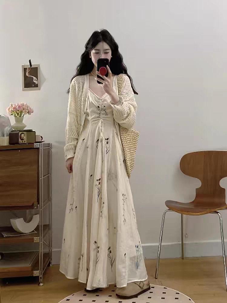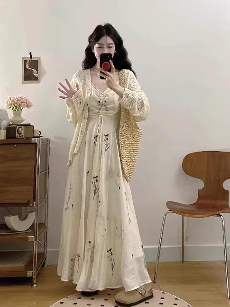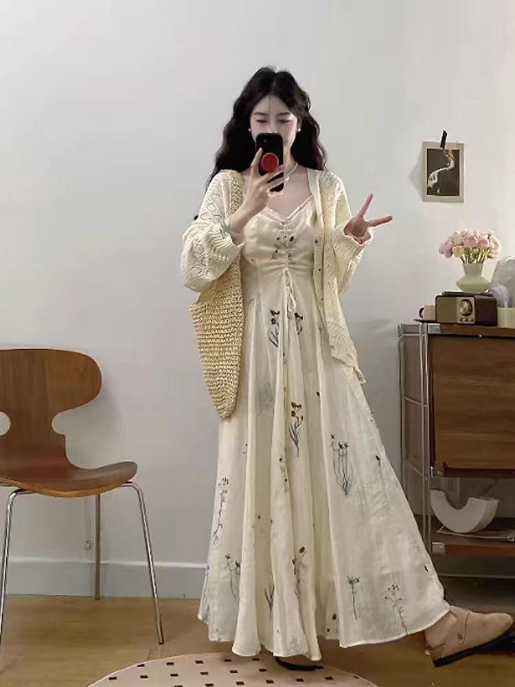 Sunscreen Cardigan + Slip Dress [Two-Piece Set]