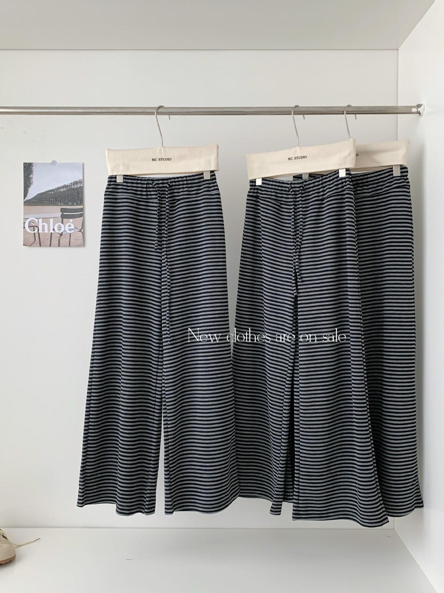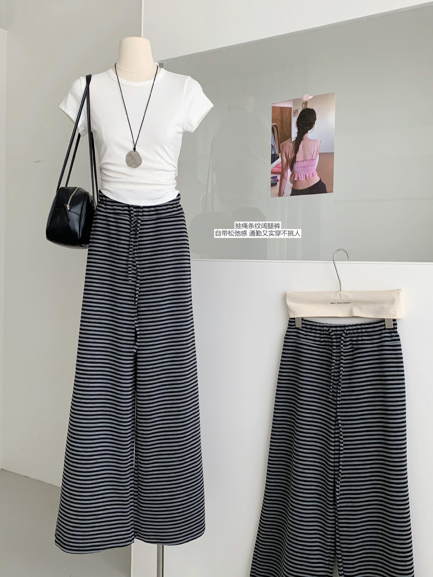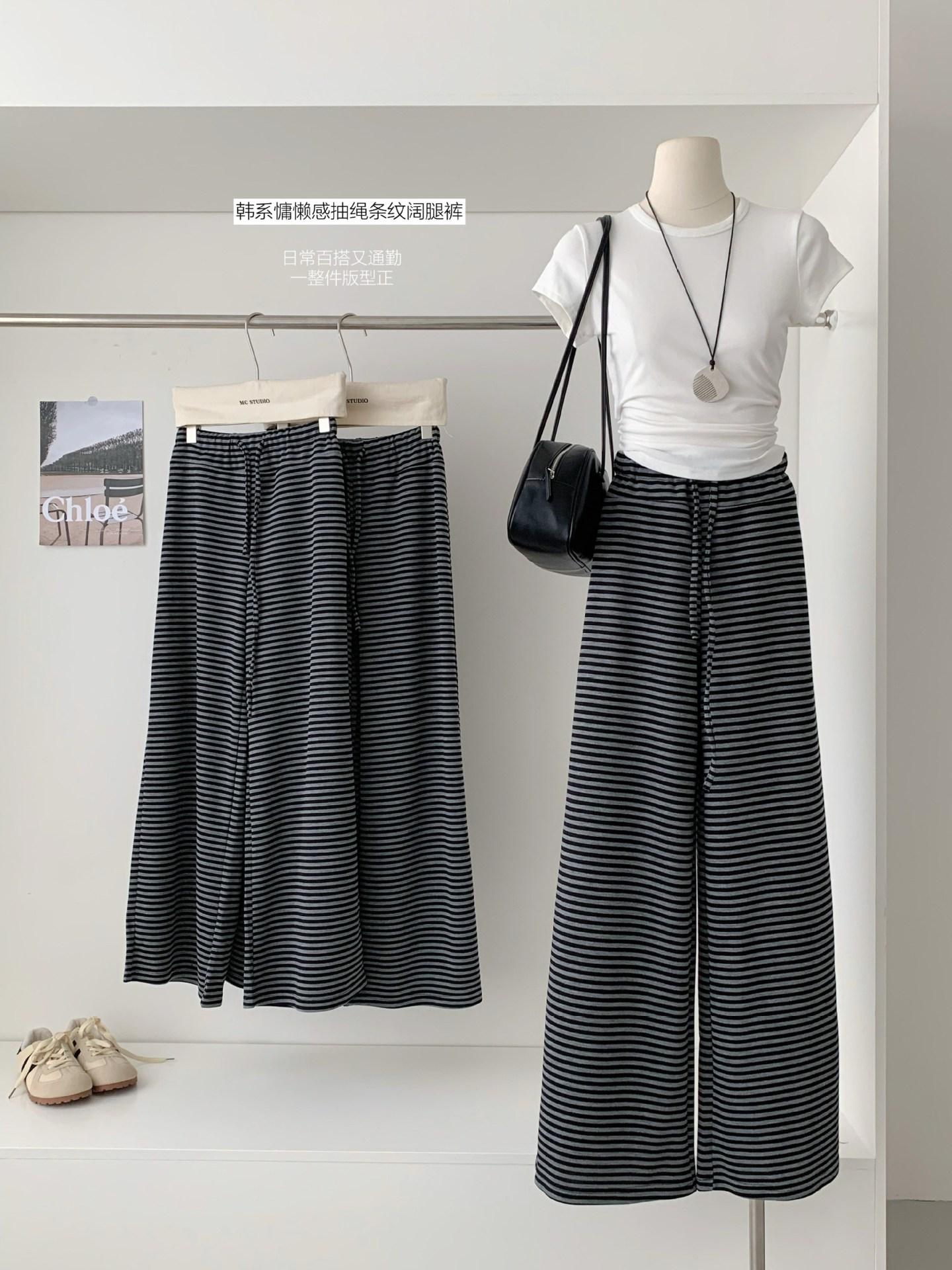 Otoño Estilo Coreano Nuevo Cintura Alta Adelgazante Retro Temperamento Pantalones Rectos Pantalones Largos Pantalones Casuales a Rayas Mujer