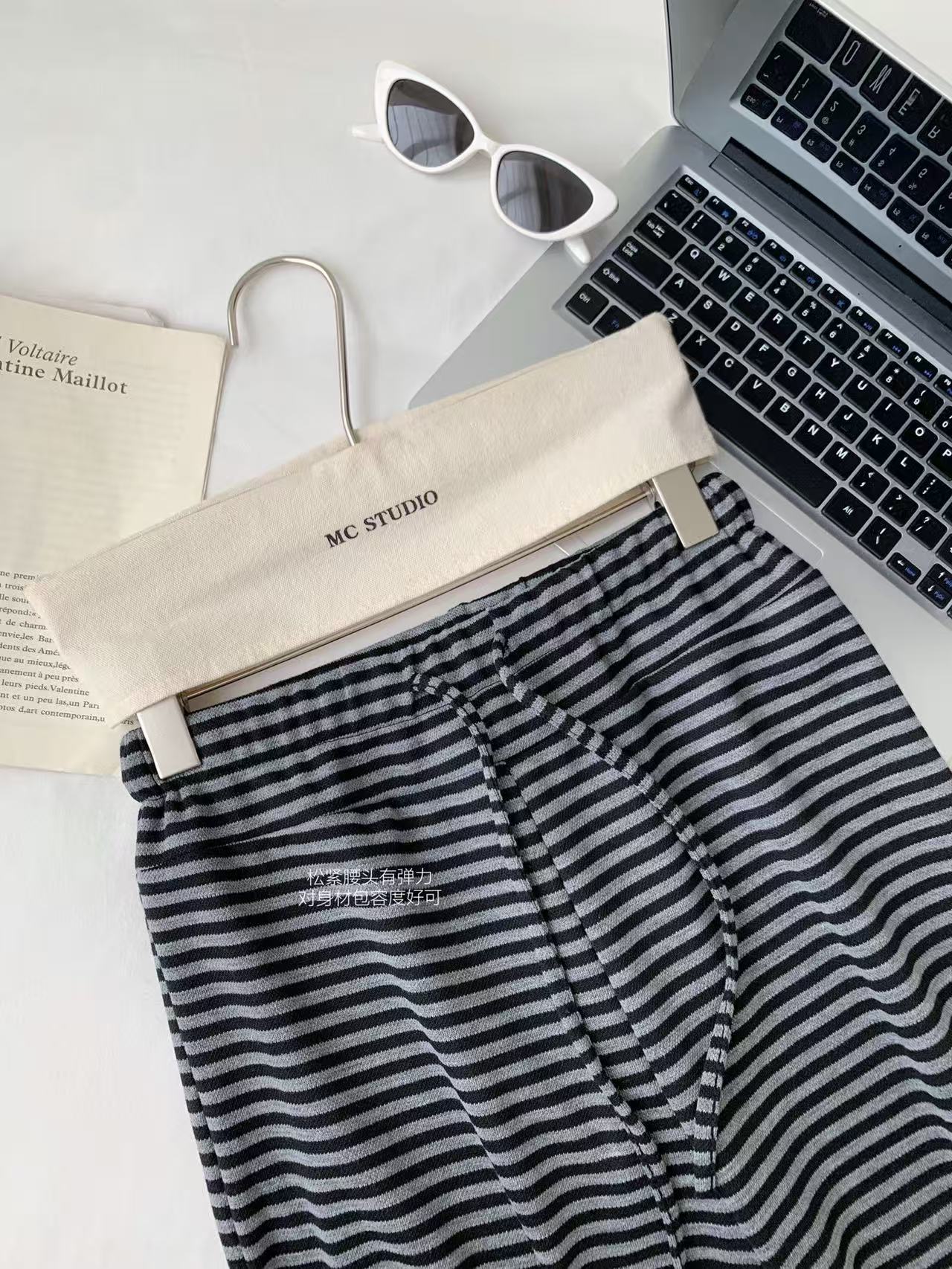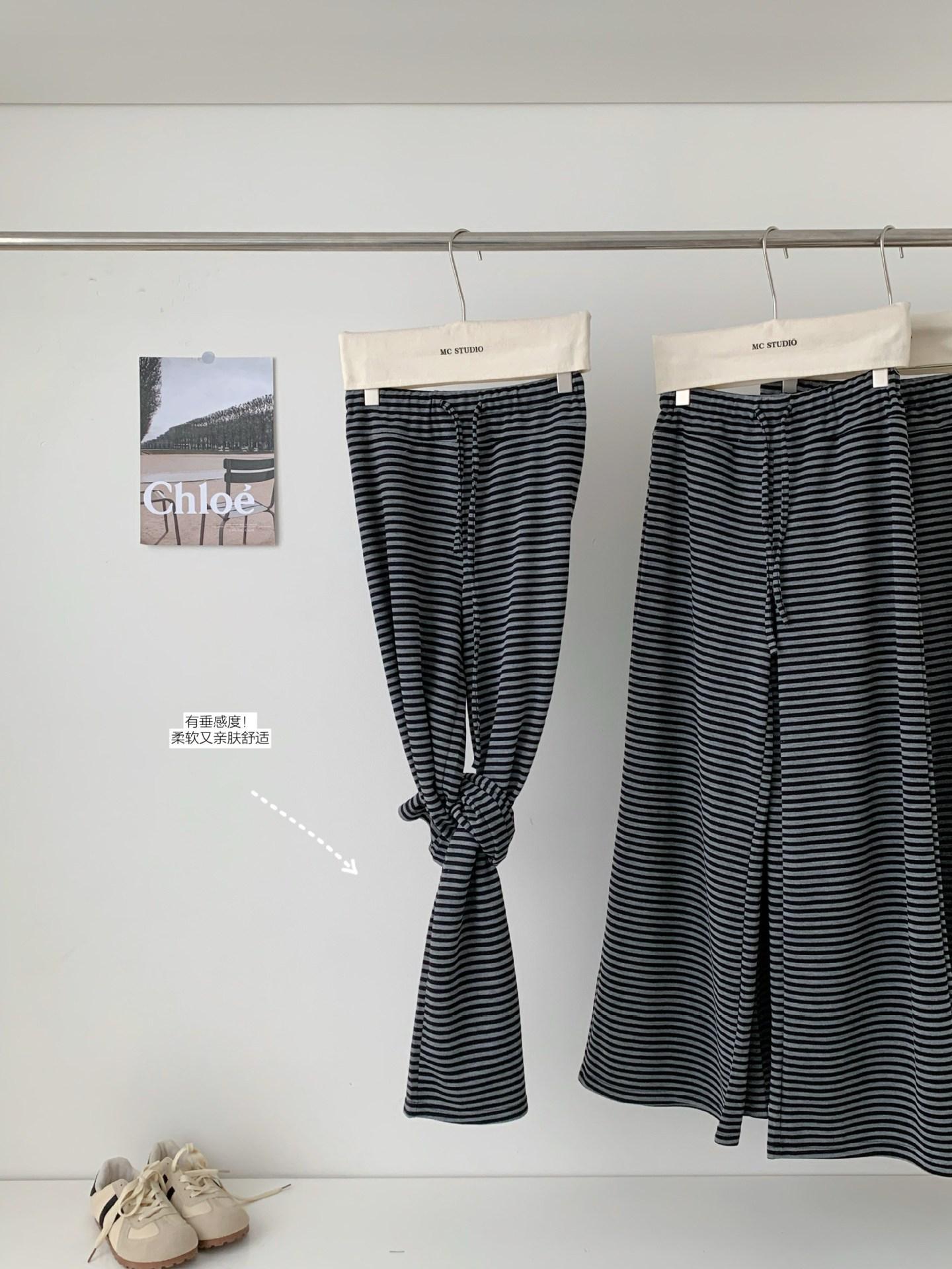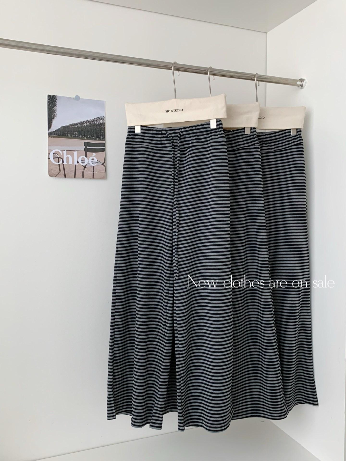 Otoño Estilo Coreano Nuevo Cintura Alta Adelgazante Retro Temperamento Pantalones Rectos Pantalones Largos Pantalones Casuales a Rayas Mujer