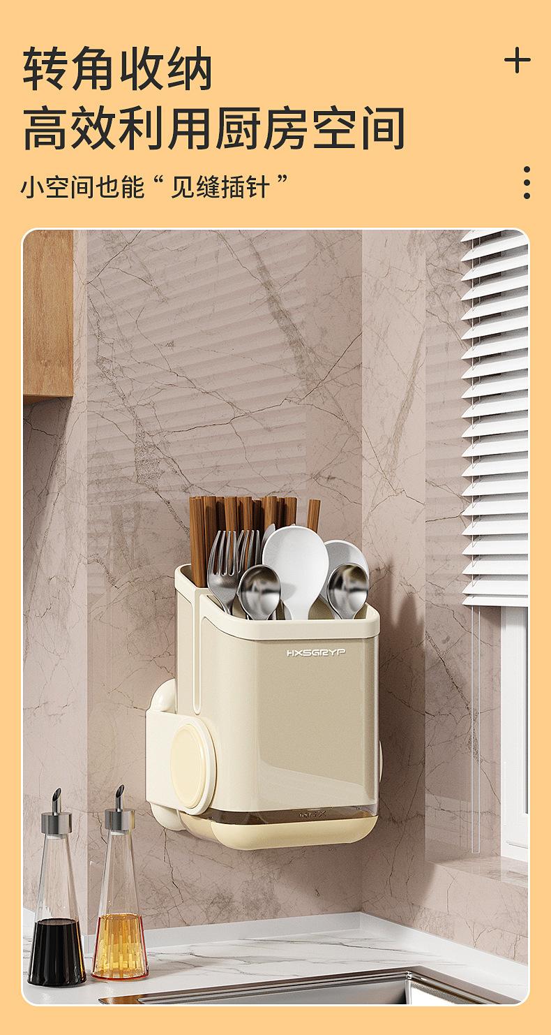 Caja de Almacenamiento de Palillos Montada en la Pared Sin Perforaciones Estante para Cubiertos de Cocina Soporte para Palillos con Drenaje Doméstico Tubo para Palillos Cuchara