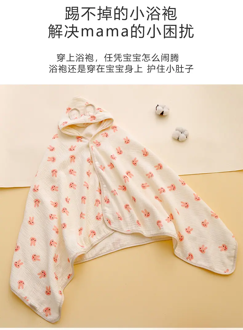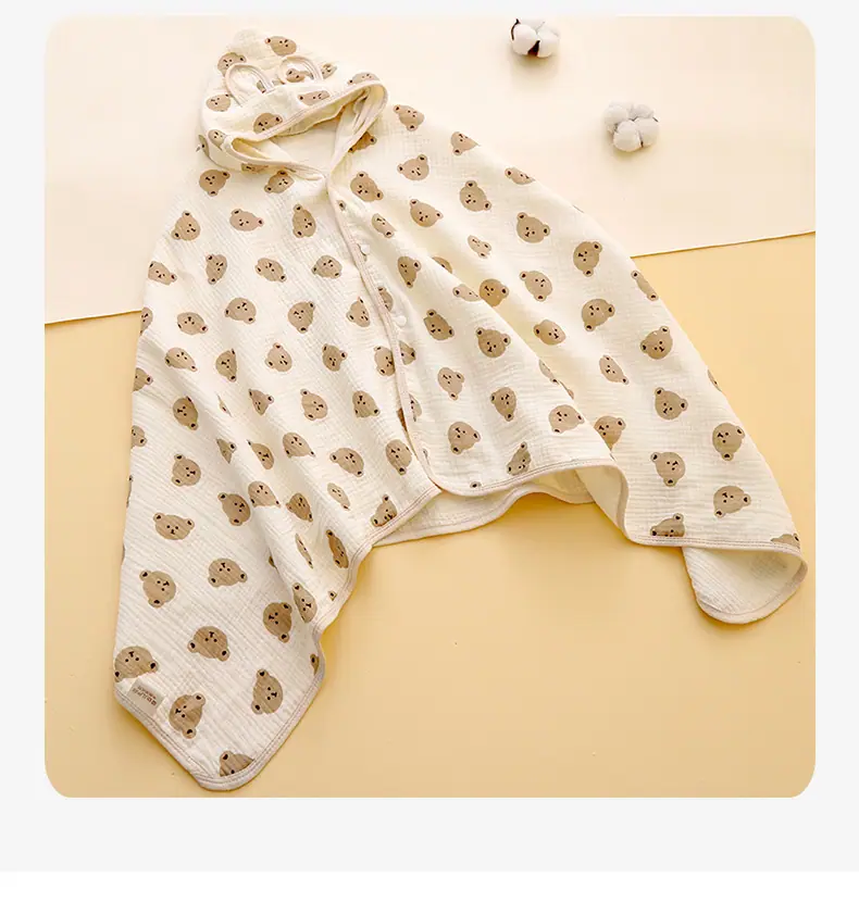 Capa Infantil Tipo a Gasa Algodón Puro Bebé Capa de Dibujos Animados Toalla de Baño para Bebé Albornoz con Capucha Lindo Dibujo Animado