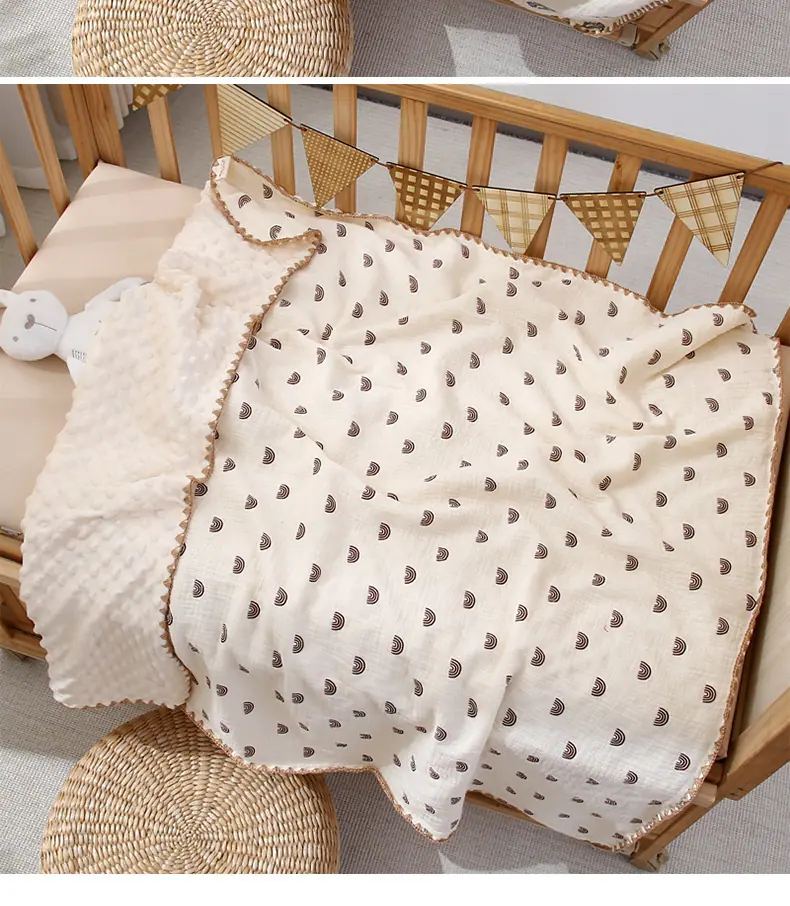Manta Gorro Manta para Bebé Gasa de Algodón Puro Manta para Bebé Edredón Gorro Envoltura para Recién Nacido Otoño e Invierno Manta para Niños