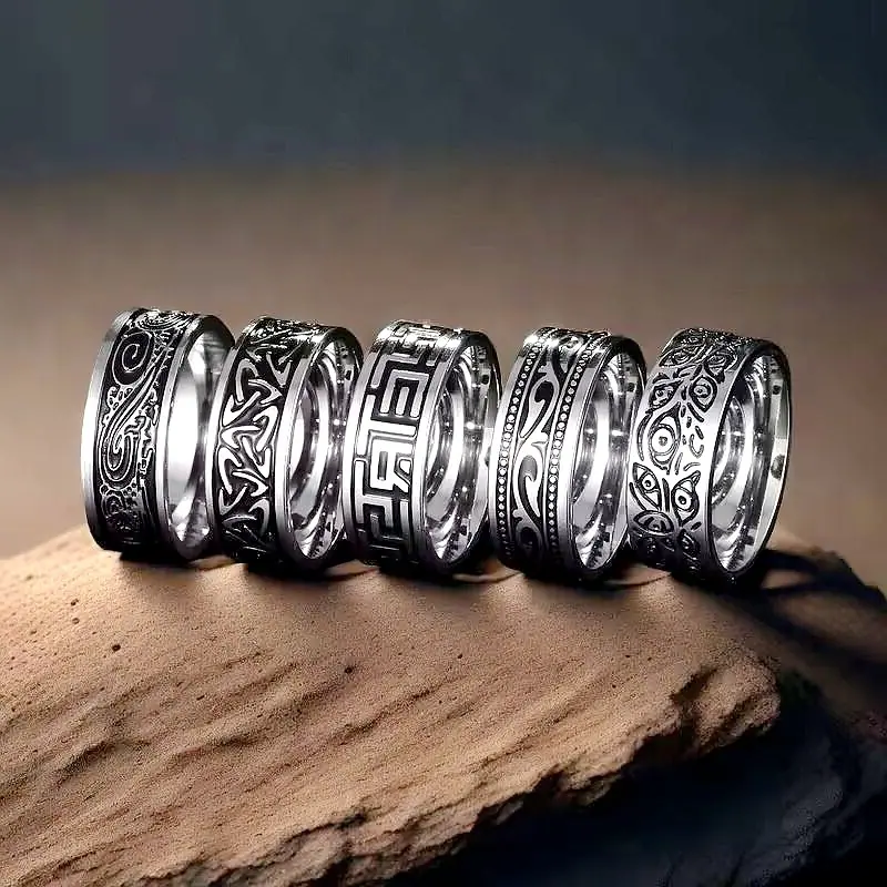 Fuente Venta al por Mayor Mano Estilo Caliente Europeo y Americano Retro Anillo Comercio Electrónico Anillo Popular de Acero de Titanio Personalidad Pareja Joyería de Moda
