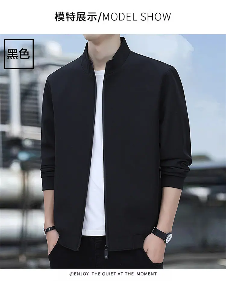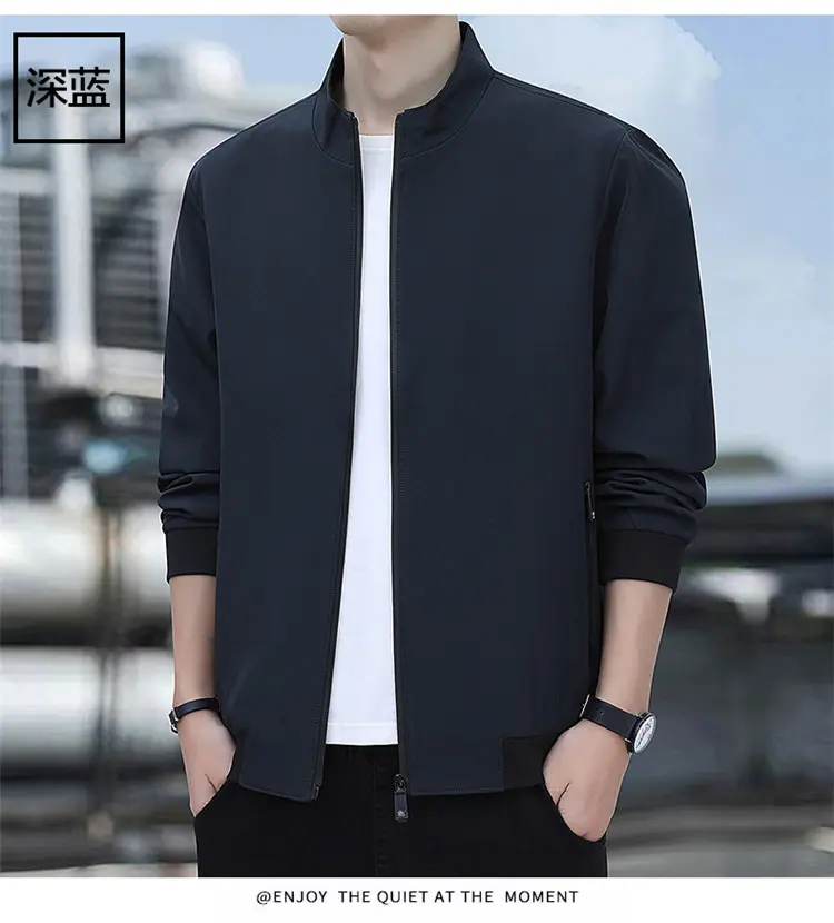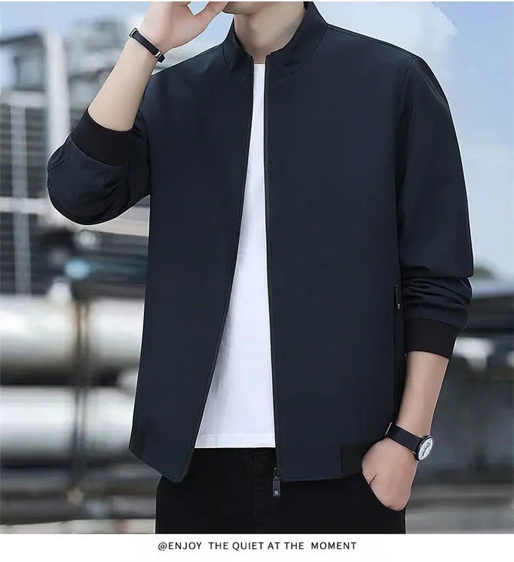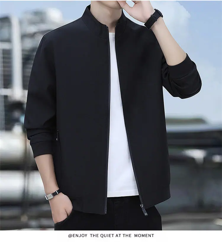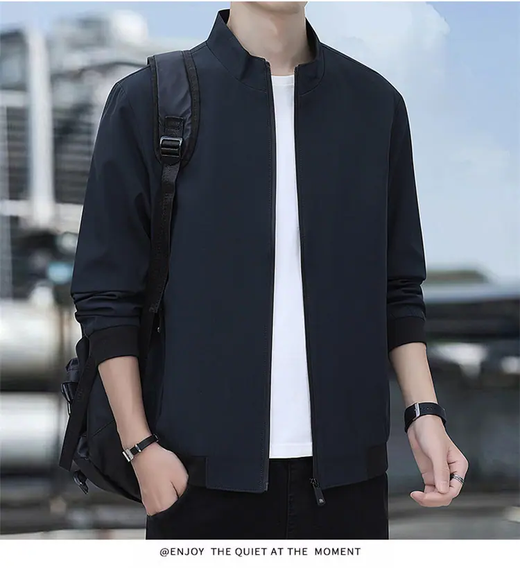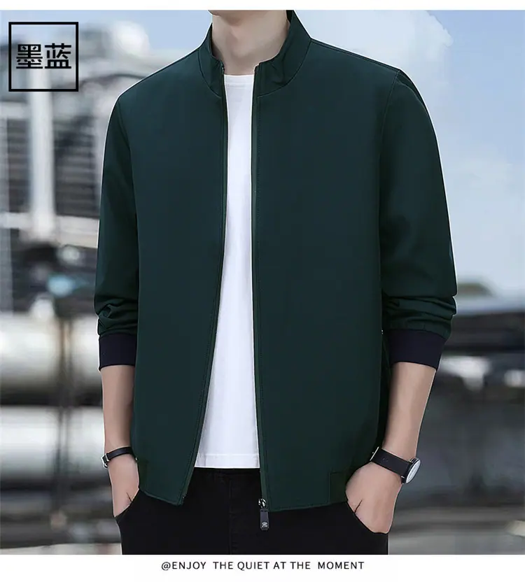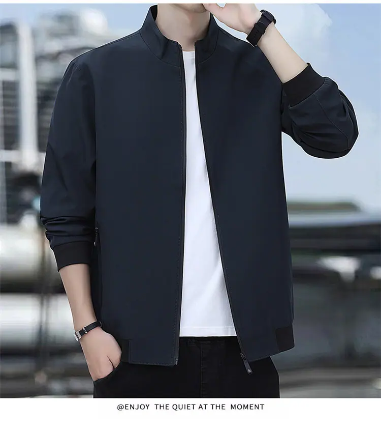 Chaqueta Casual Nueva para Hombre de Primavera y Otoño Chaqueta Abrigo de Color Sólido para Negocios con Cuello Vertical para Hombre