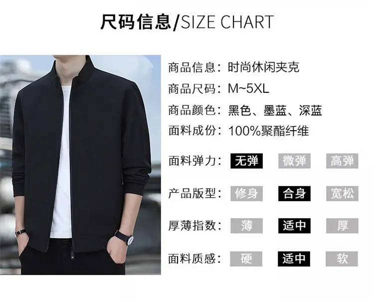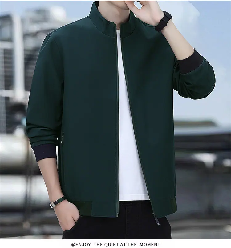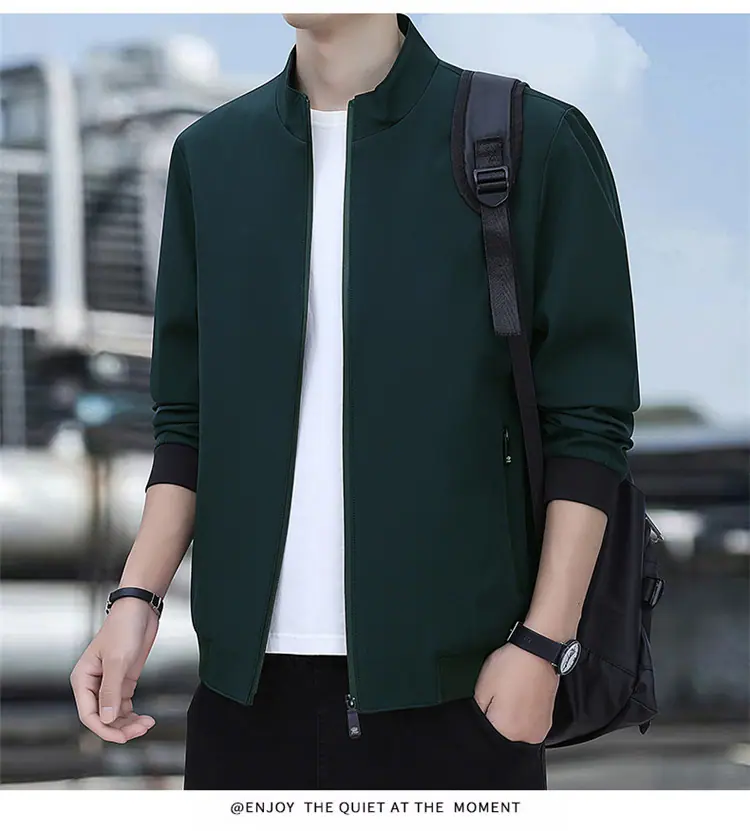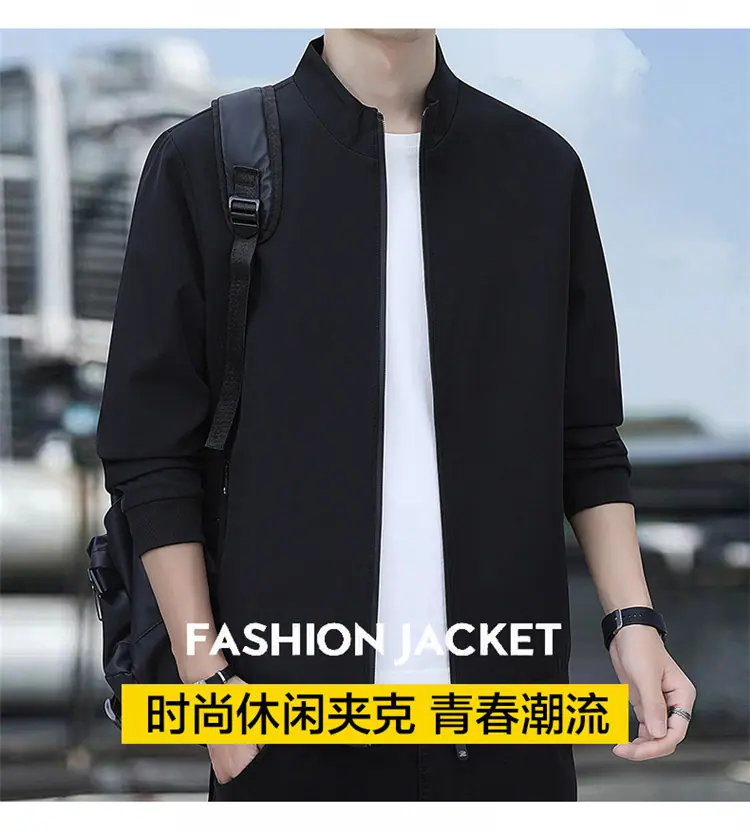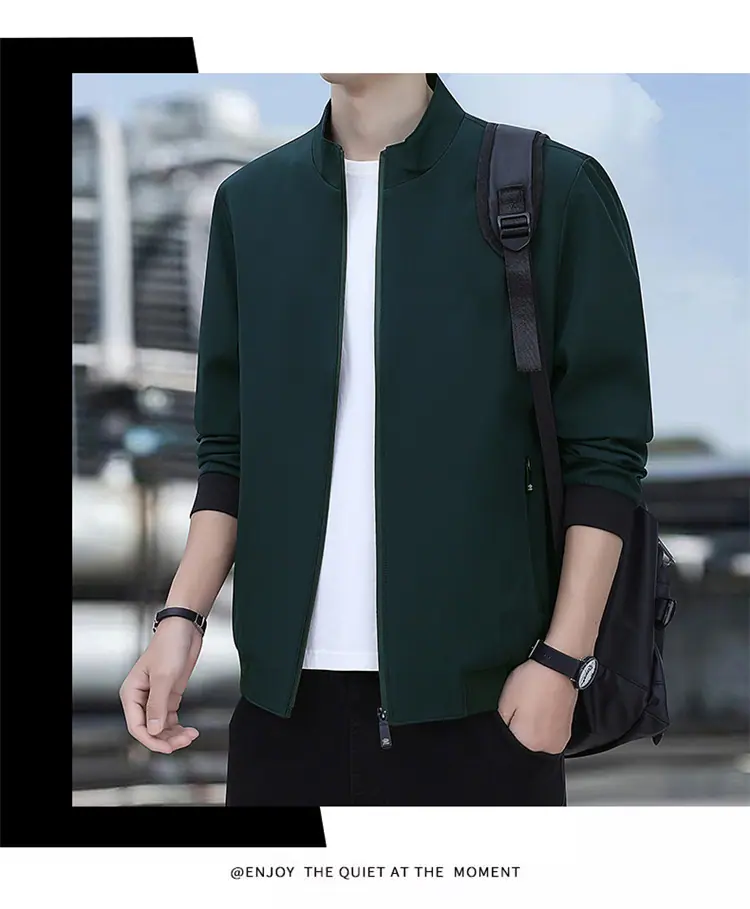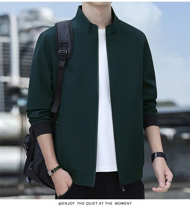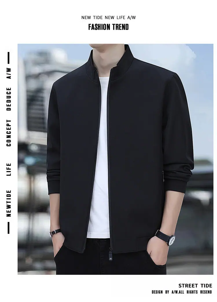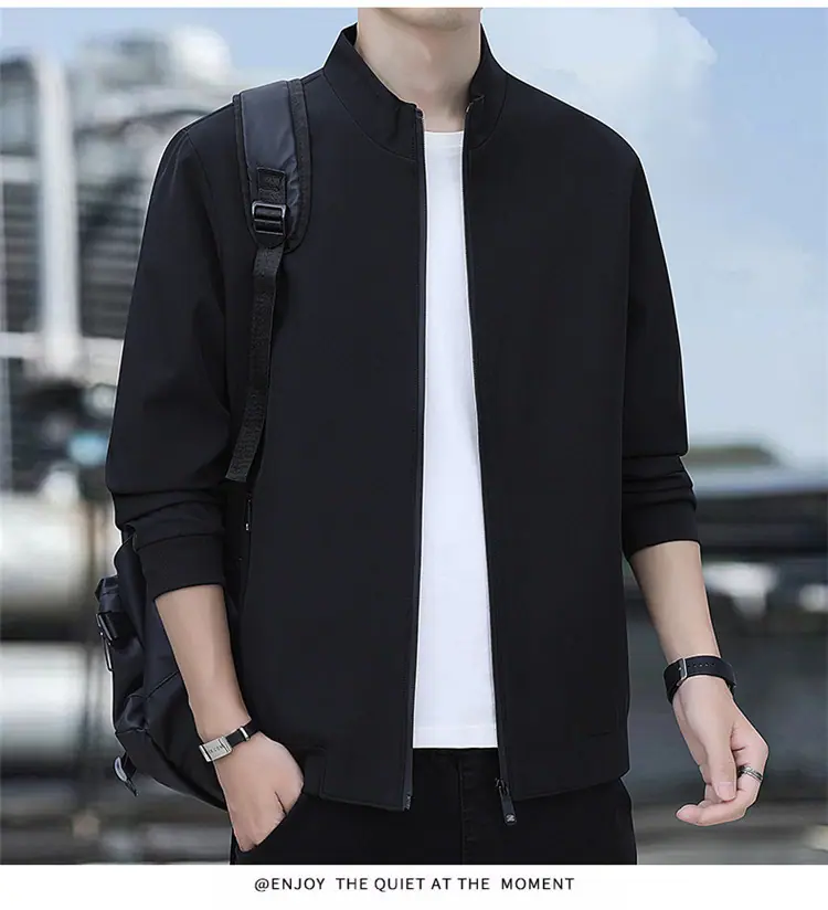 Chaqueta Casual Nueva para Hombre de Primavera y Otoño Chaqueta Abrigo de Color Sólido para Negocios con Cuello Vertical para Hombre