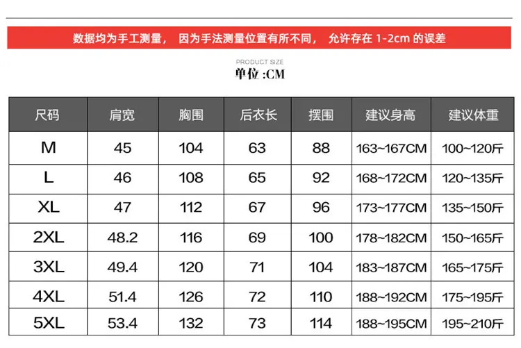M, L, XL, 2XL, 3XL, 4XL, 5XL