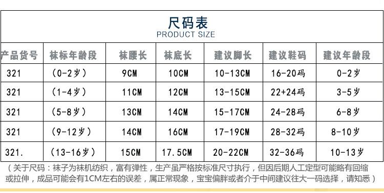Estándar de fábrica 1-4 años: Largo de la caña del calcetín 10cm Largo de la planta del calcetín 12cm