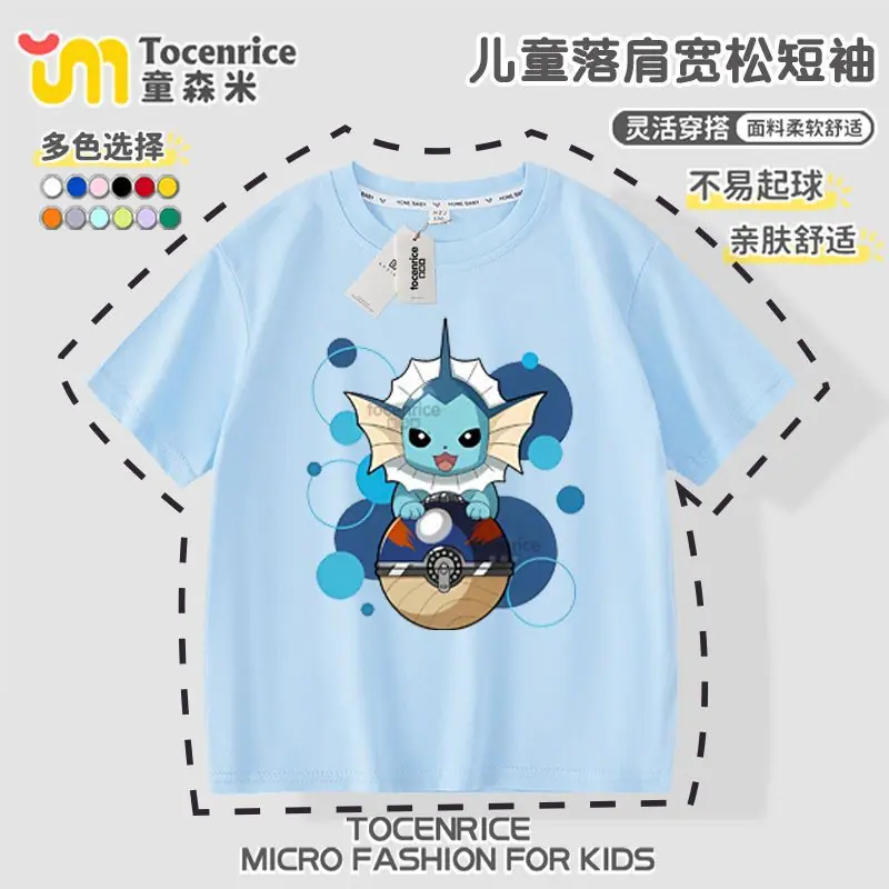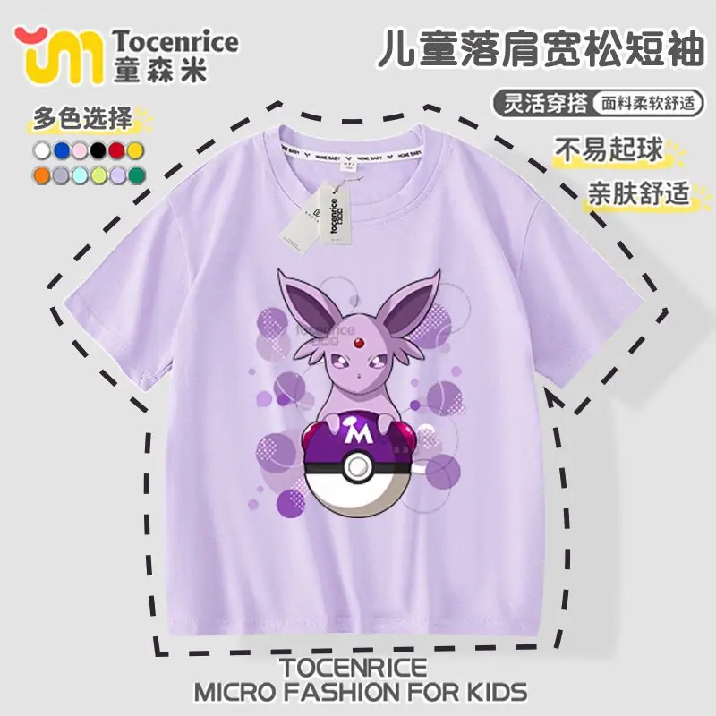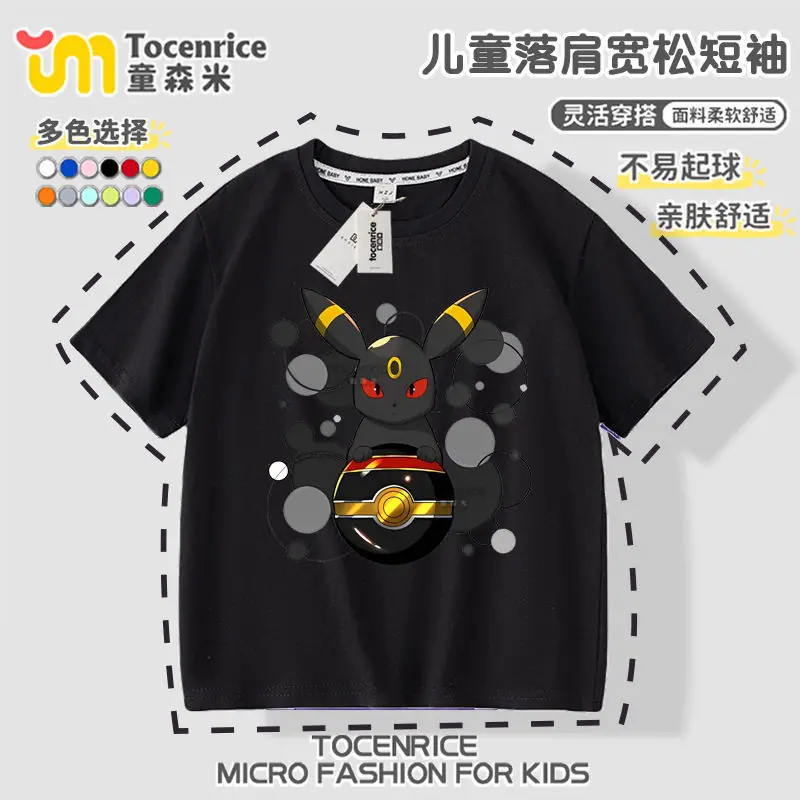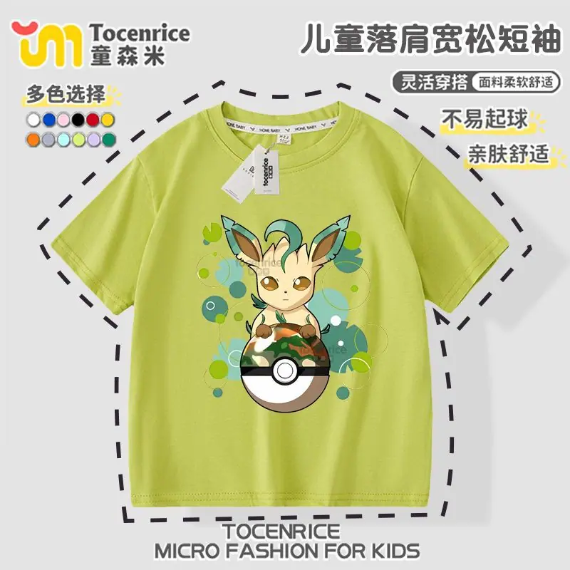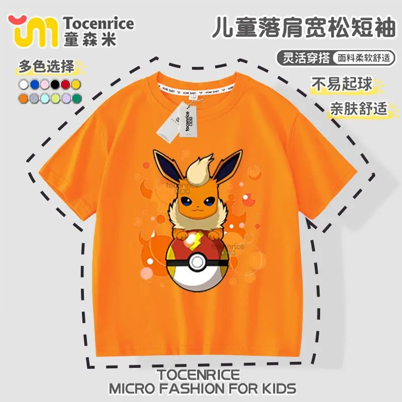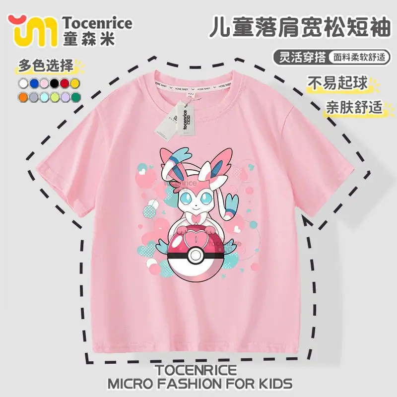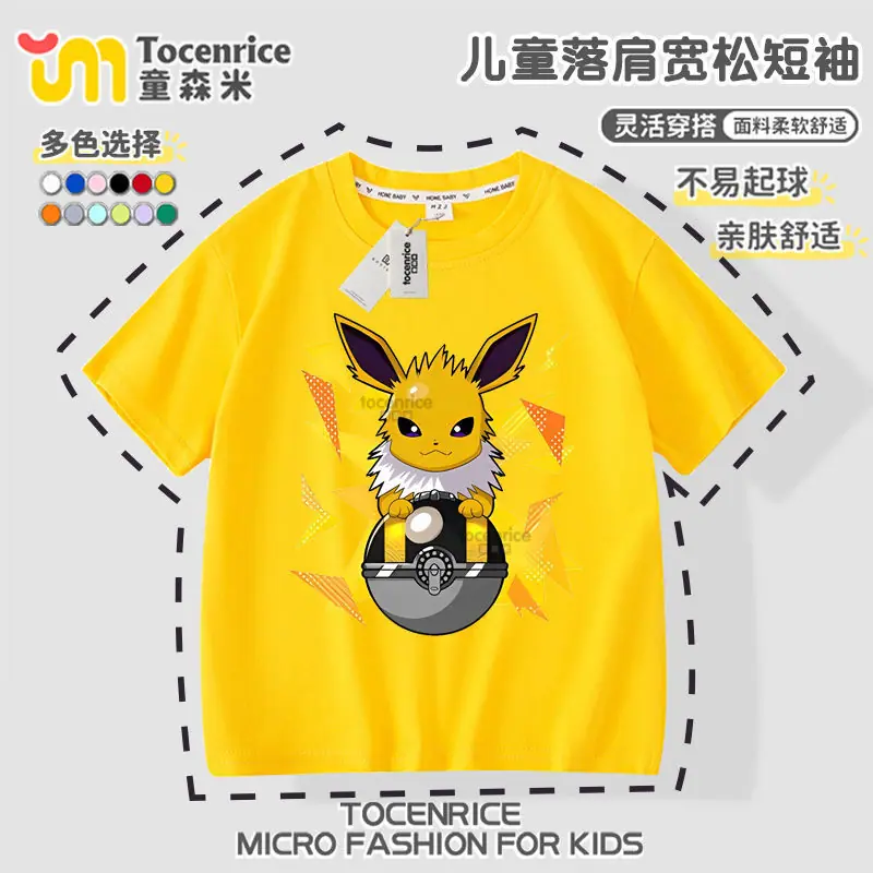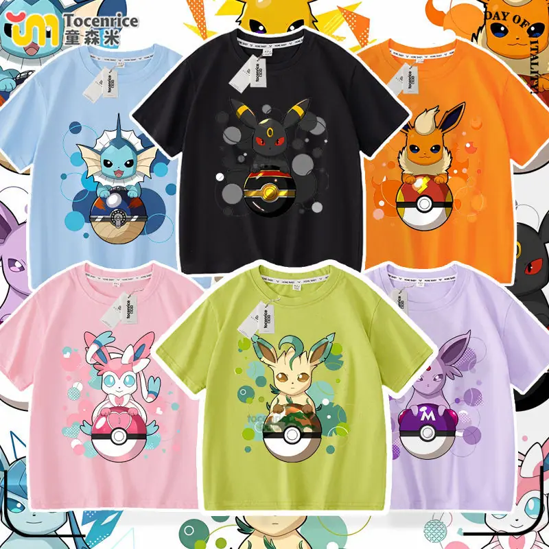 Camiseta de Manga Corta de Dibujos Animados Pokemon Pokemon Luna Fuego Hada Eevee para Hombre y Mujer Ropa de Estudiante para Niños