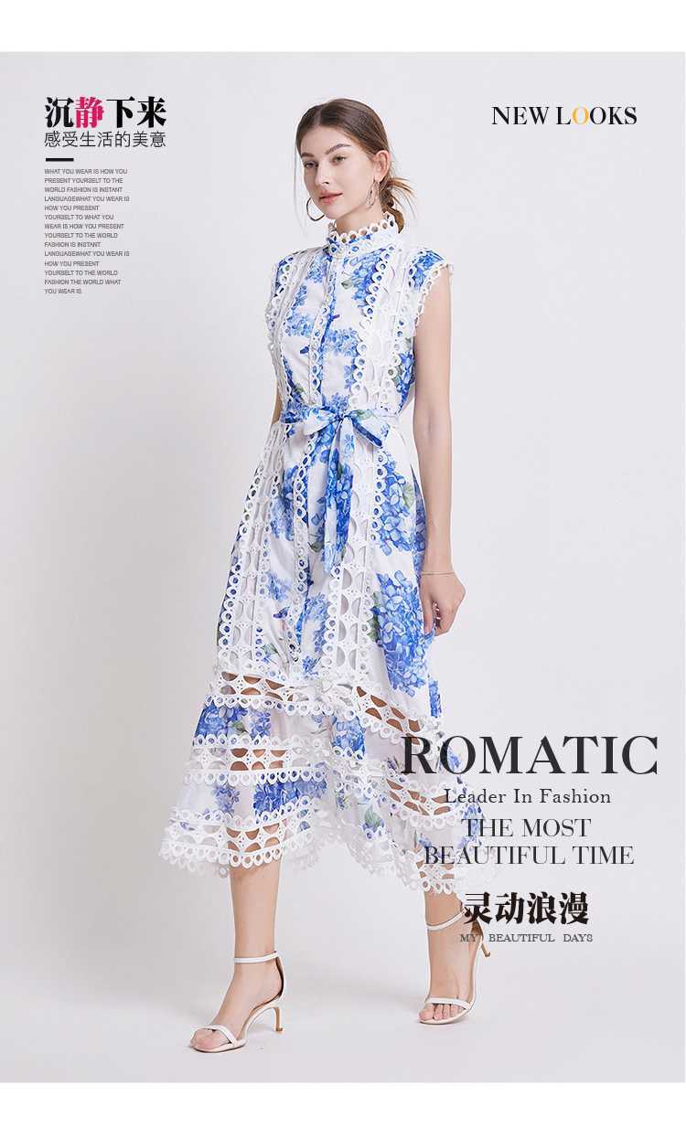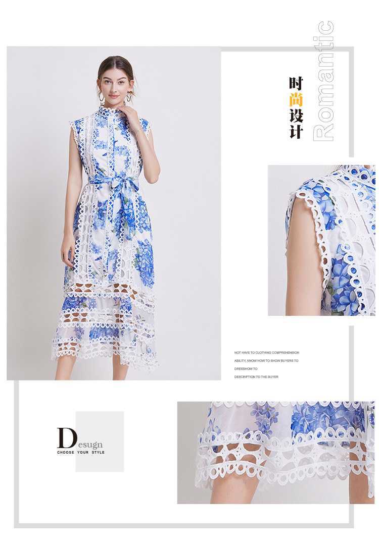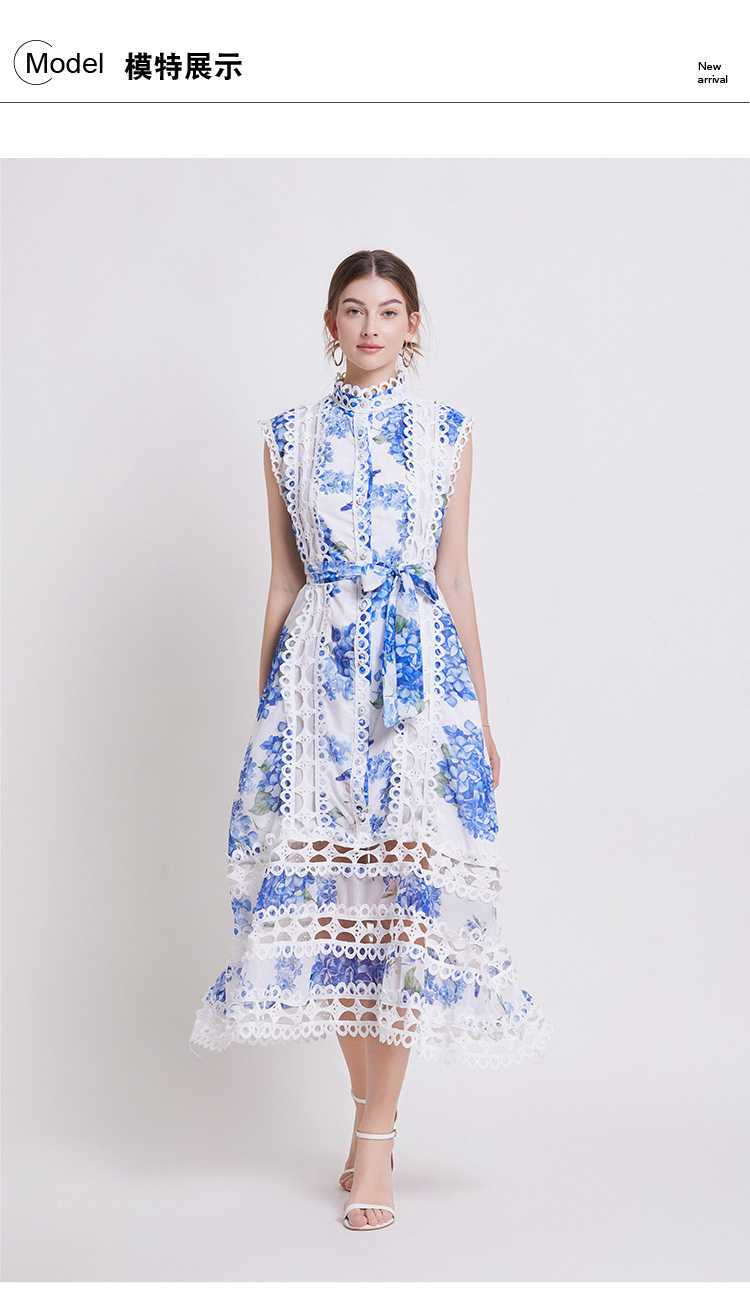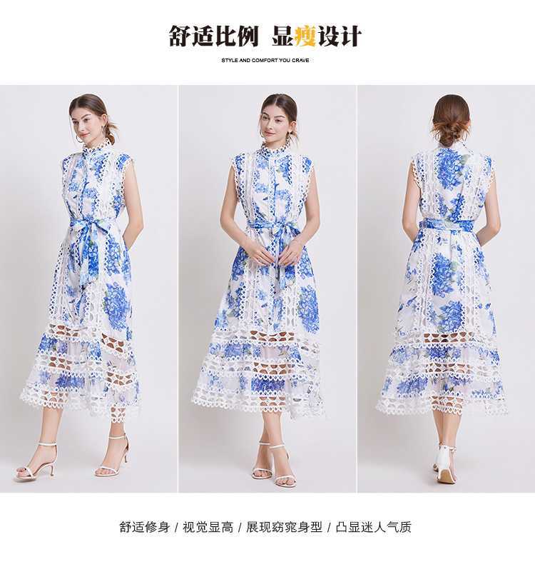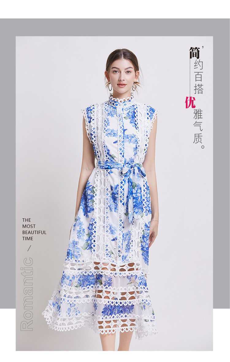 Foto Real en Stock-Falda A-Line de Encaje Calado Estilo Palacio Francés Verano Vestido Slim de Cuello Alto para Mujer