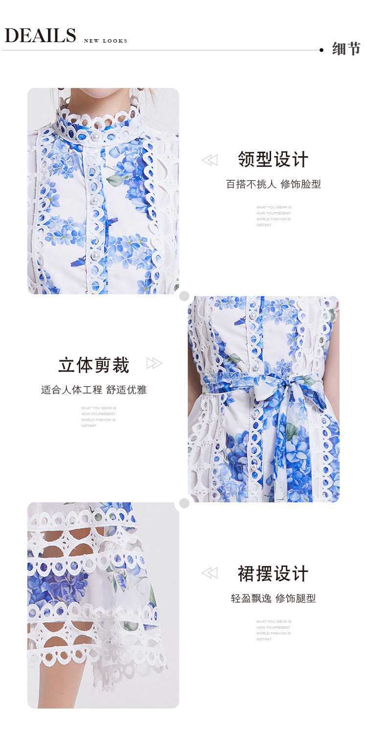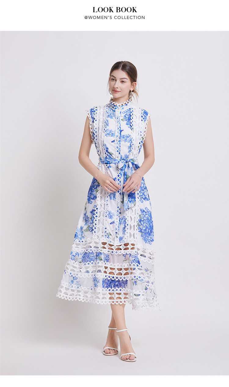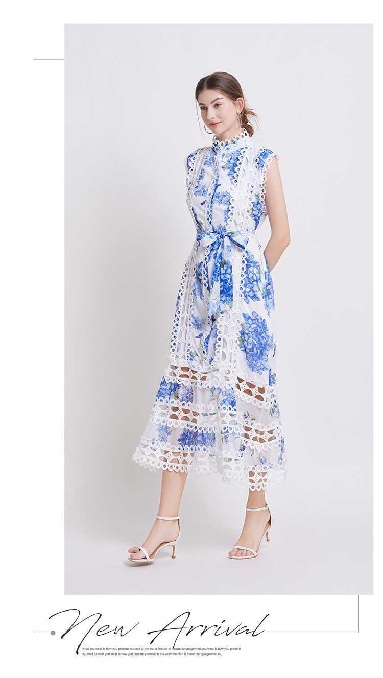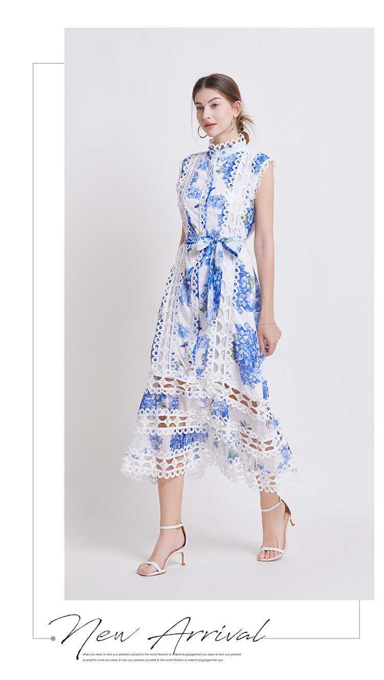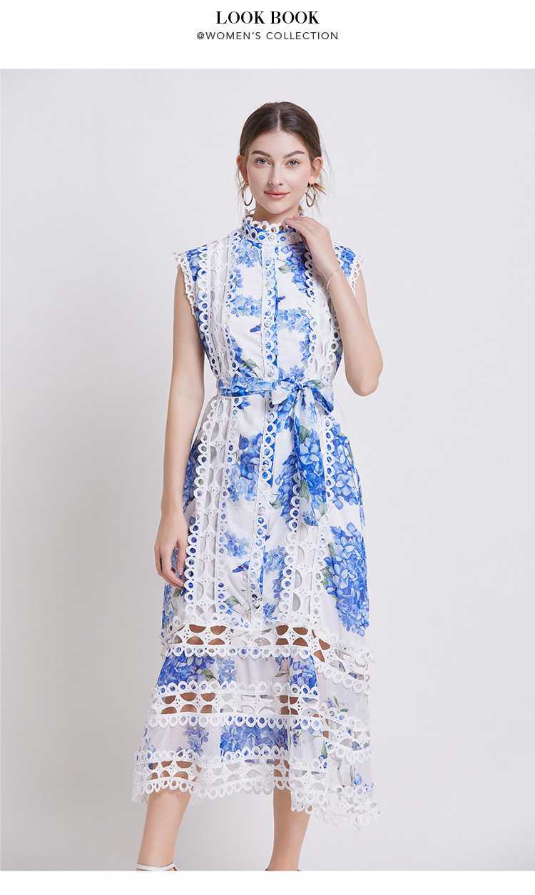 Foto Real en Stock-Falda A-Line de Encaje Calado Estilo Palacio Francés Verano Vestido Slim de Cuello Alto para Mujer