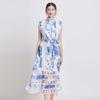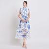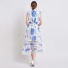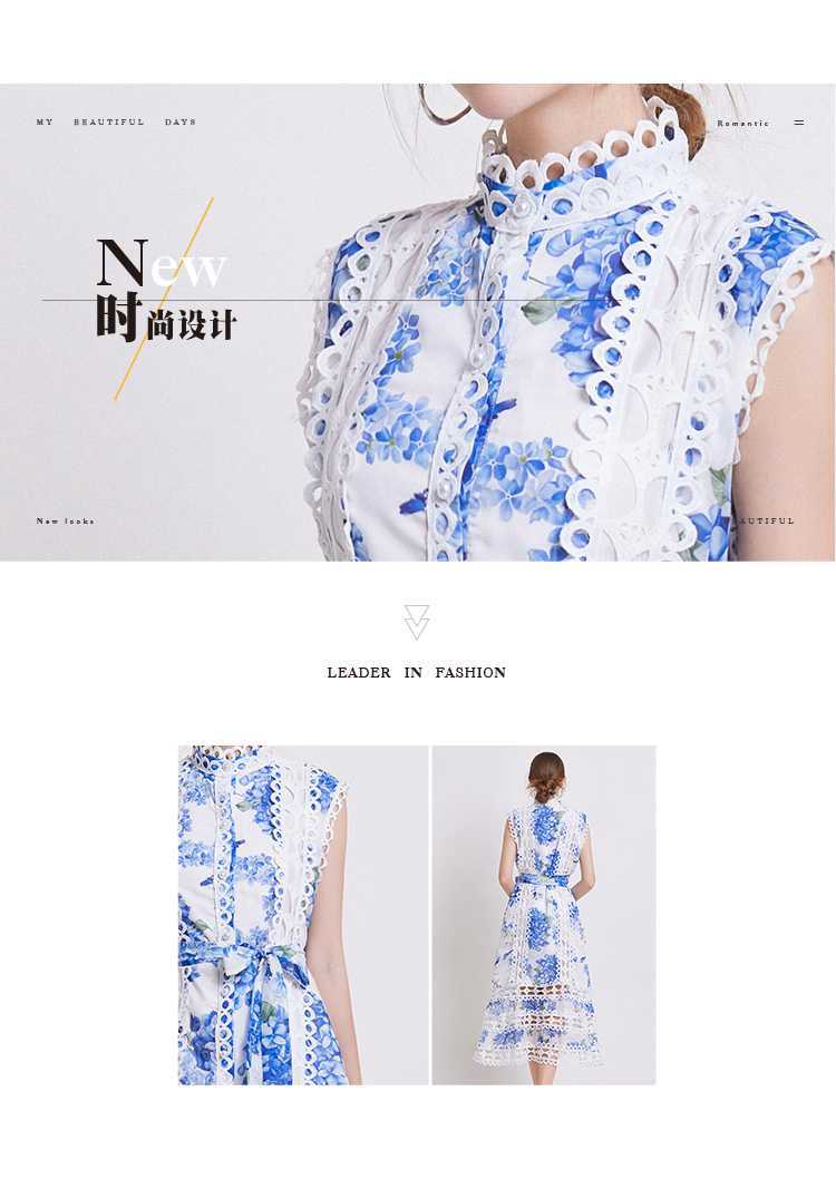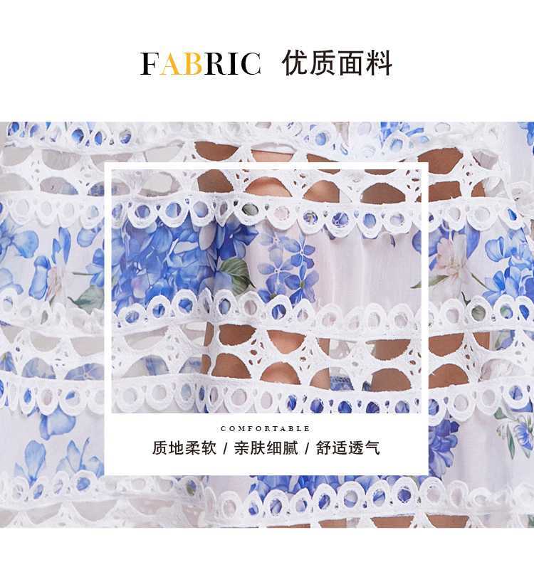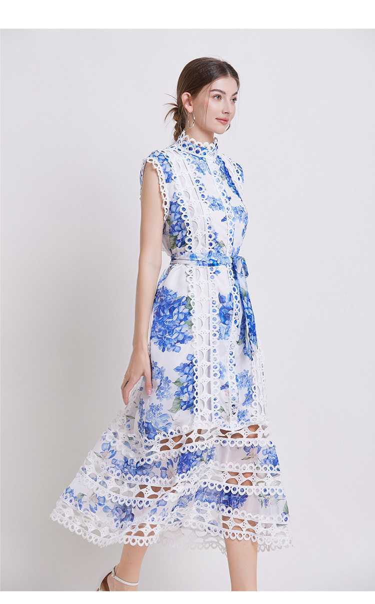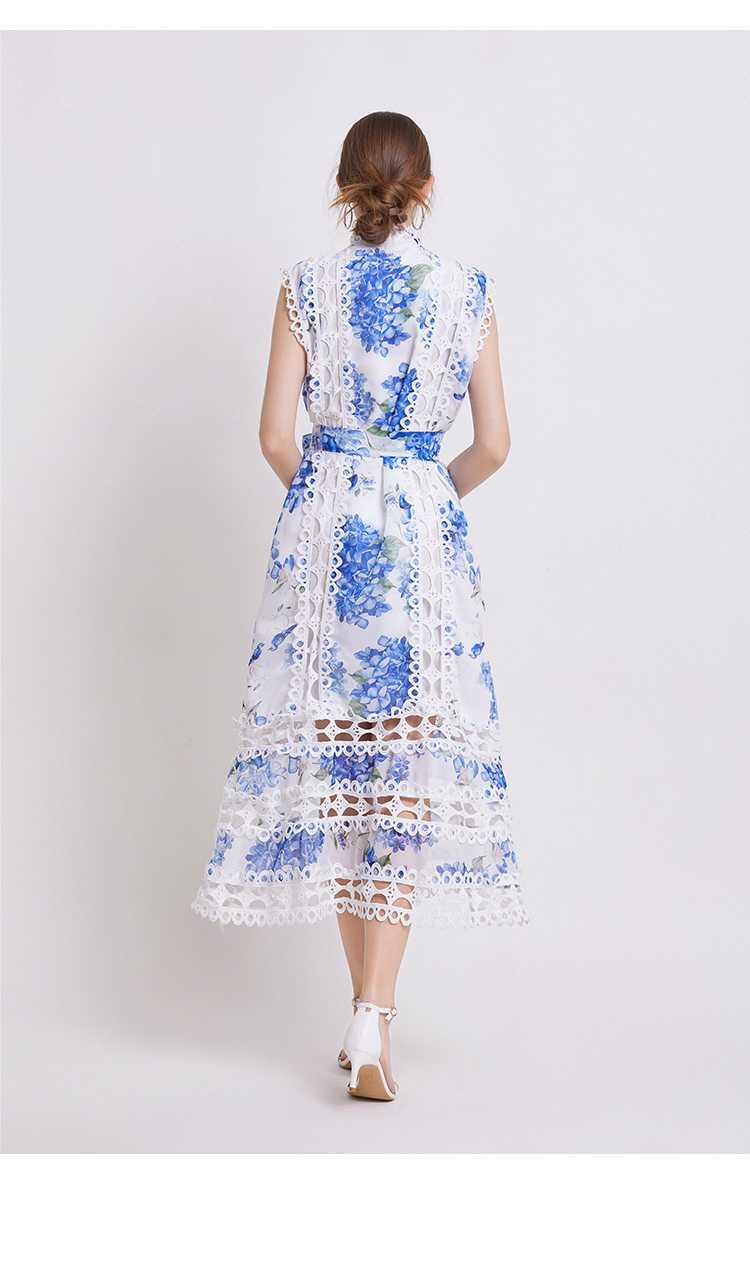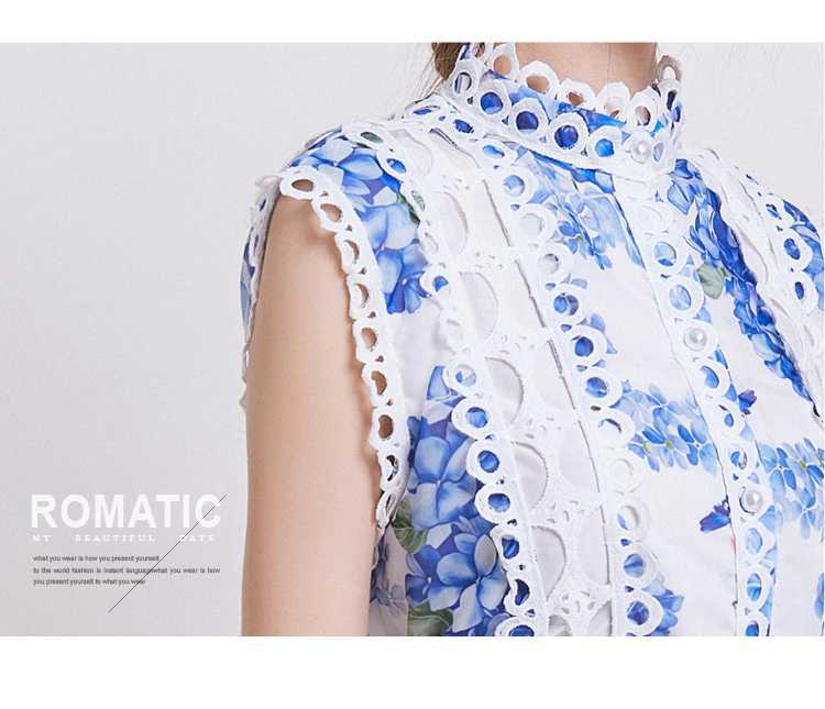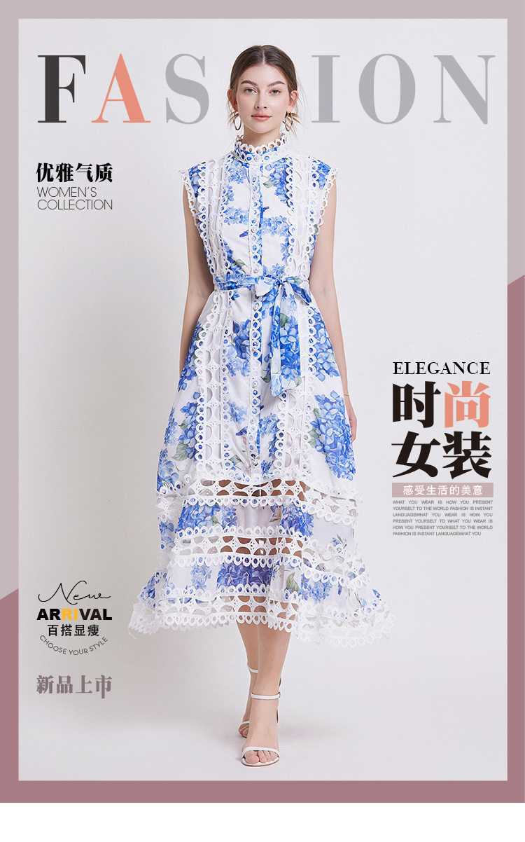 Foto Real en Stock-Falda A-Line de Encaje Calado Estilo Palacio Francés Verano Vestido Slim de Cuello Alto para Mujer