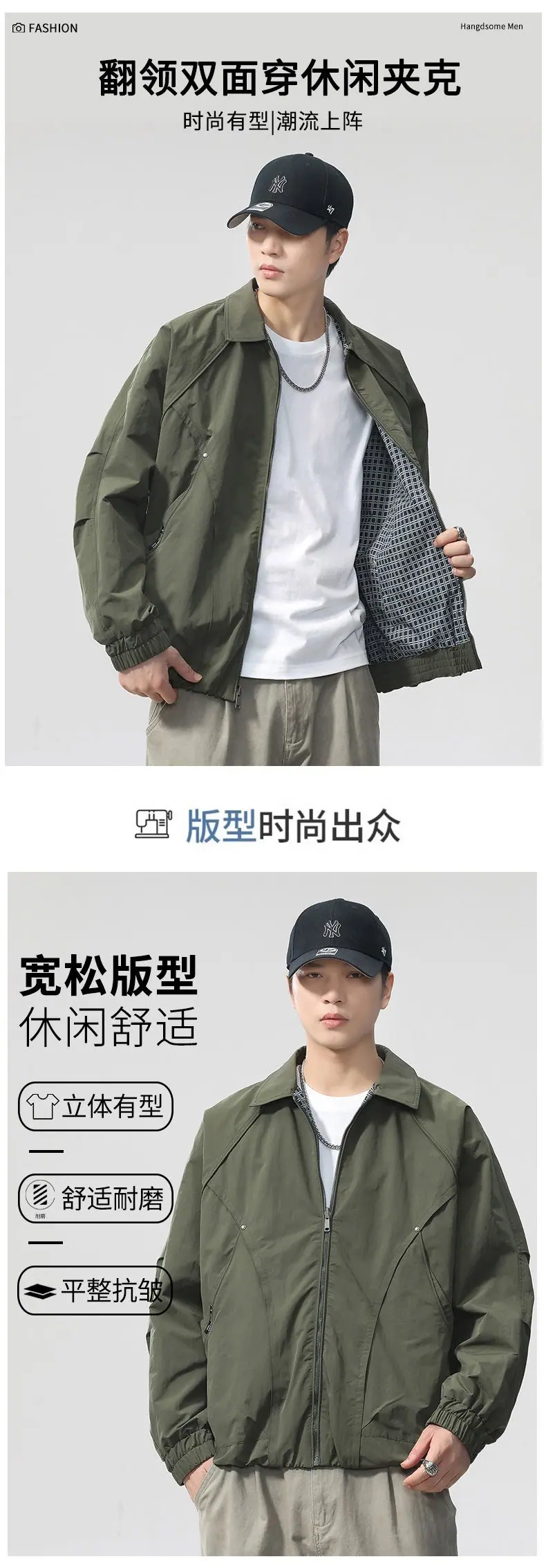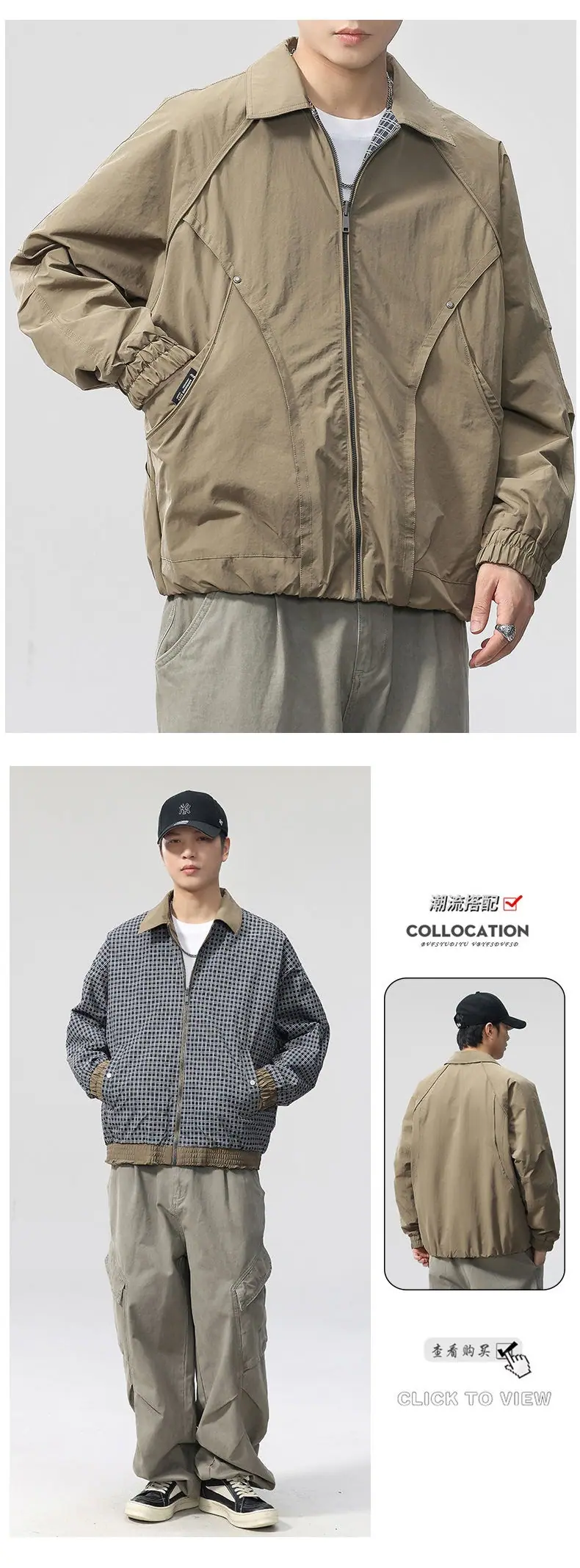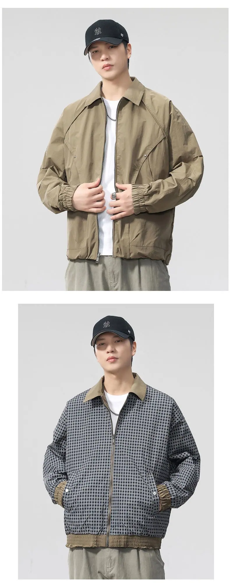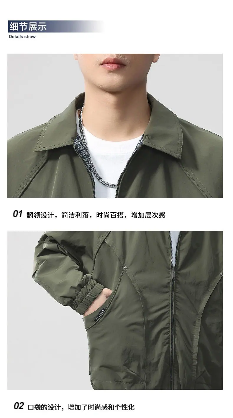Chaqueta de Trabajo Reversible Estilo Deconstruido con 20 Remaches para Hombre Otoño Nuevo Chaqueta Holgada F0932