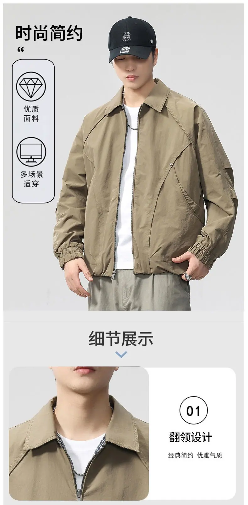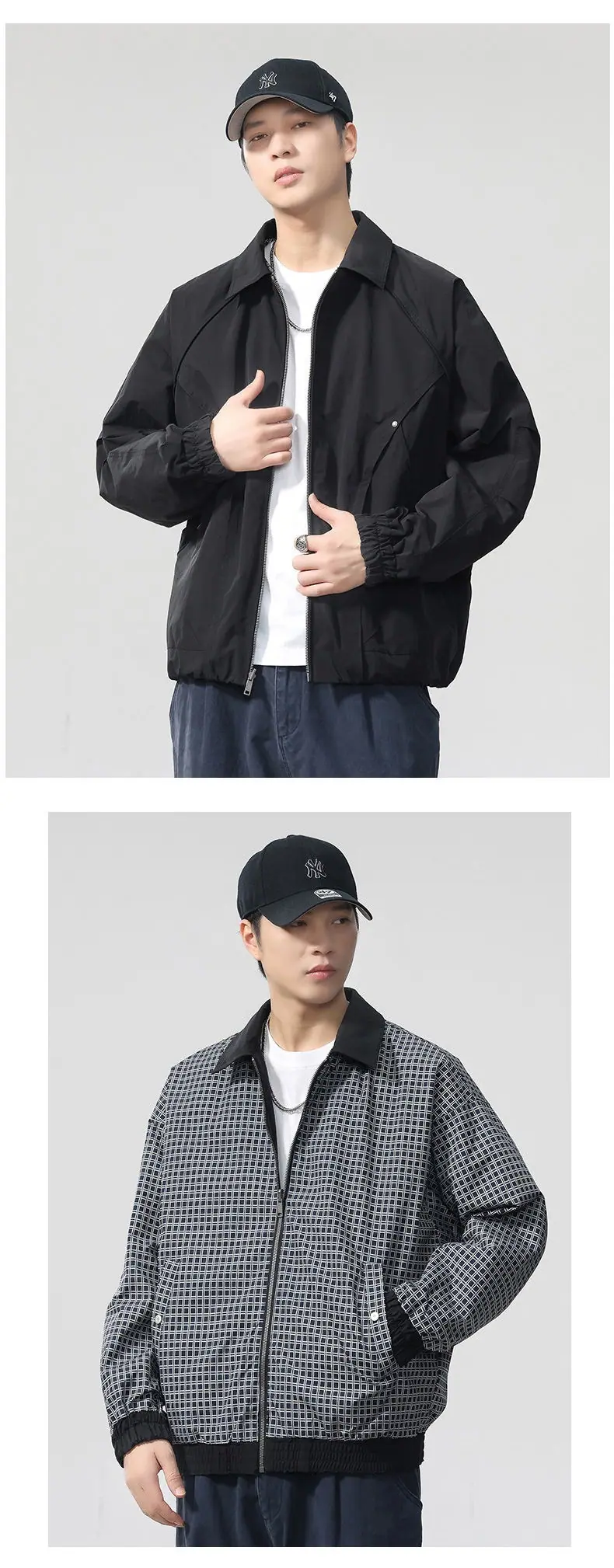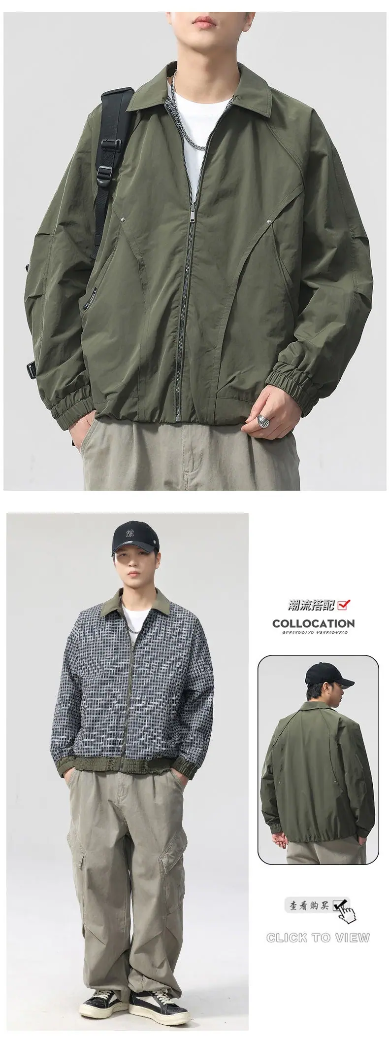 Chaqueta de Trabajo Reversible Estilo Deconstruido con 20 Remaches para Hombre Otoño Nuevo Chaqueta Holgada F0932