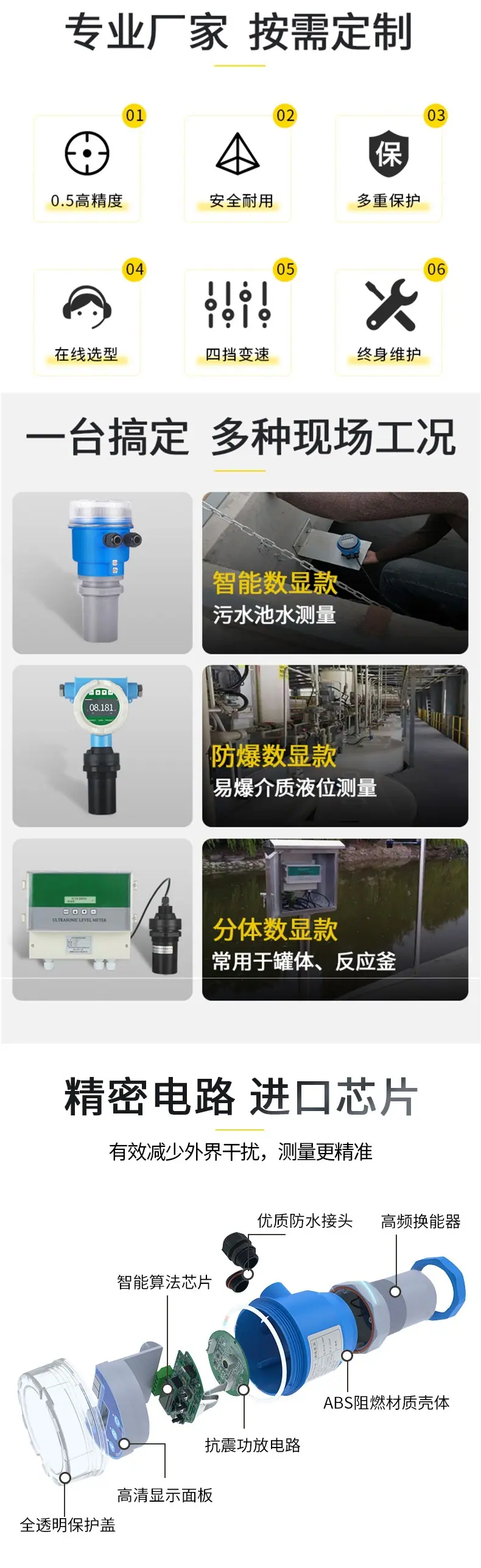 Sensor Medidor de Nivel Ultrasónico Integrado a Prueba de Explosiones Anticorrosivo Tipo Dividido Medidor de Nivel de Agua Medidor de Nivel de Material Transmisor de Nivel de Silo