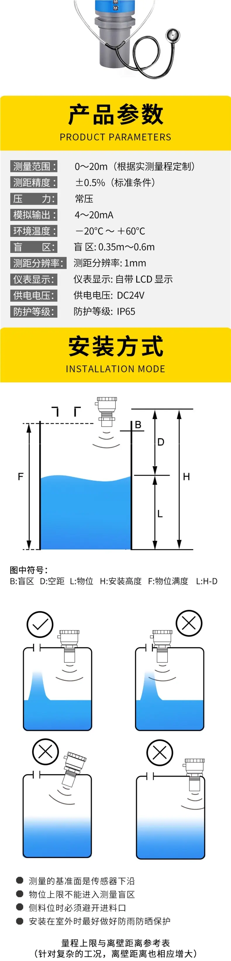 0~10 meters Two-wire 4~20mA DC24V High-volume model