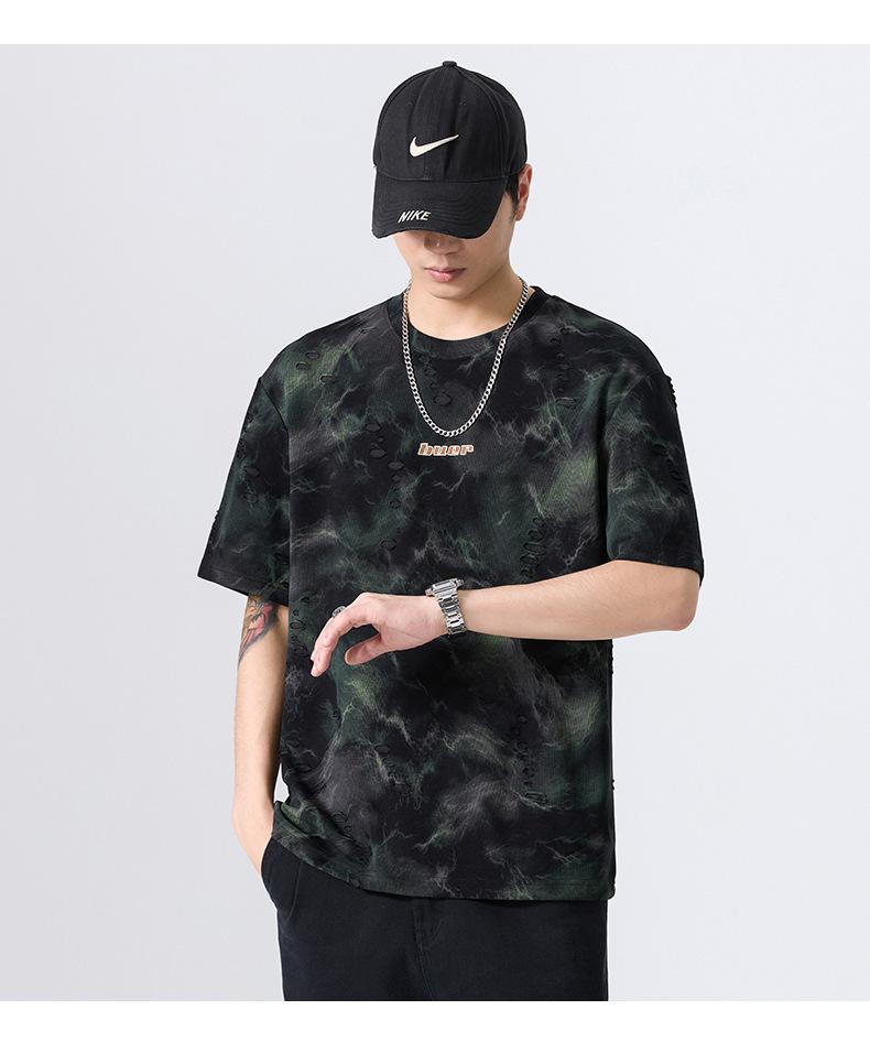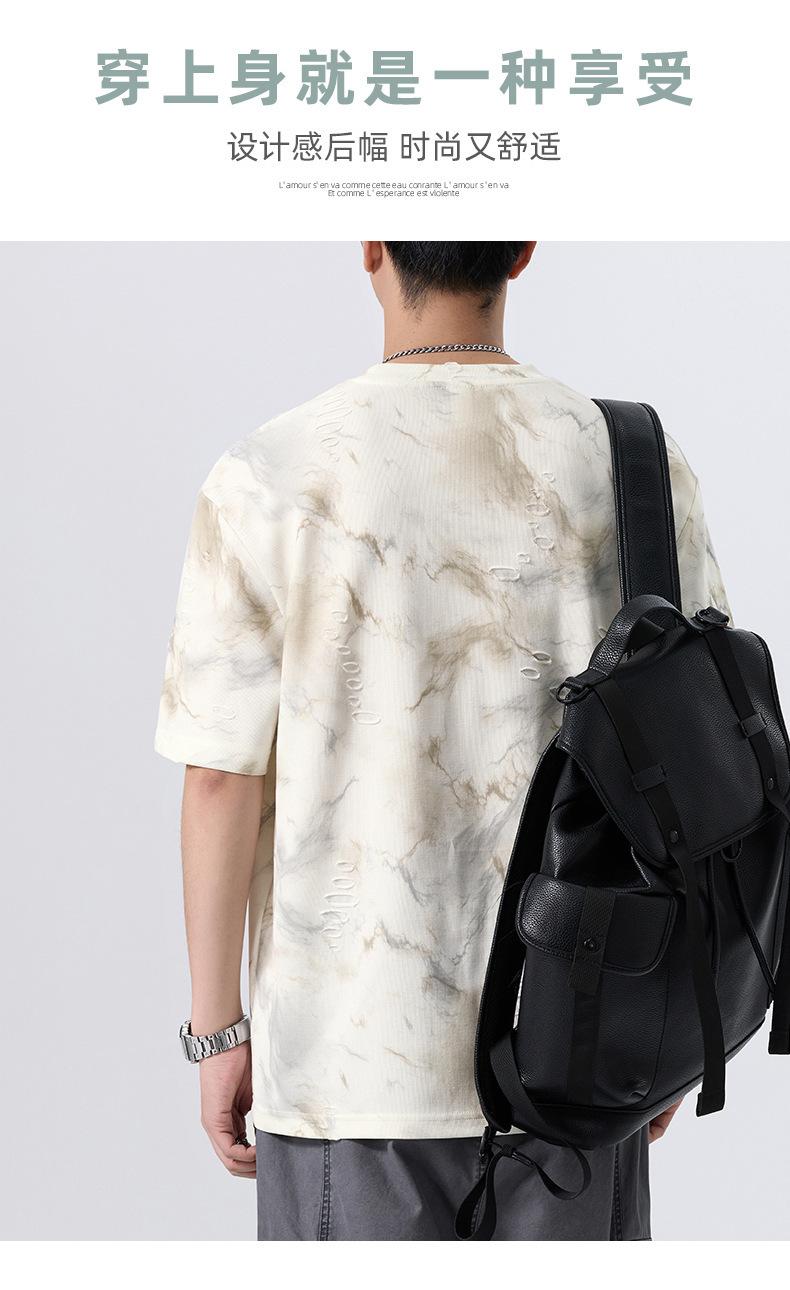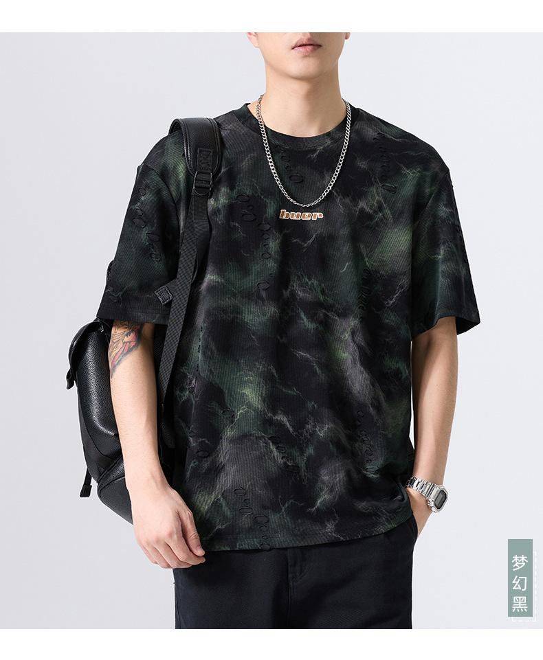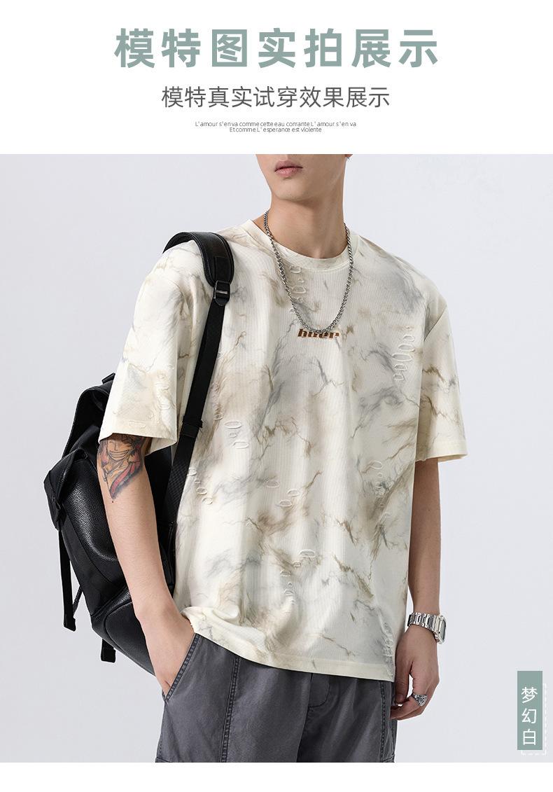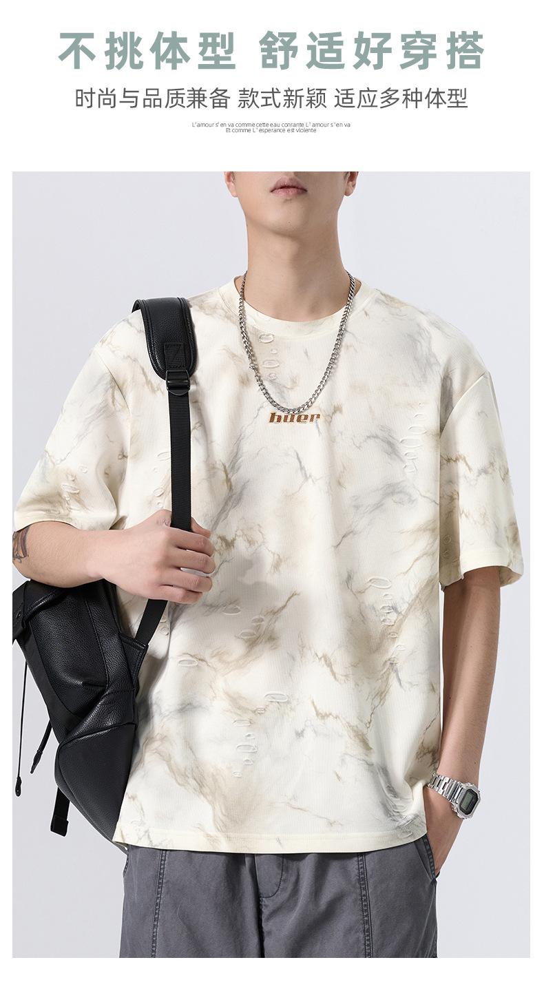 2025 Verano Nueva Marca de Moda Americana Camiseta de Manga Corta Estampada para Hombre Holgada Talla Grande Retro Camiseta de Media Manga Moderna