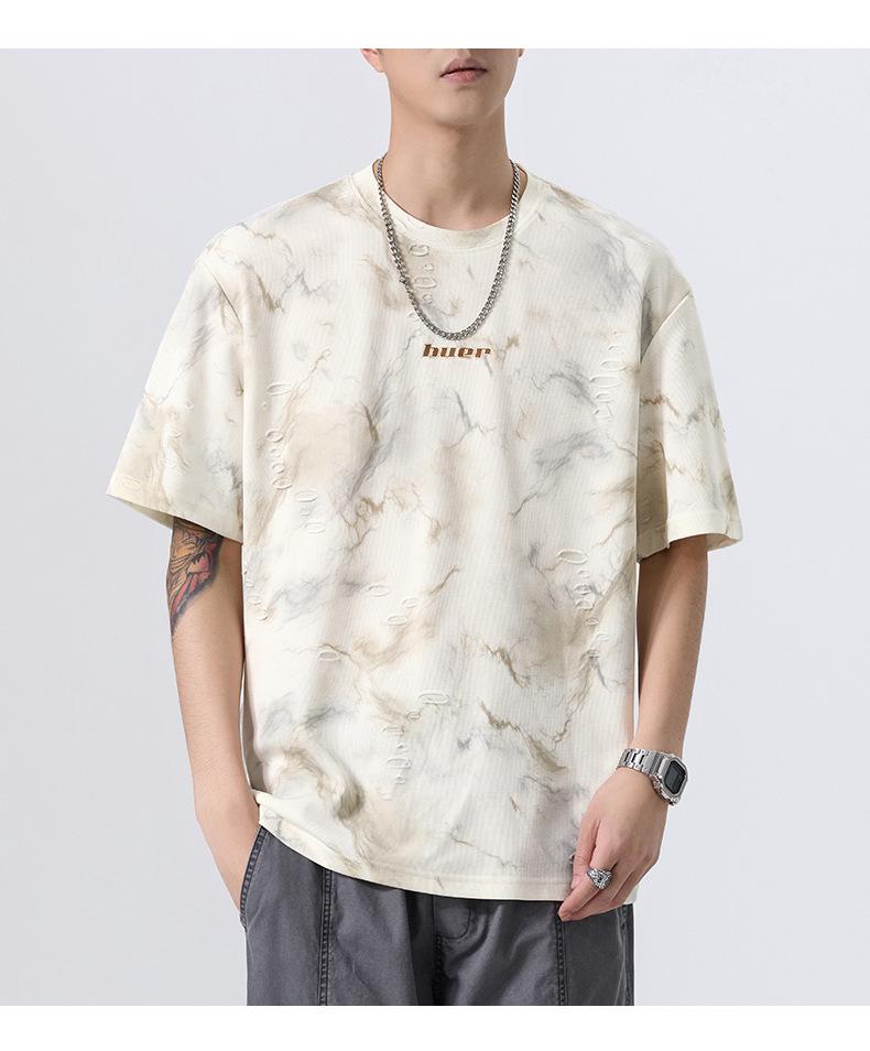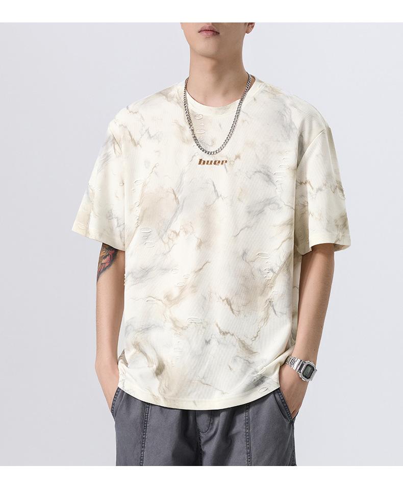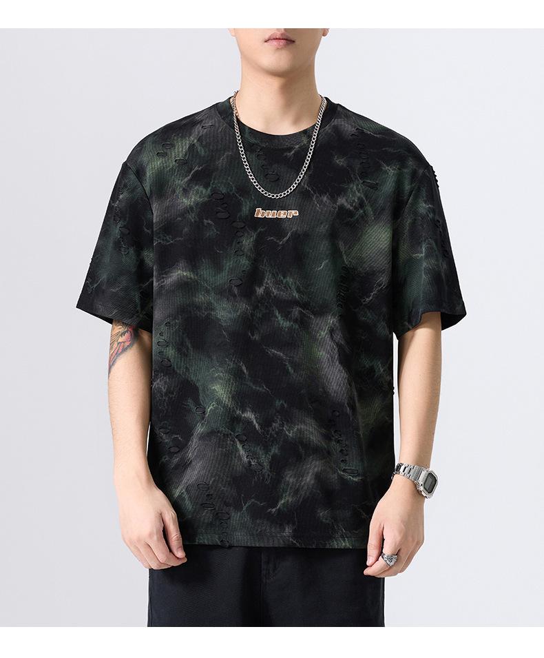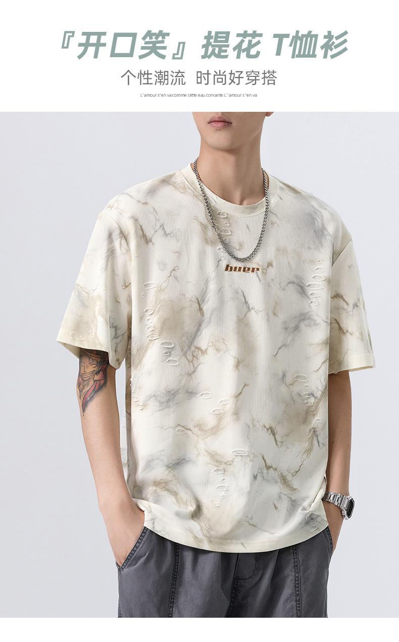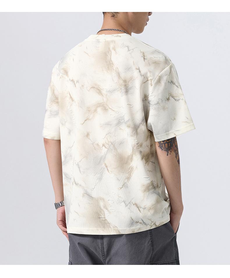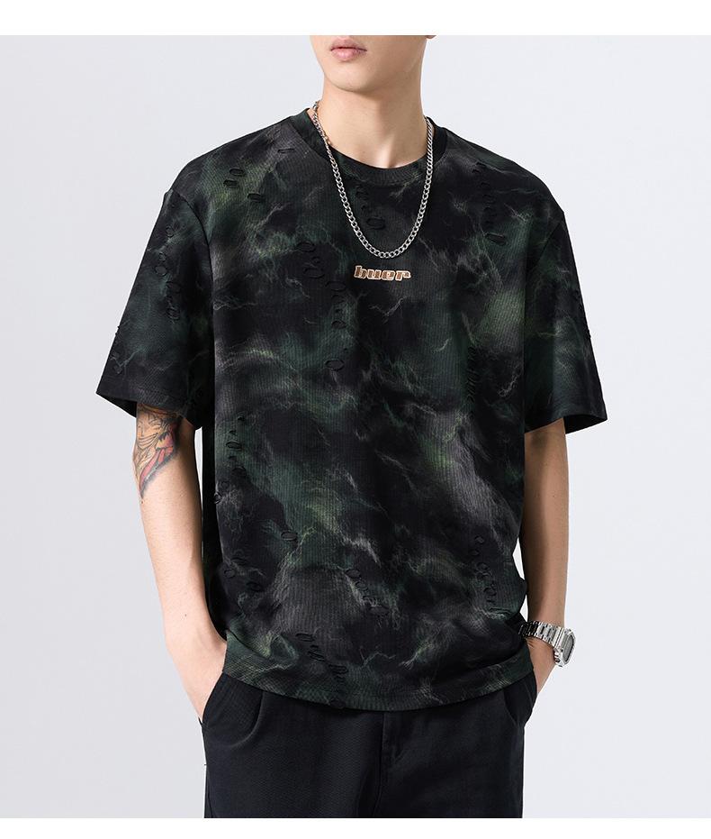 2025 Verano Nueva Marca de Moda Americana Camiseta de Manga Corta Estampada para Hombre Holgada Talla Grande Retro Camiseta de Media Manga Moderna