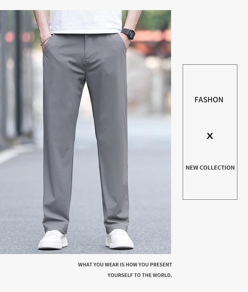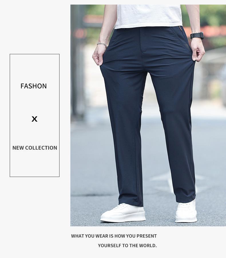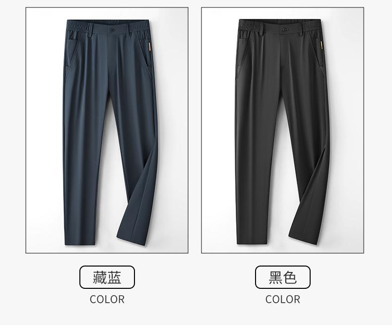 Pantalones Casuales de Seda de Hielo Fino de Verano 2025 para Hombre, Elásticos en Cuatro Direcciones, Ligeros para Negocios, Pantalones Largos Finos de Moda