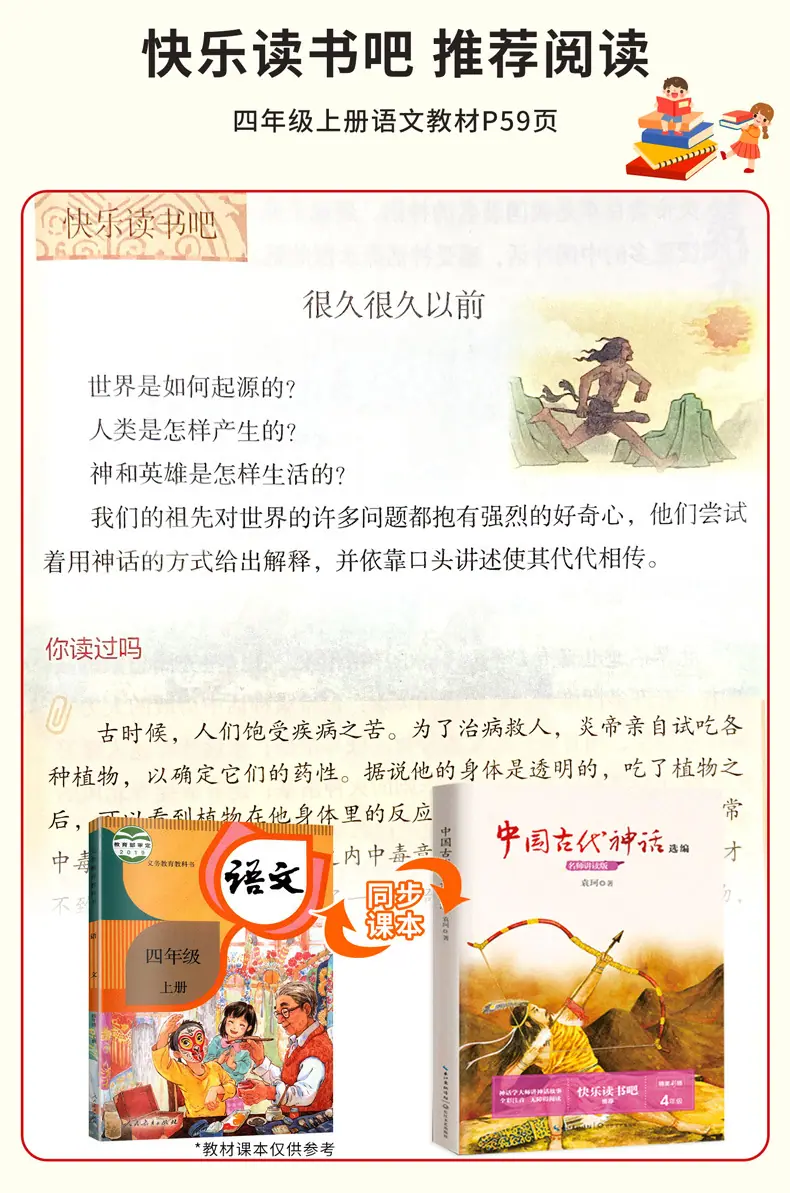 Colección de Mitología China de 4 volúmenes Yuan Ke Grado 4 Primer Semestre Libros Extracurriculares de Lectura Obligatoria Indio Nórdico Antiguo