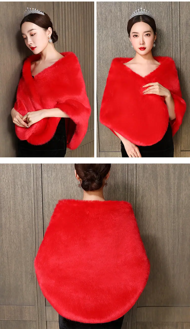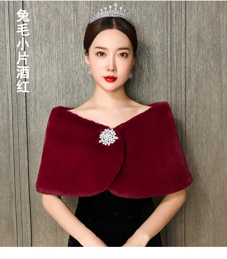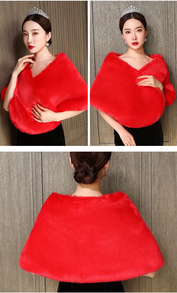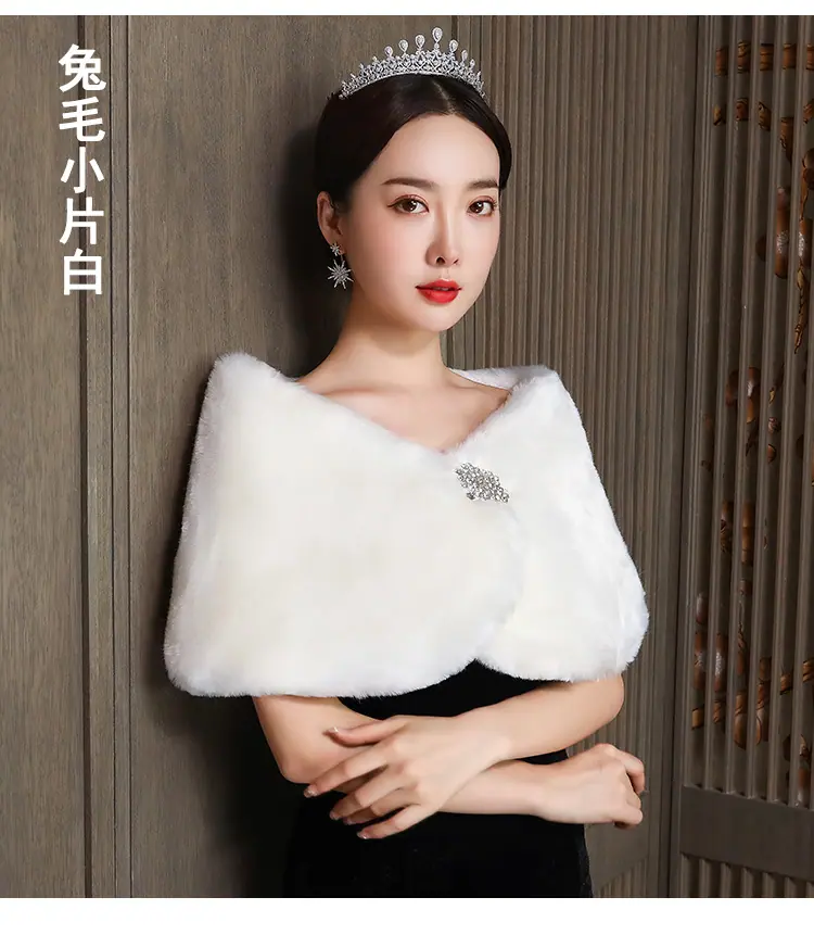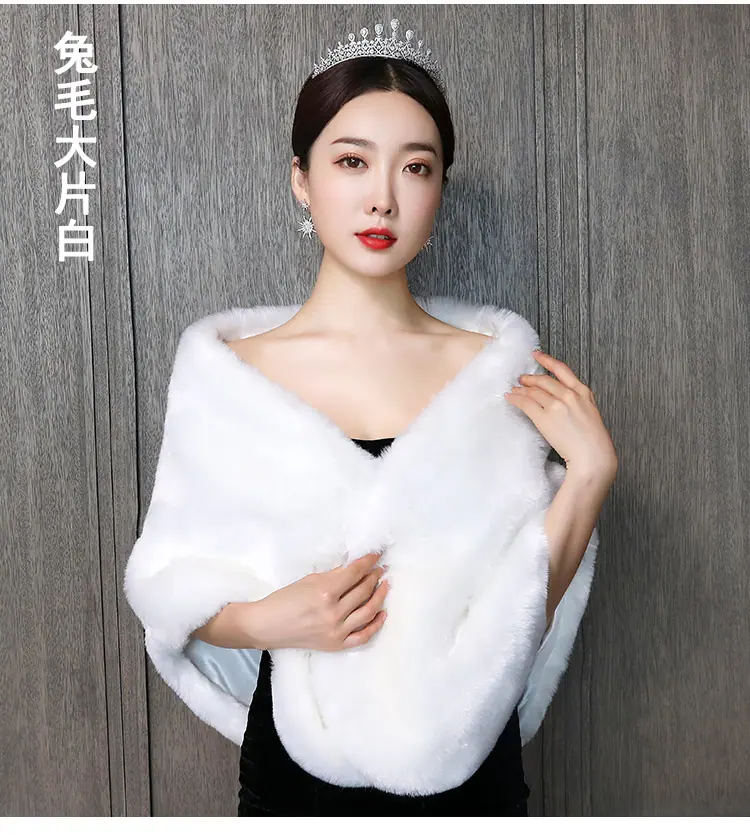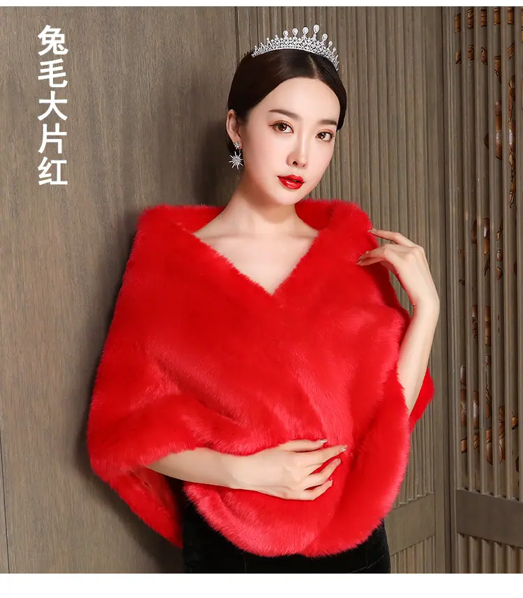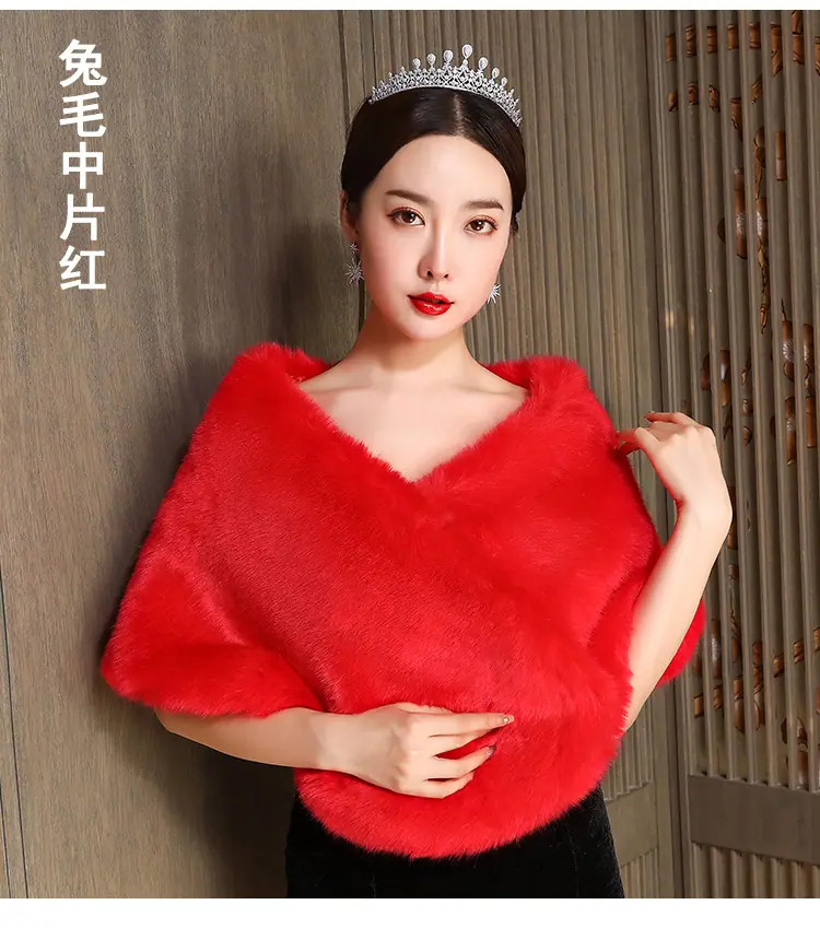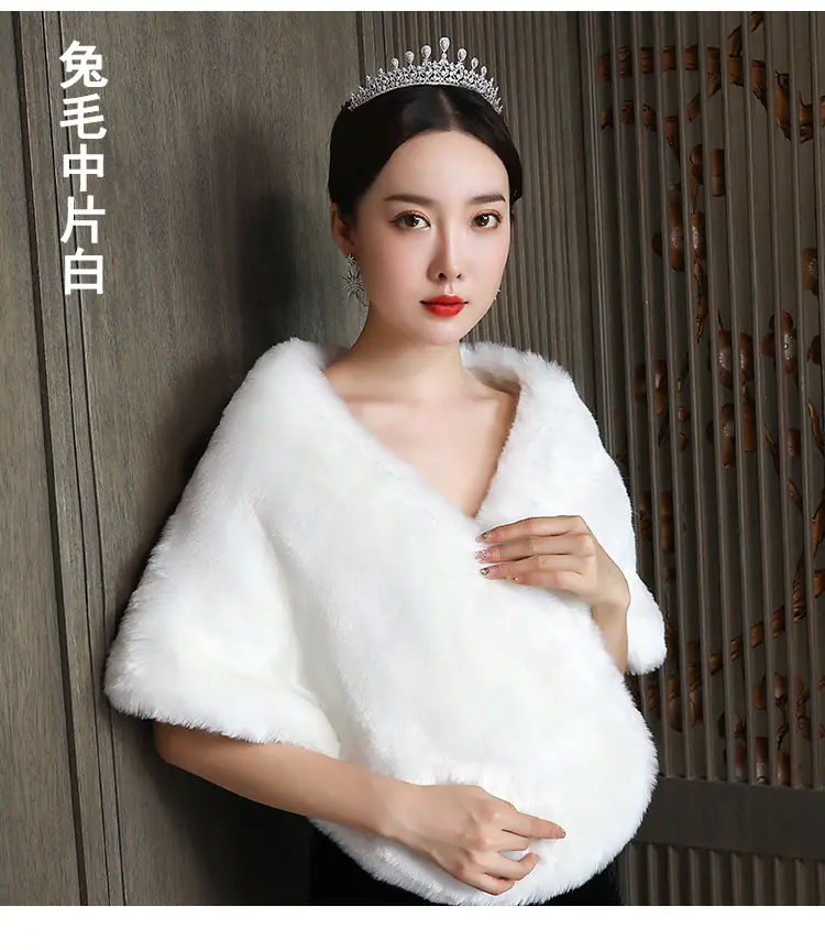 Chal de Boda Transfronterizo Otoño e Invierno Imitación Piel de Zorro Novia Vestido de Boda Capa Gruesa y Cálida Chaqueta para Mujer