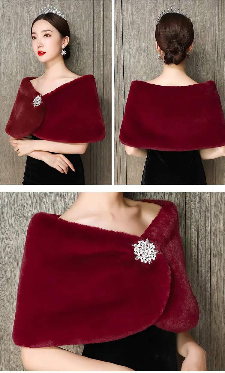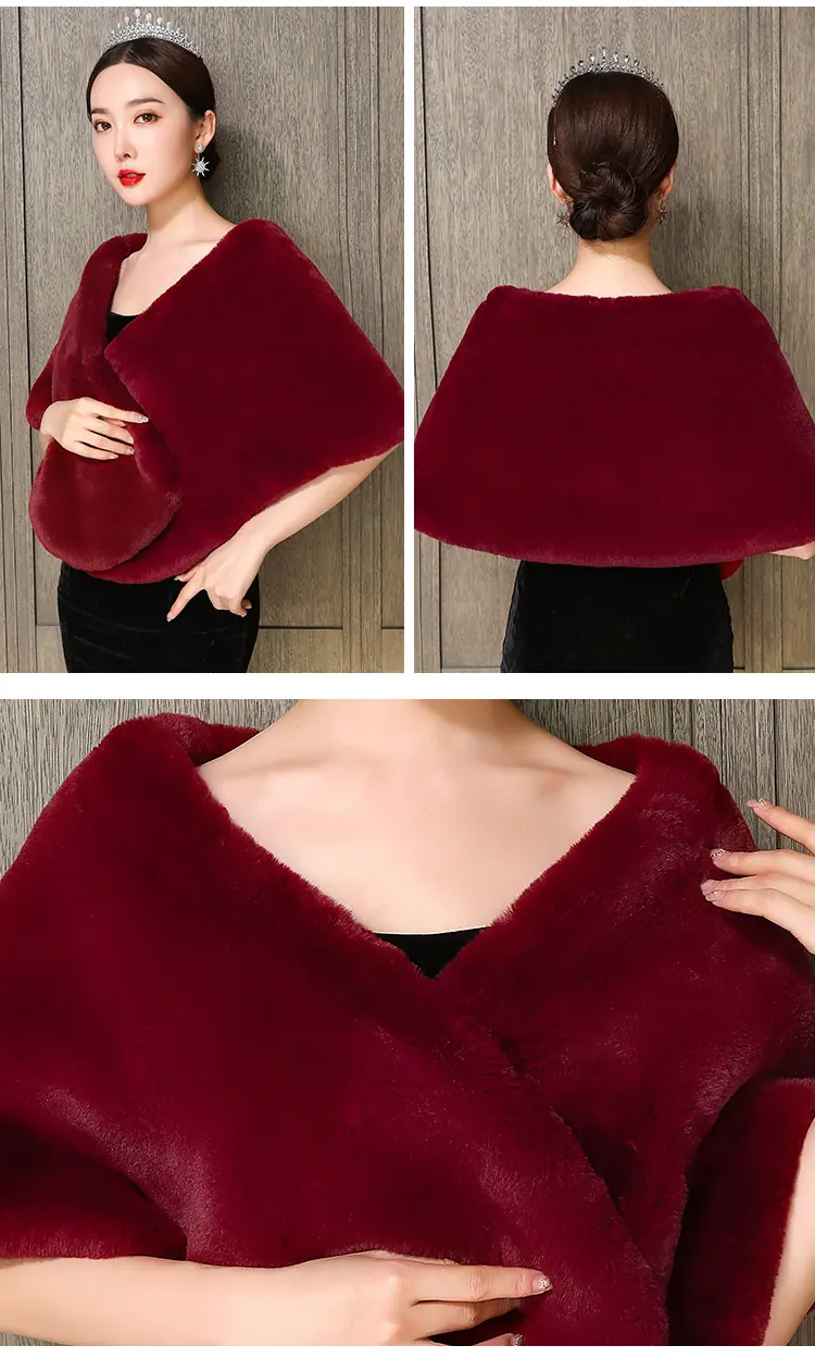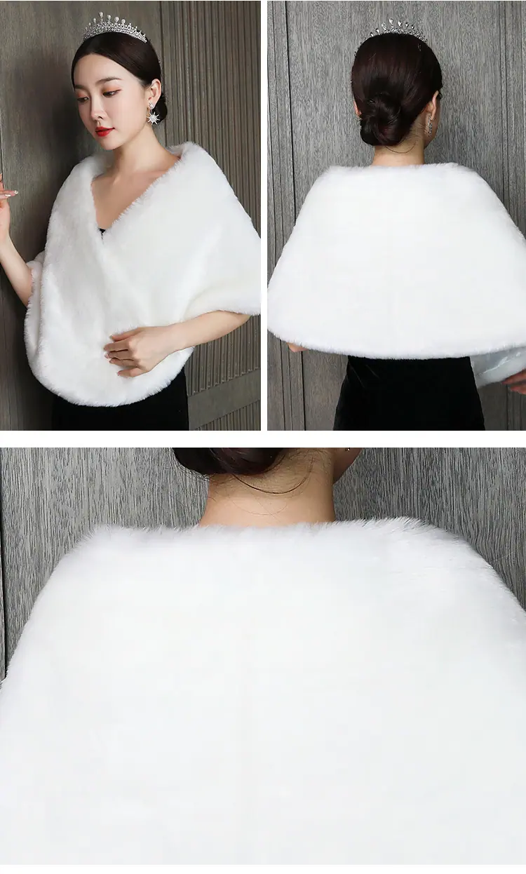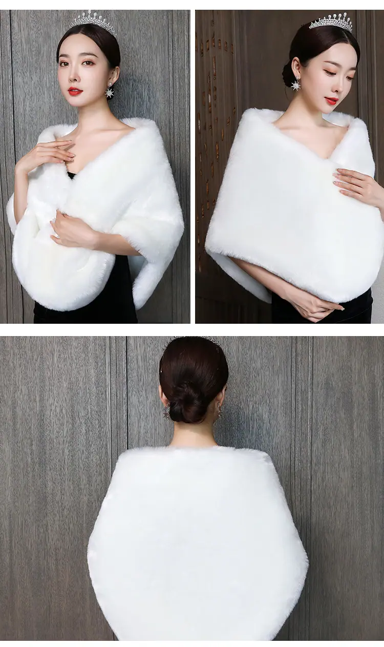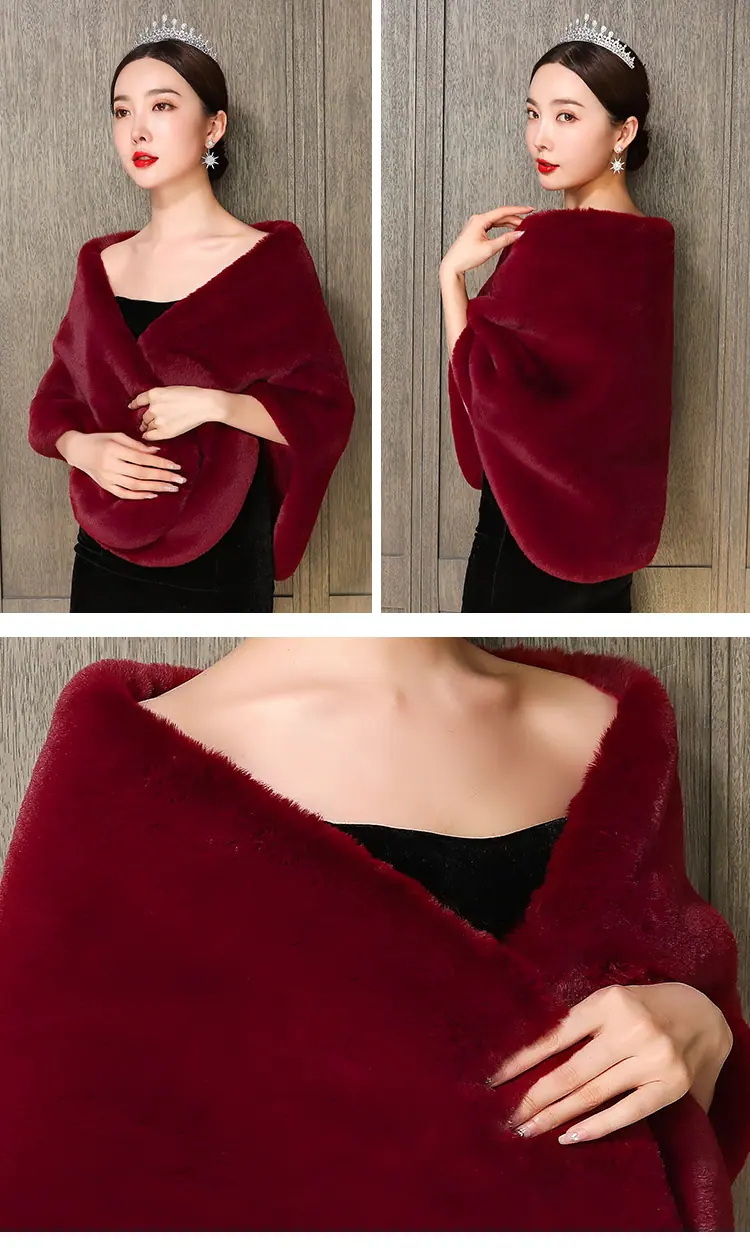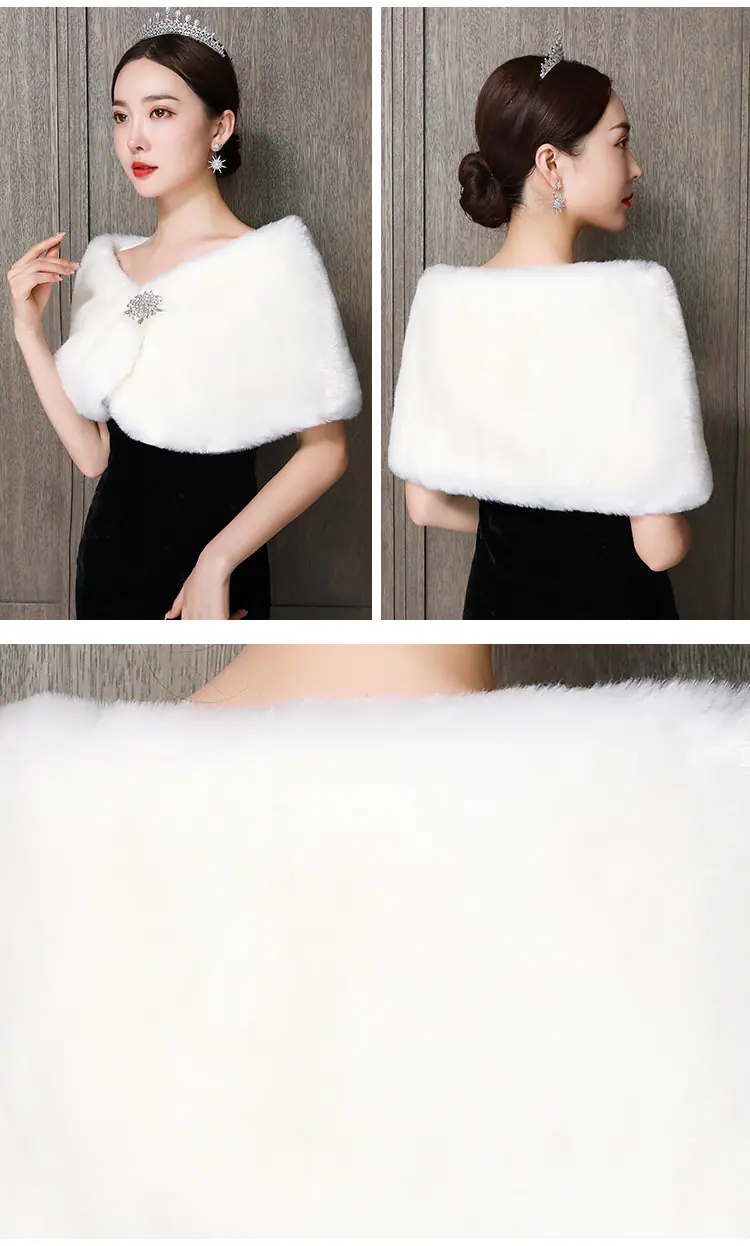 Chal de Boda Transfronterizo Otoño e Invierno Imitación Piel de Zorro Novia Vestido de Boda Capa Gruesa y Cálida Chaqueta para Mujer