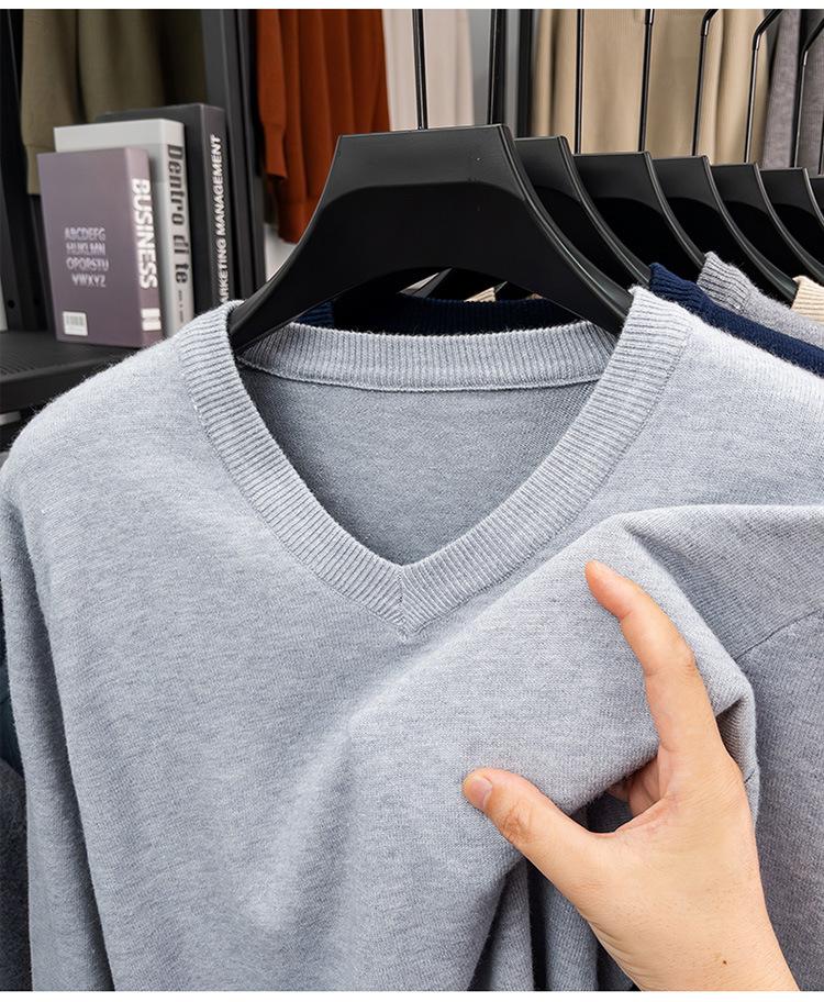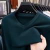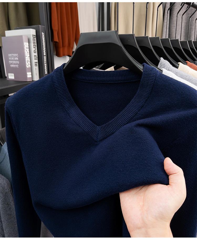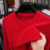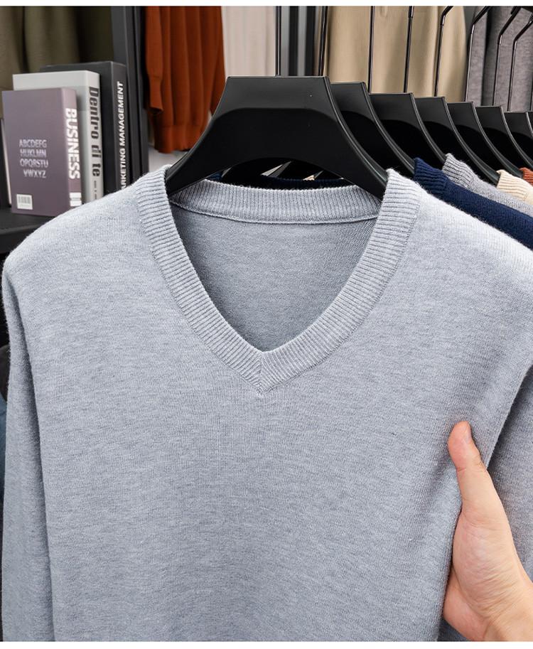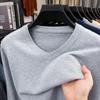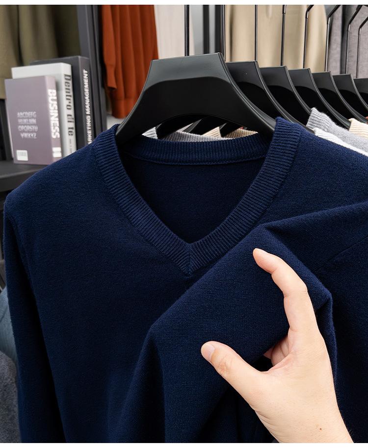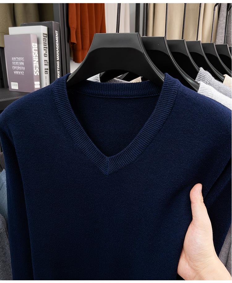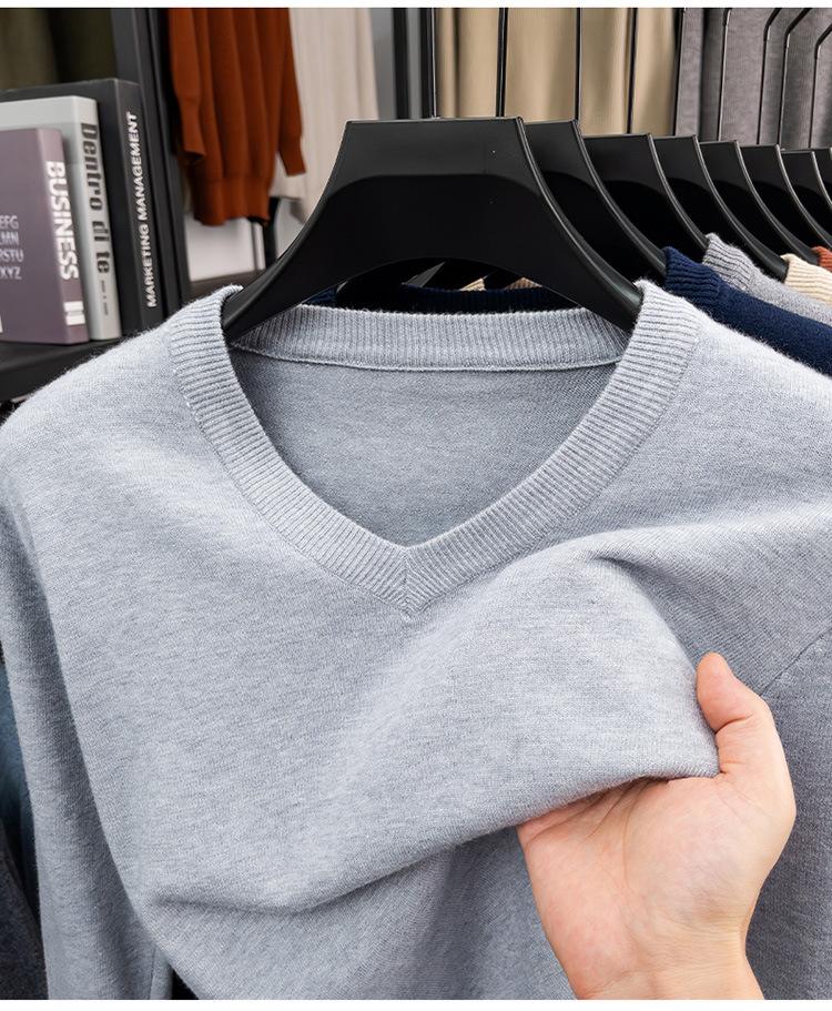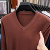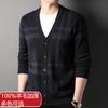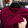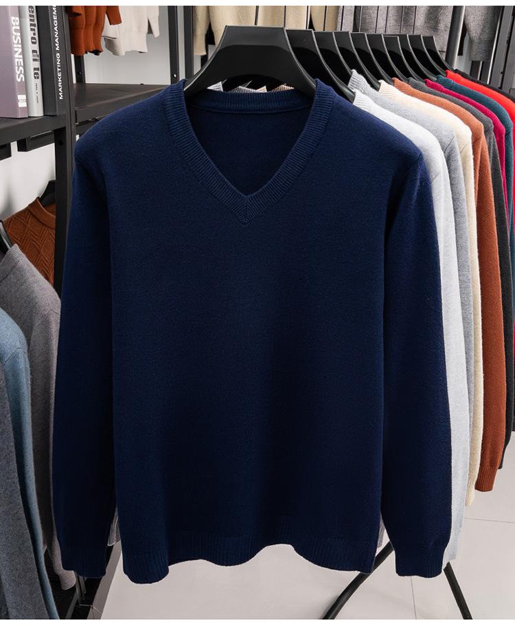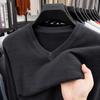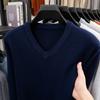 Suéter de Lana Genuino para Hombre Otoño e Invierno Argyle Cuello en V Cálida Capa Base Suéter de Lana Pura Suéter Tejido de Color Sólido Top