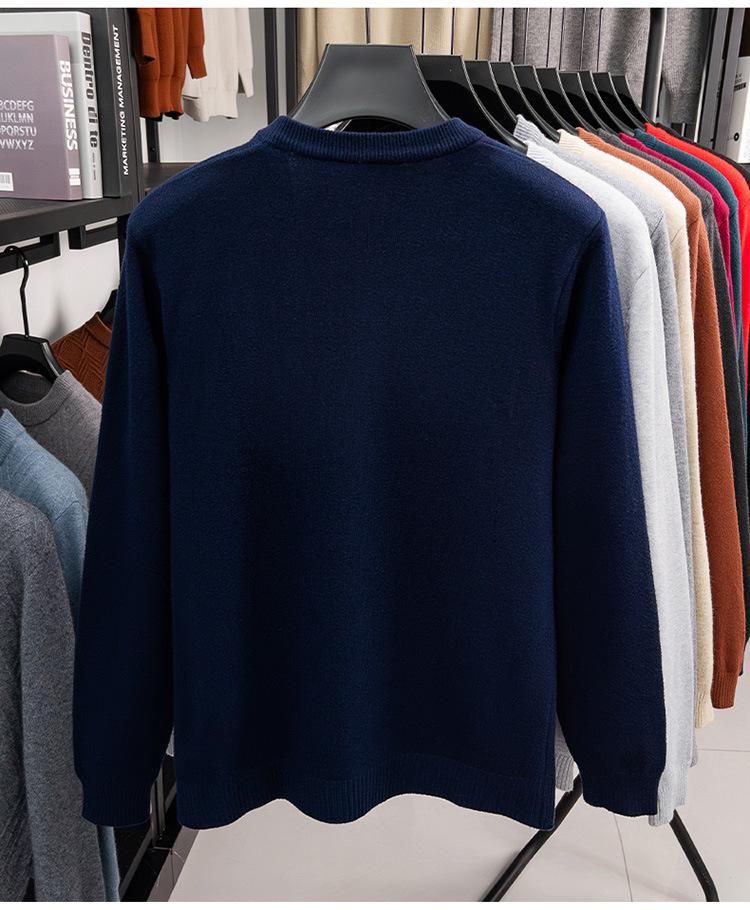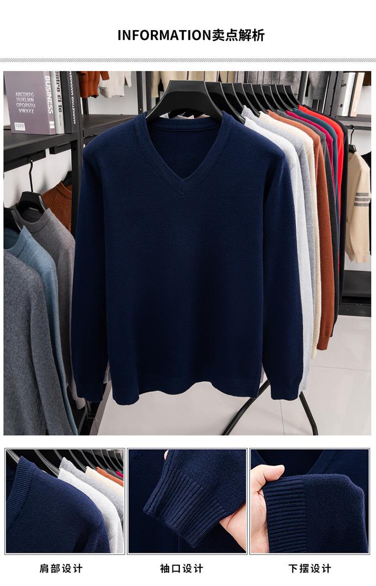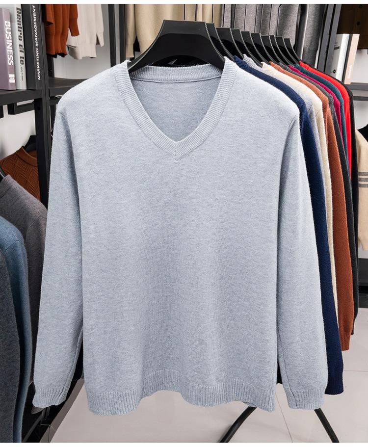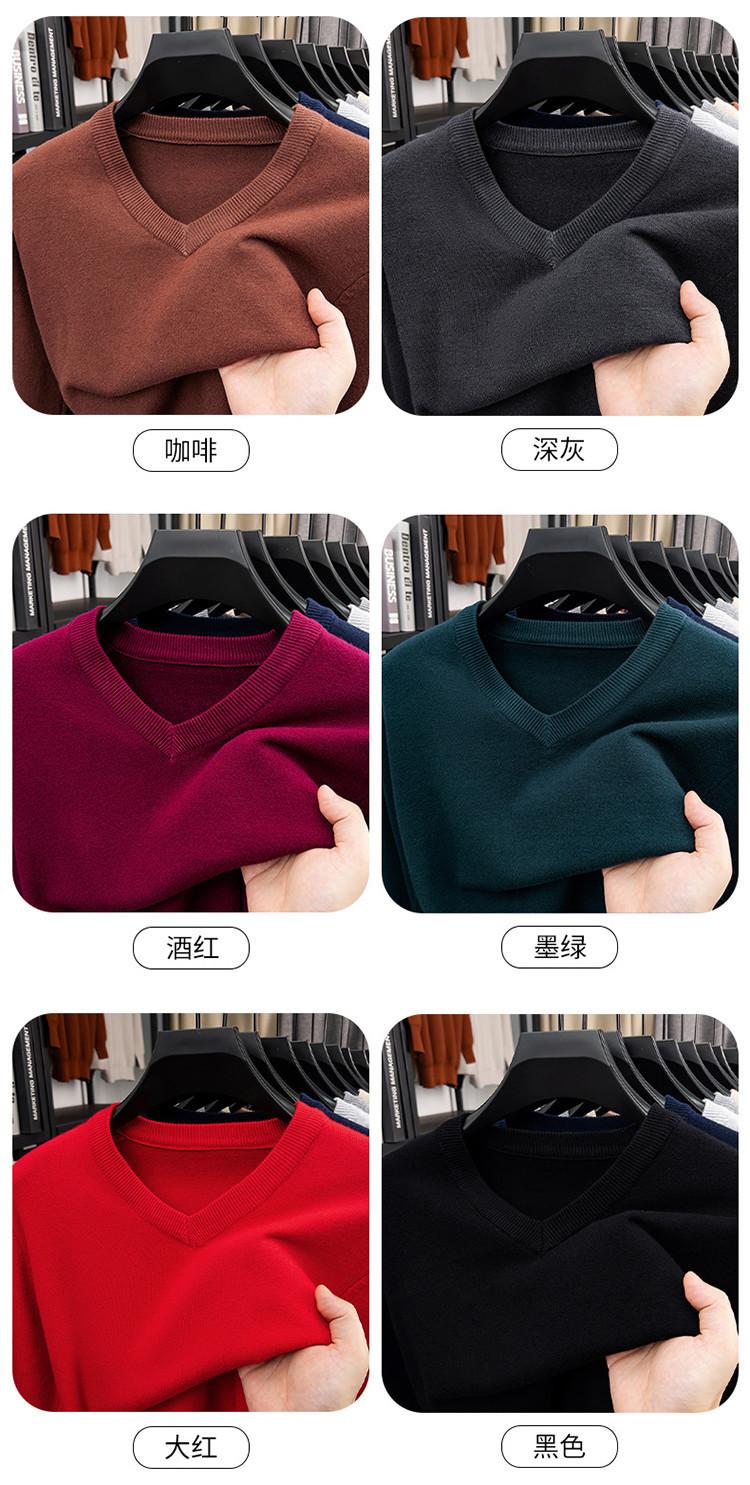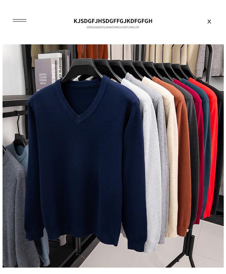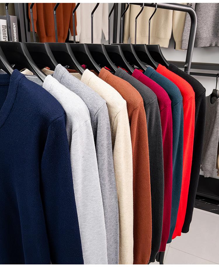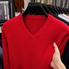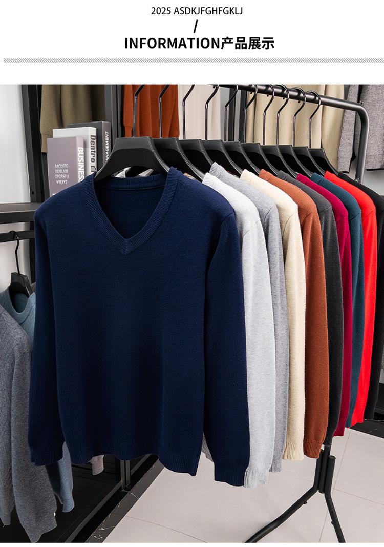 Suéter de Lana Genuino para Hombre Otoño e Invierno Argyle Cuello en V Cálida Capa Base Suéter de Lana Pura Suéter Tejido de Color Sólido Top