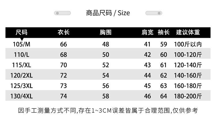 M【90-110 catties】, L [110-125 catties], XL【125-140 catties】, 2XL【140-160 catties】, 3XL [160-180 catties], 4XL [180-200 catties]