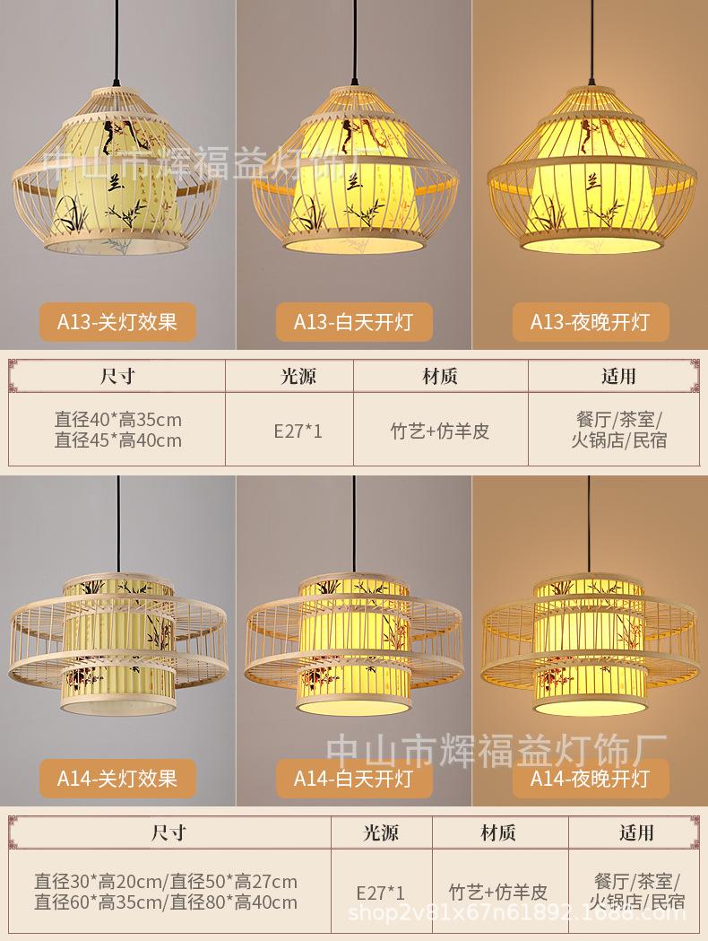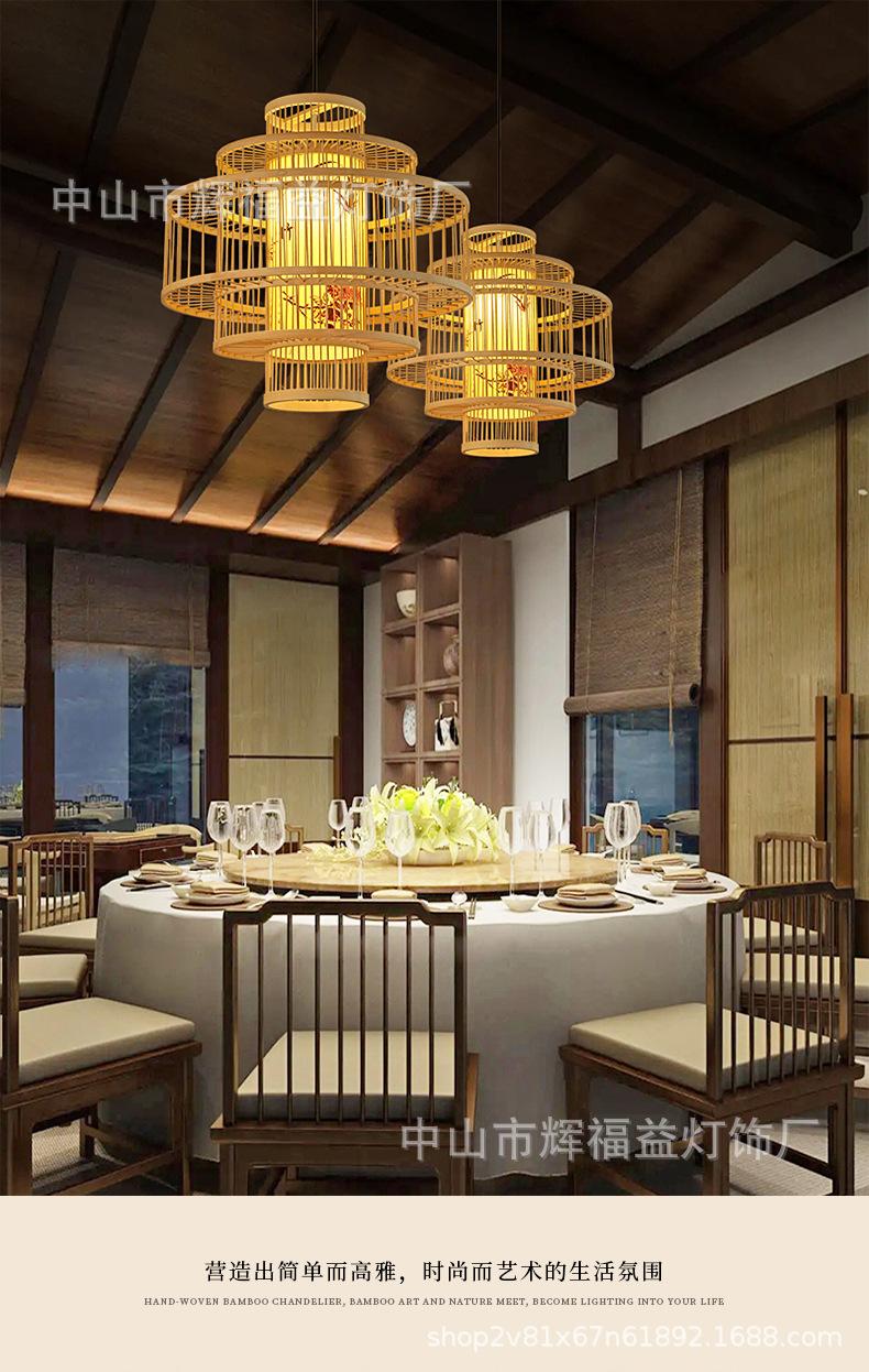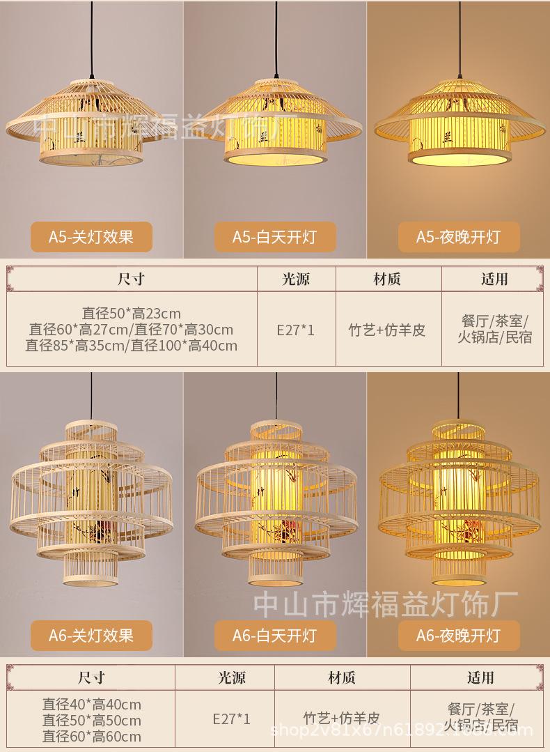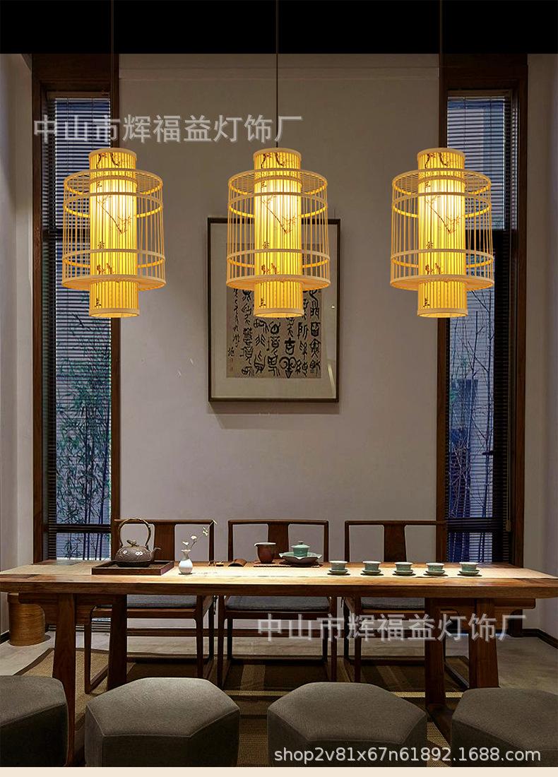 Compra Lámpara de araña de bambú, salón de té zen, restaurante chino, lámparas de alojamiento y desayuno, farol de ratán japonés, pantalla tejida vintage al por mayor en Joom.pro