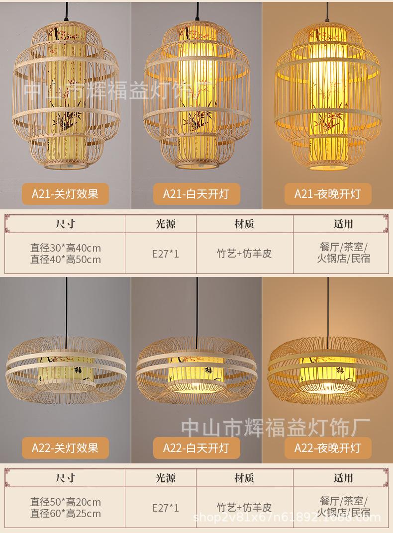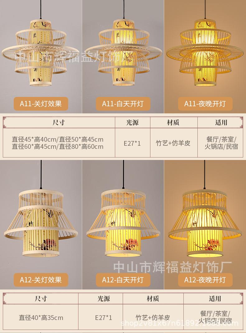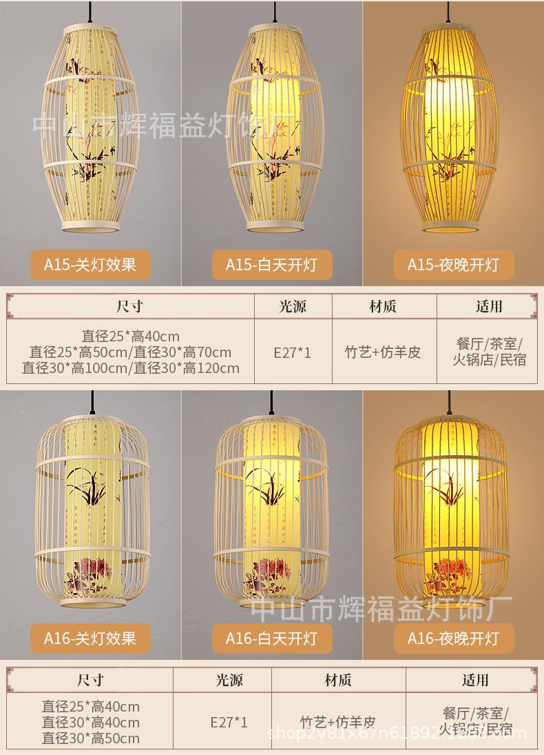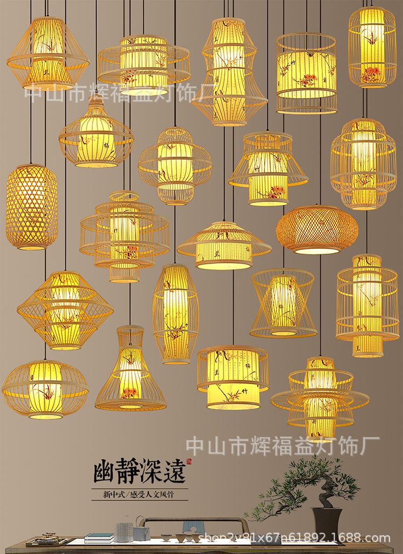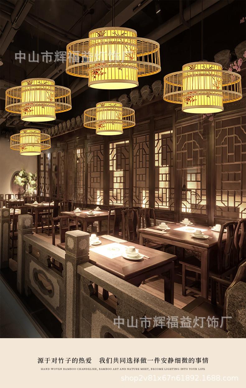 Compra Lámpara de araña de bambú, salón de té zen, restaurante chino, lámparas de alojamiento y desayuno, farol de ratán japonés, pantalla tejida vintage al por mayor en Joom.pro
