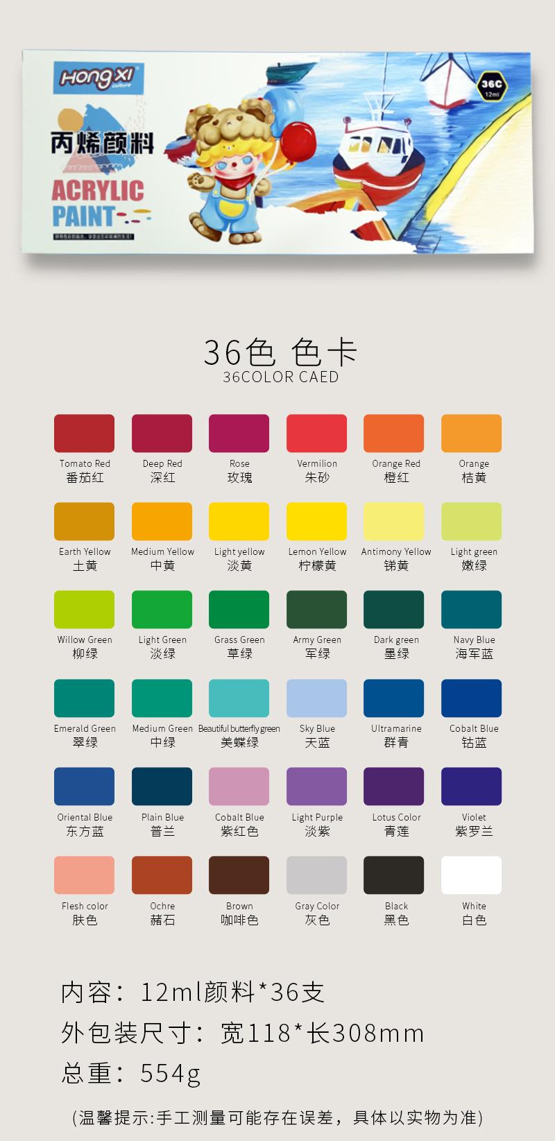 Compra Juego de 12 Pinturas Acrílicas No Tóxicas Lavables para Niños DIY Pintura a Mano para Pared Pintura Textil en Caja Juego de 36 Colores al por mayor en Joom.pro