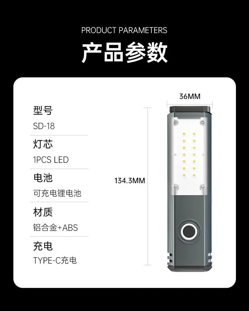 SD-5360A Black - Multifunctional Work Light [2000mAh], SD-5360A red-multifunctional work light [2000mAh]
