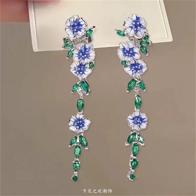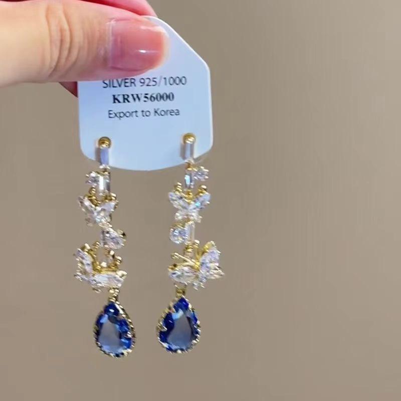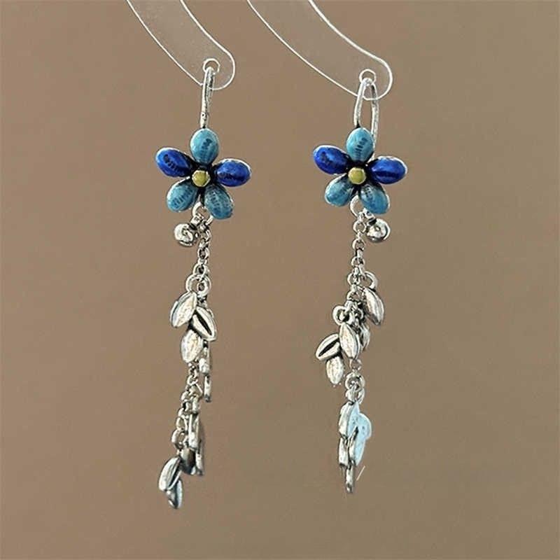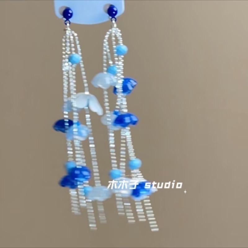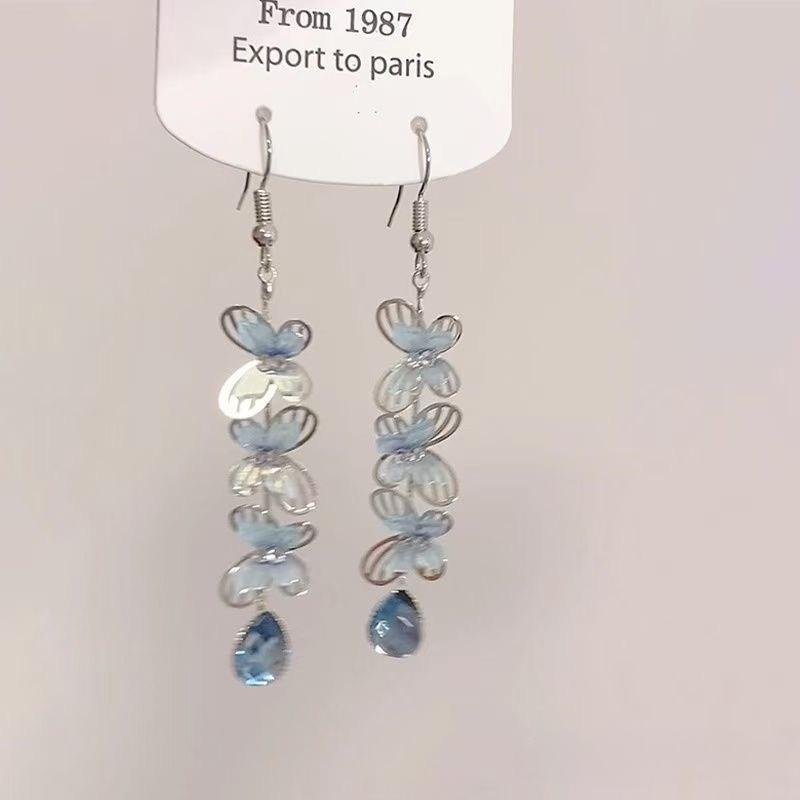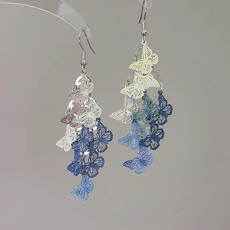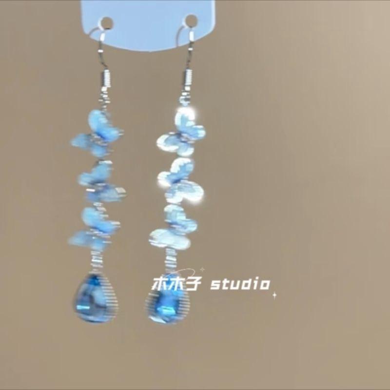 Aretes de Borla de Mariposa Recortada Azul y Blanco Estilo Coreano Diseño Exquisito Estudiante de Arte Hermosos Aretes de Gancho para la Oreja Aretes para Mujer
