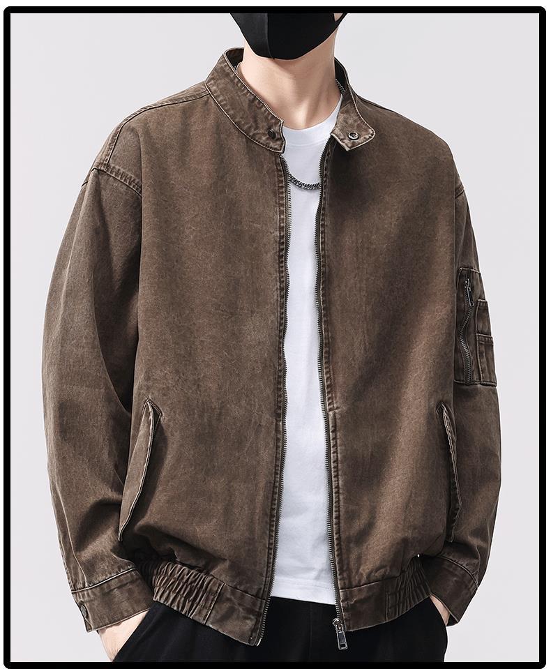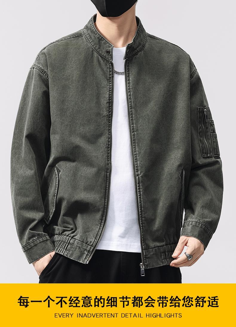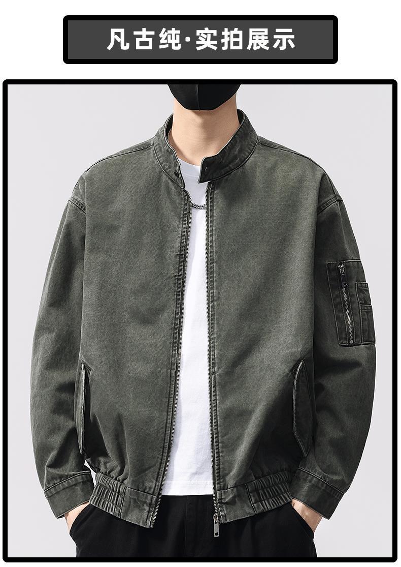 Compra Chaqueta Americana Retro Workwear para Hombre Otoño 2025 Nueva Casual Caza Cuello Alto Chaqueta de Piloto Marca Trendy al por mayor en Joom.pro