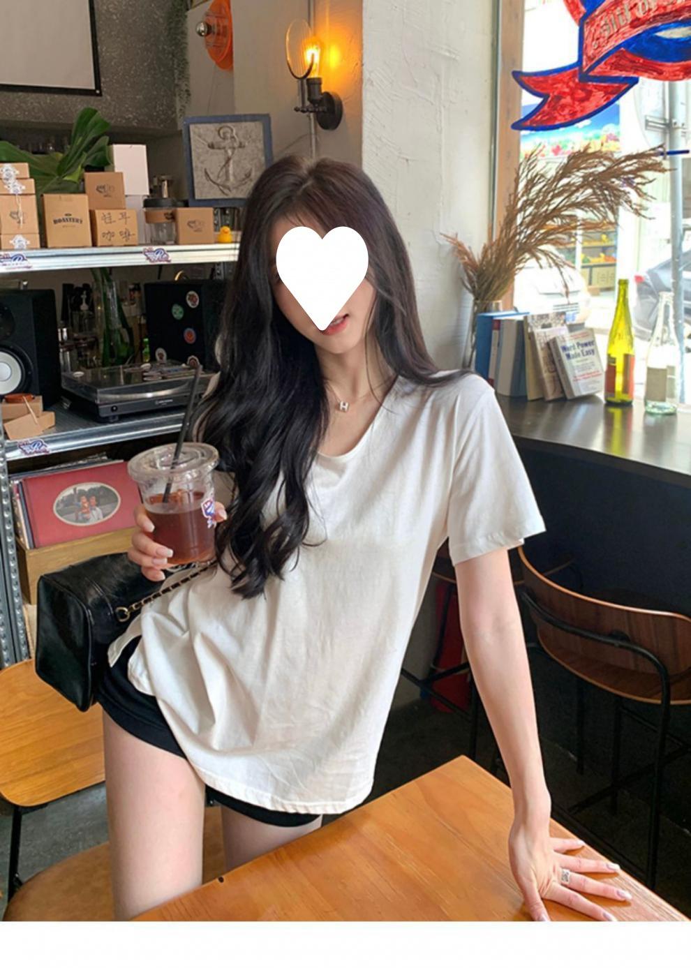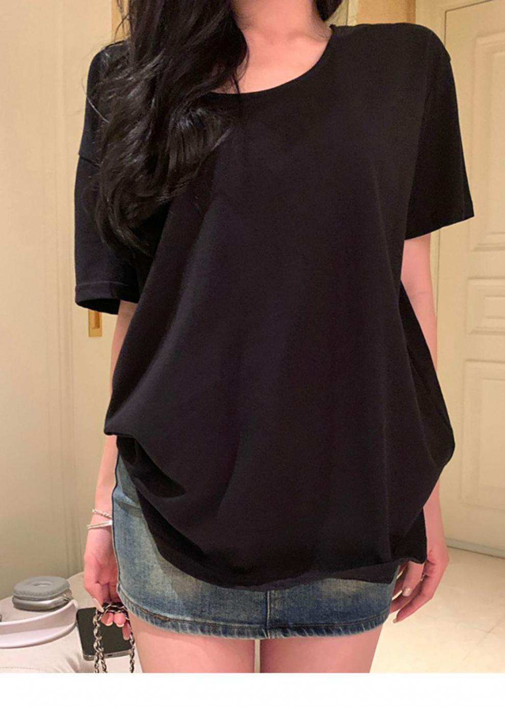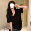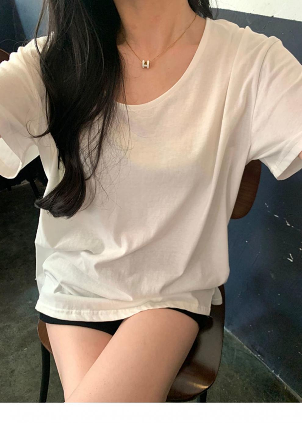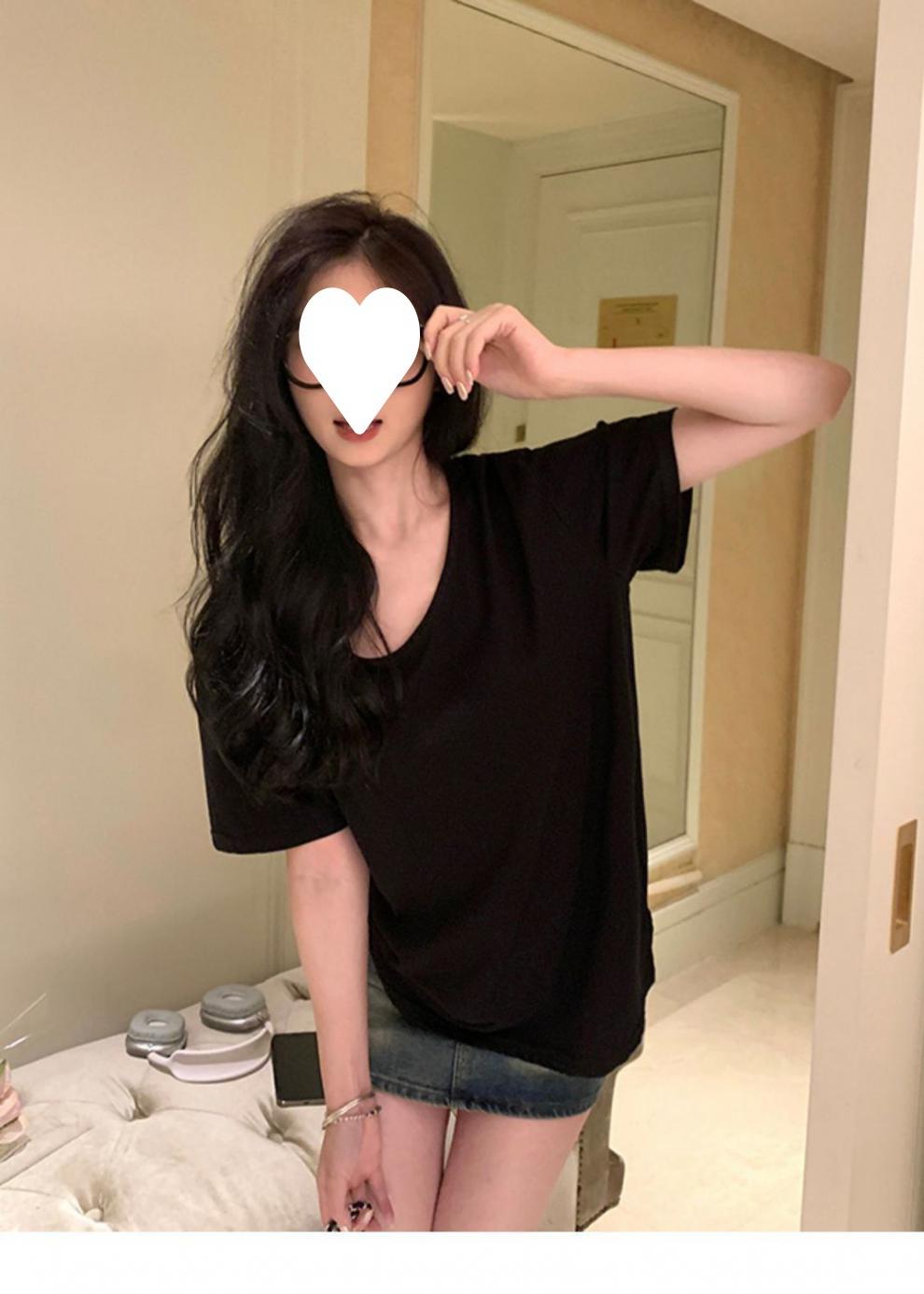 Compra Playera básica suelta de manga corta con cuello en V y hombro ancho de color sólido simple para mujer, verano 2024, nueva al por mayor en Joom.pro