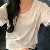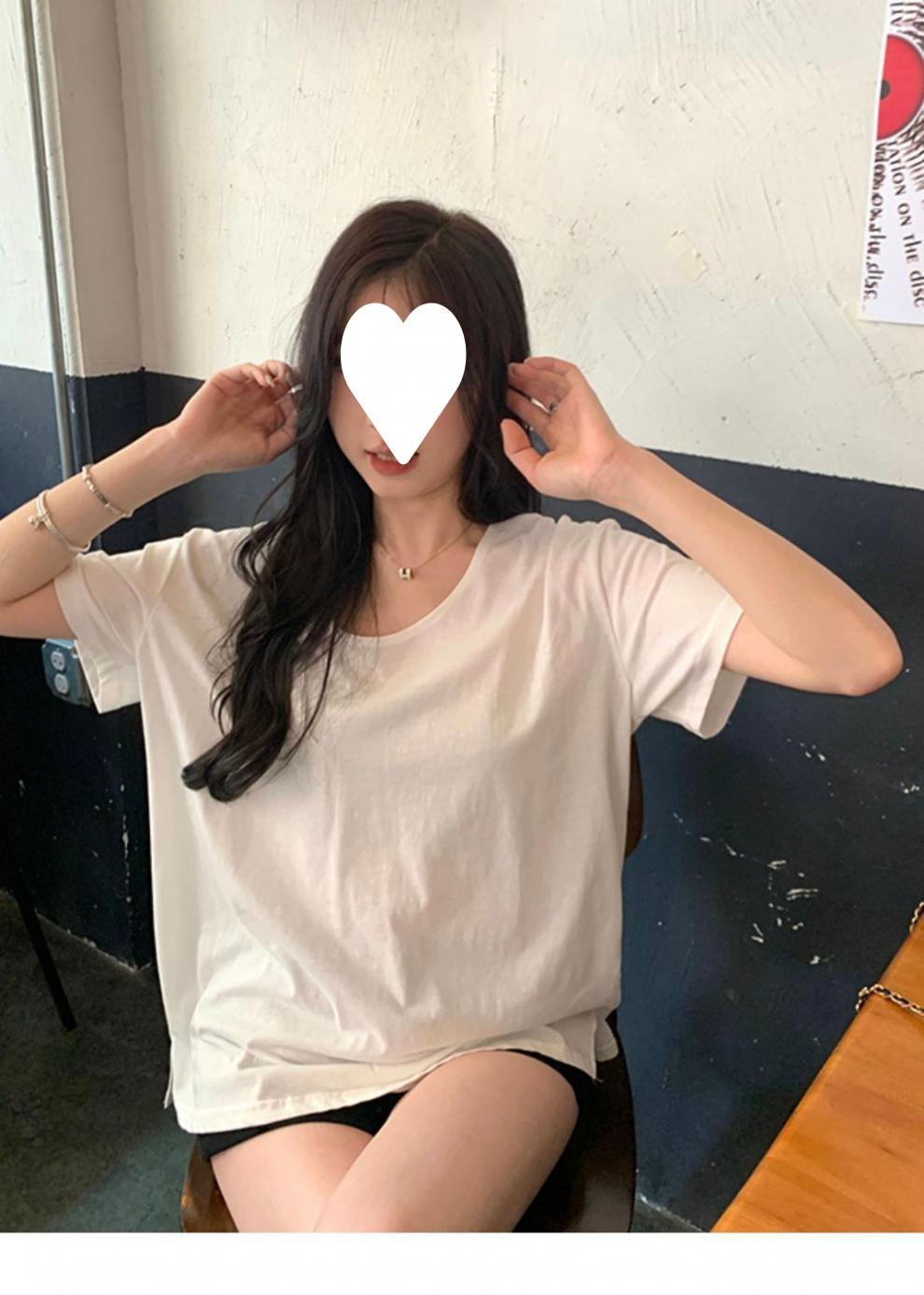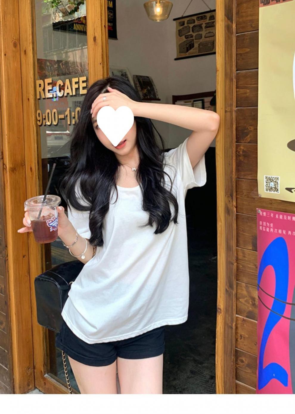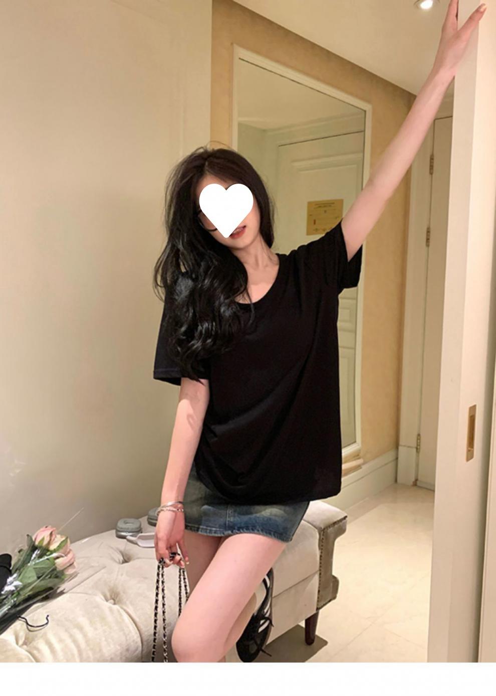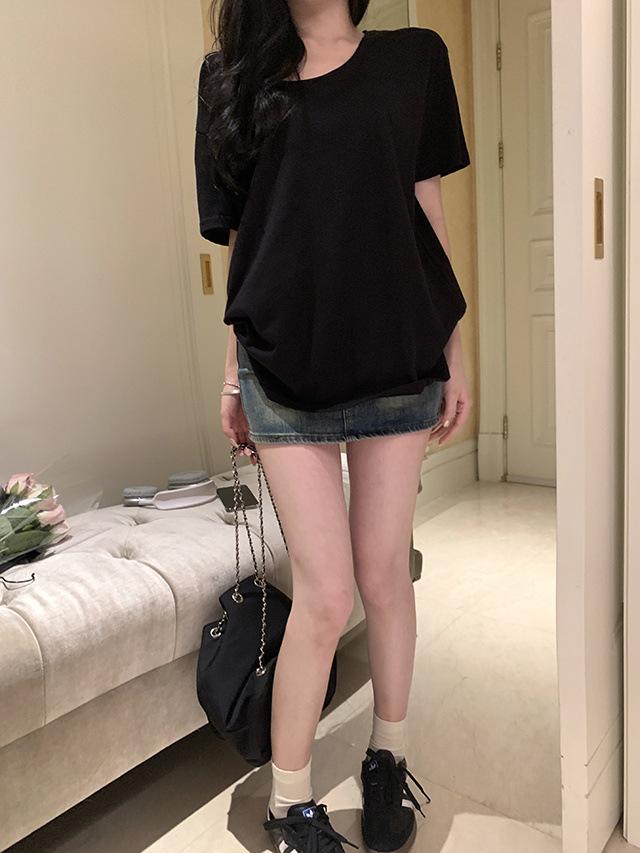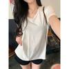Compra Playera básica suelta de manga corta con cuello en V y hombro ancho de color sólido simple para mujer, verano 2024, nueva al por mayor en Joom.pro