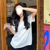 Playera básica suelta de manga corta con cuello en V y hombro ancho de color sólido simple para mujer, verano 2024, nueva