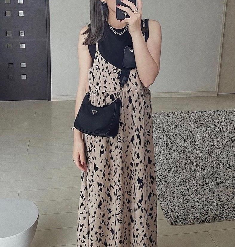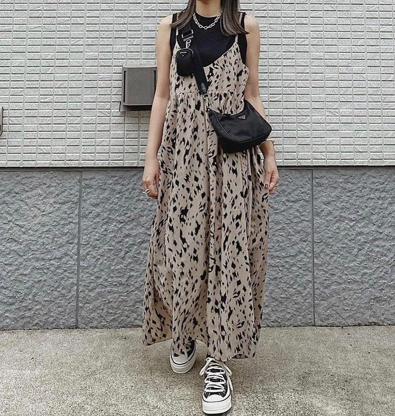 Compra Fuente transfronteriza 2023 Verano nuevo moda japonesa estampado de leopardo vestido holgado sin mangas con tirantes lunares al por mayor en Joom.pro
