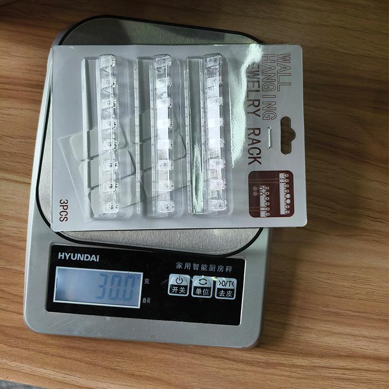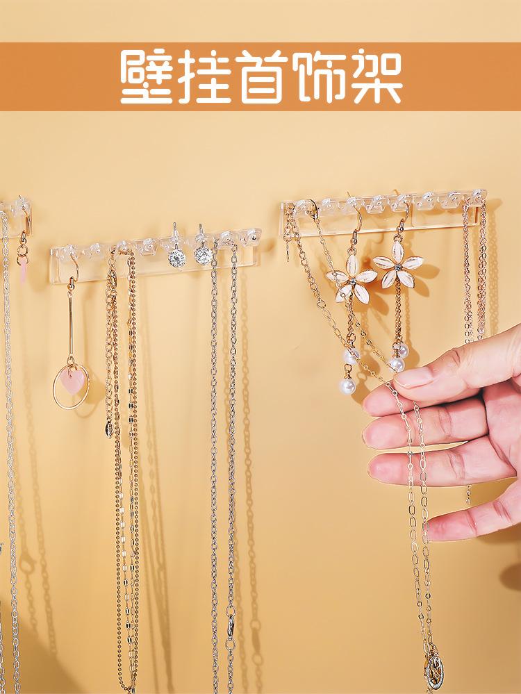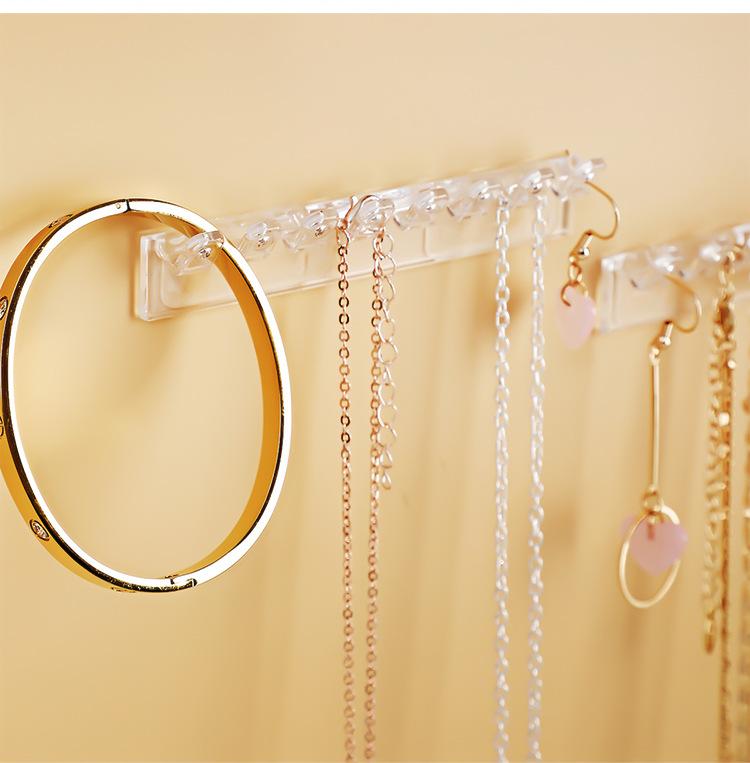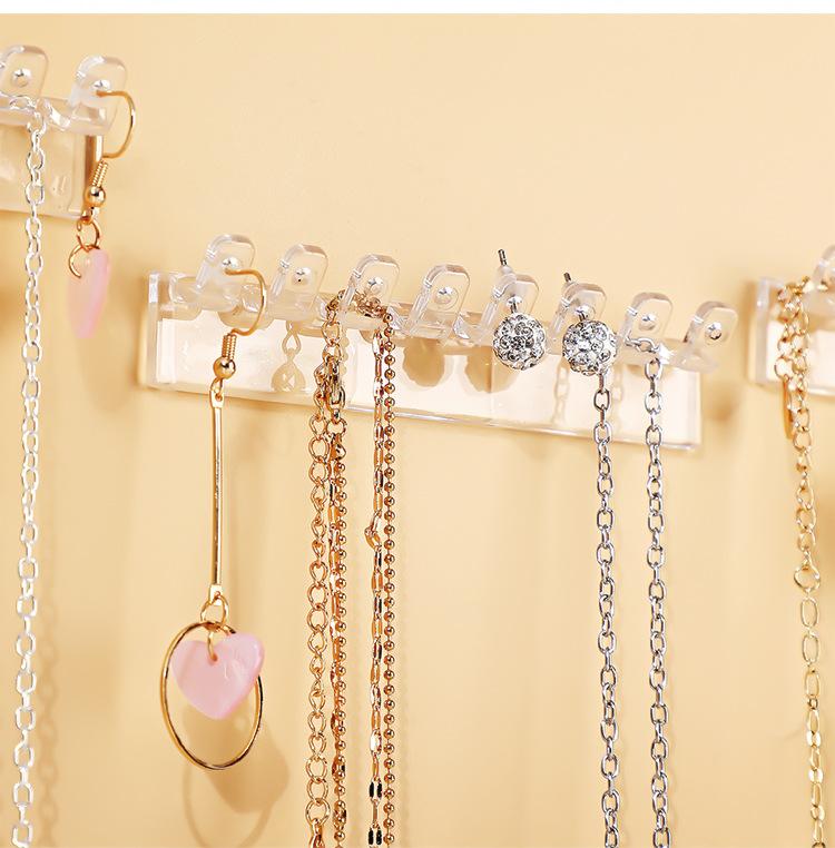 Nombre del producto: Mini Joyero Japonés de Pared con 8 Ganchos para Colgar Pendientes de Botón y Collares--Transparente 3 Piezas/Organizador de Bandeja para Joyería--Transparente