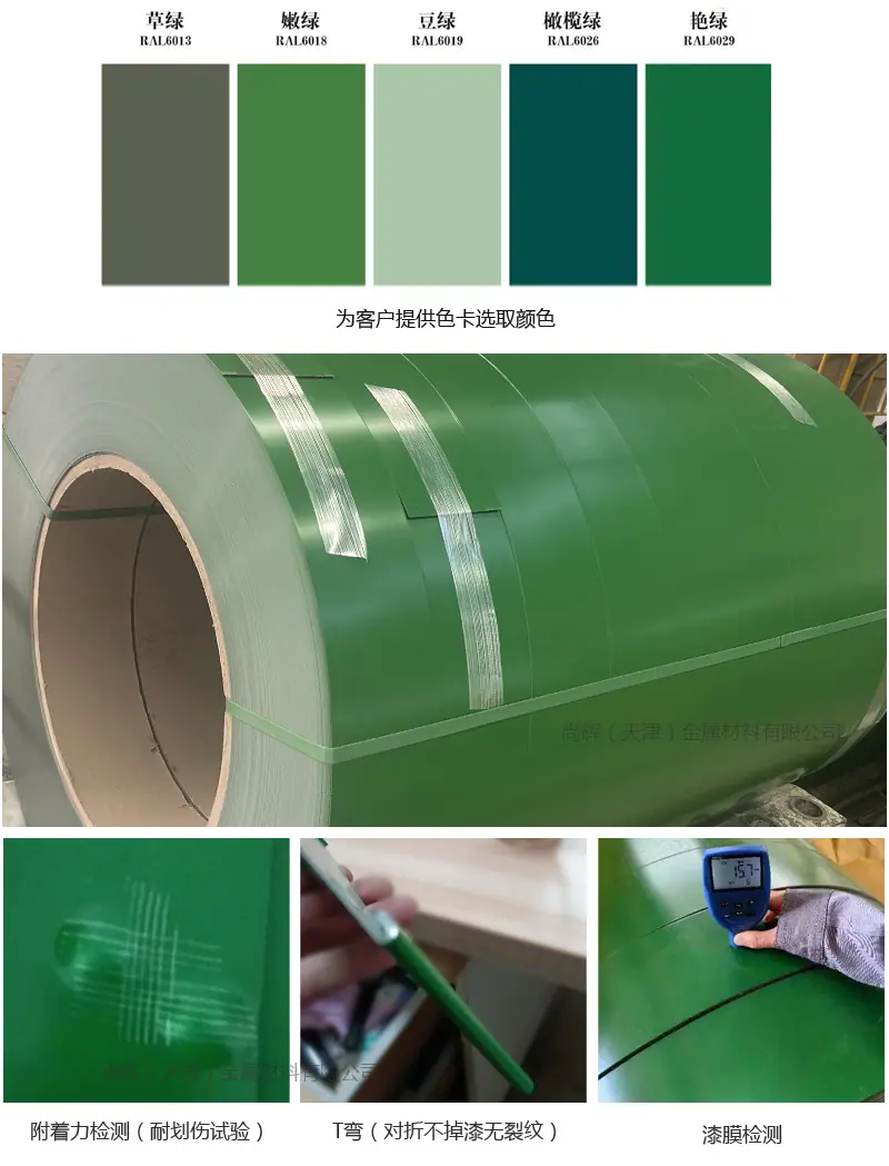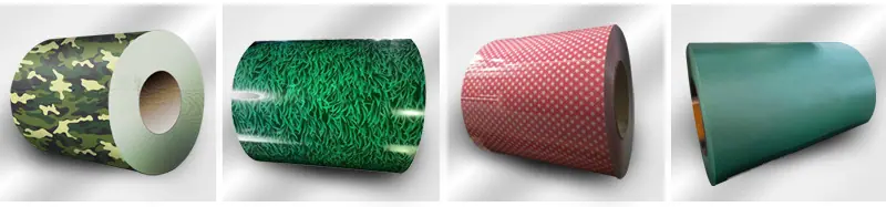 Las bobinas recubiertas de color para la construcción generalmente se basan en bobinas de acero galvanizado por inmersión en caliente y bobinas de acero galvanizado de aluminio, y se procesan principalmente en láminas corrugadas o poliuretanos consistentes con paneles sándwich. Se utilizan para construir techos, paredes y puertas de edificios industriales y comerciales, como fábricas de estructura de acero, aeropuertos, almacenes, congeladores, etc.