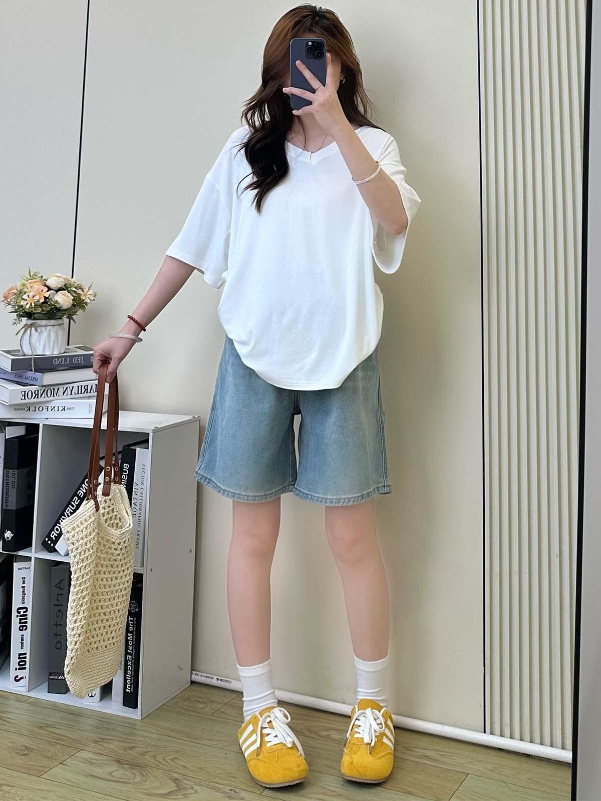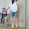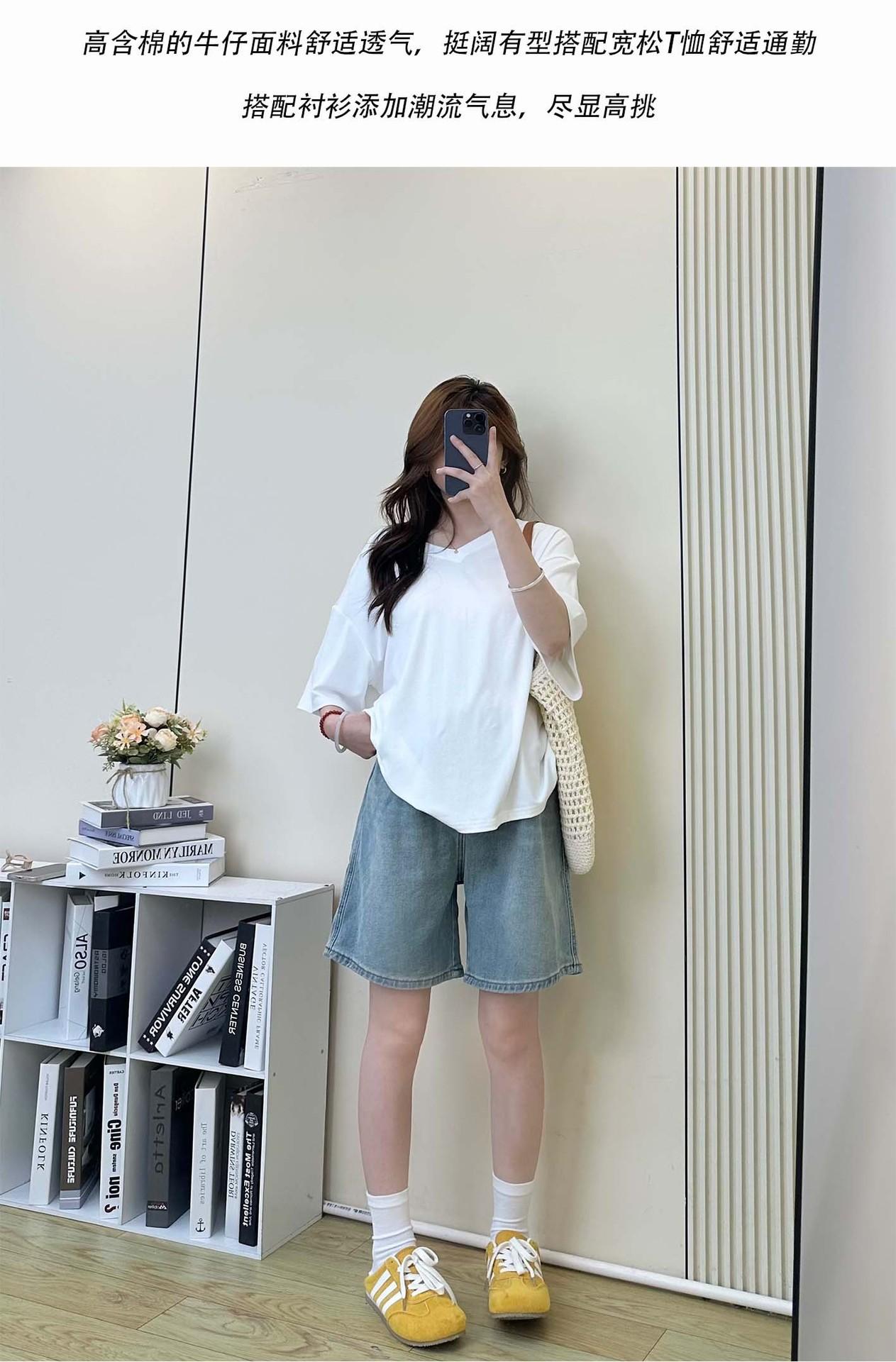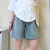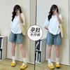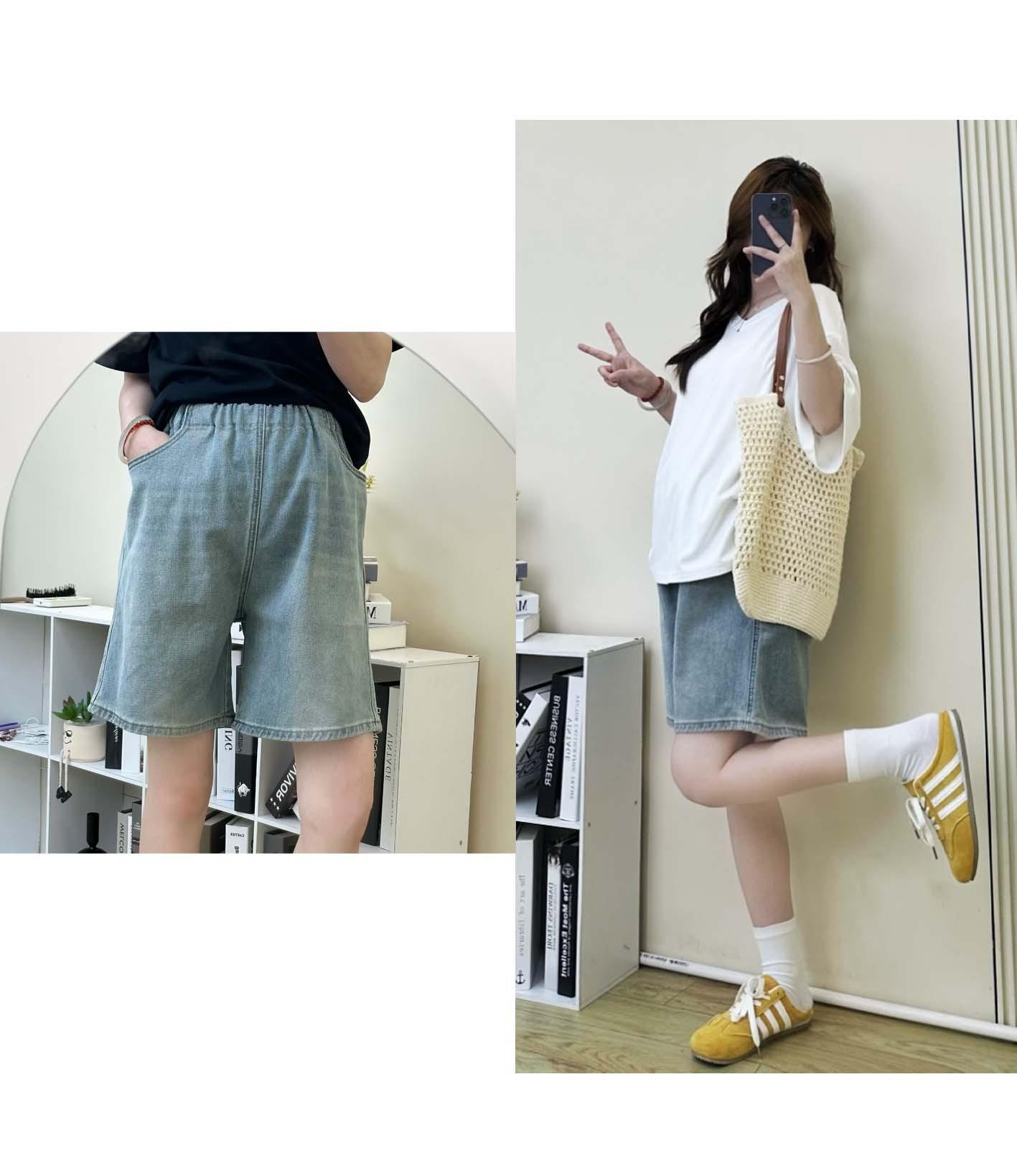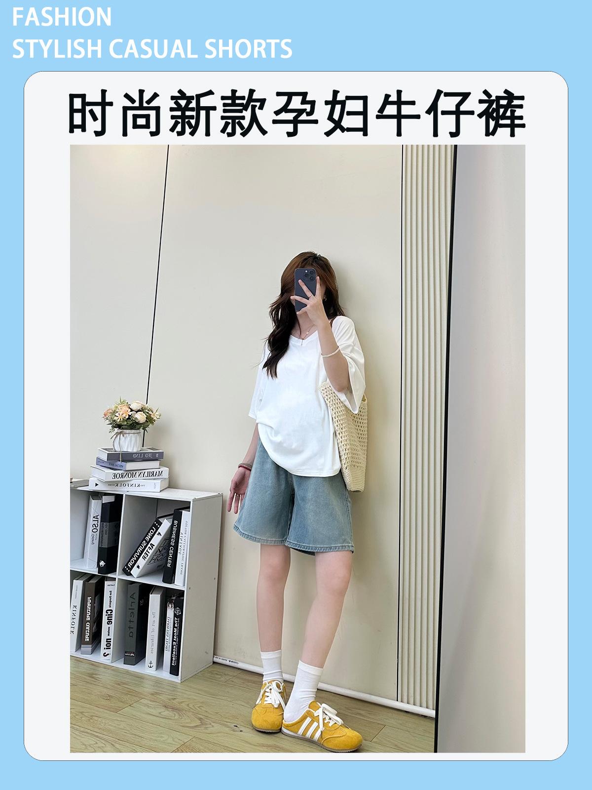 Pantalones de Maternidad Verano Delgados Ropa Exterior Sin Soporte Vientre Shorts de Mezclilla de Maternidad Sueltos Adelgazantes Rectos de Pierna Ancha