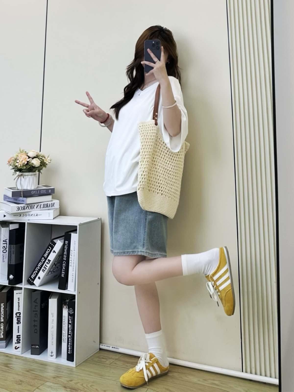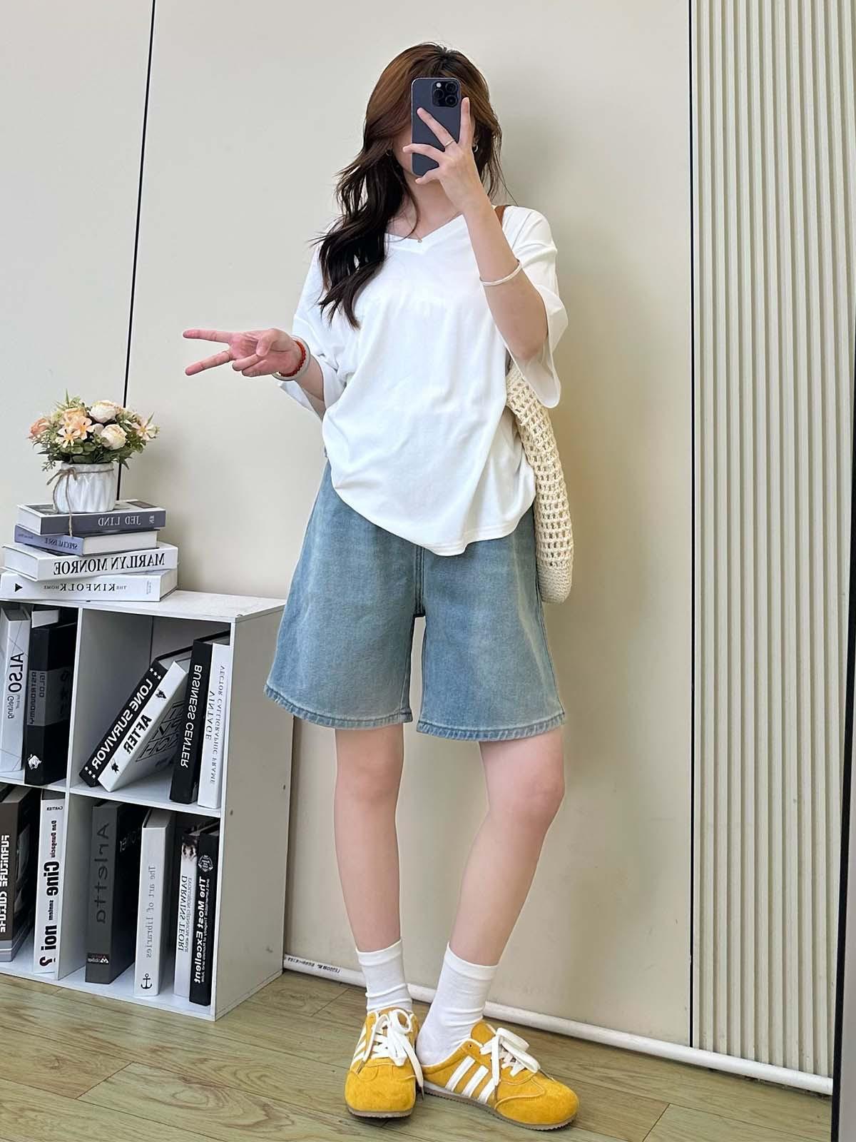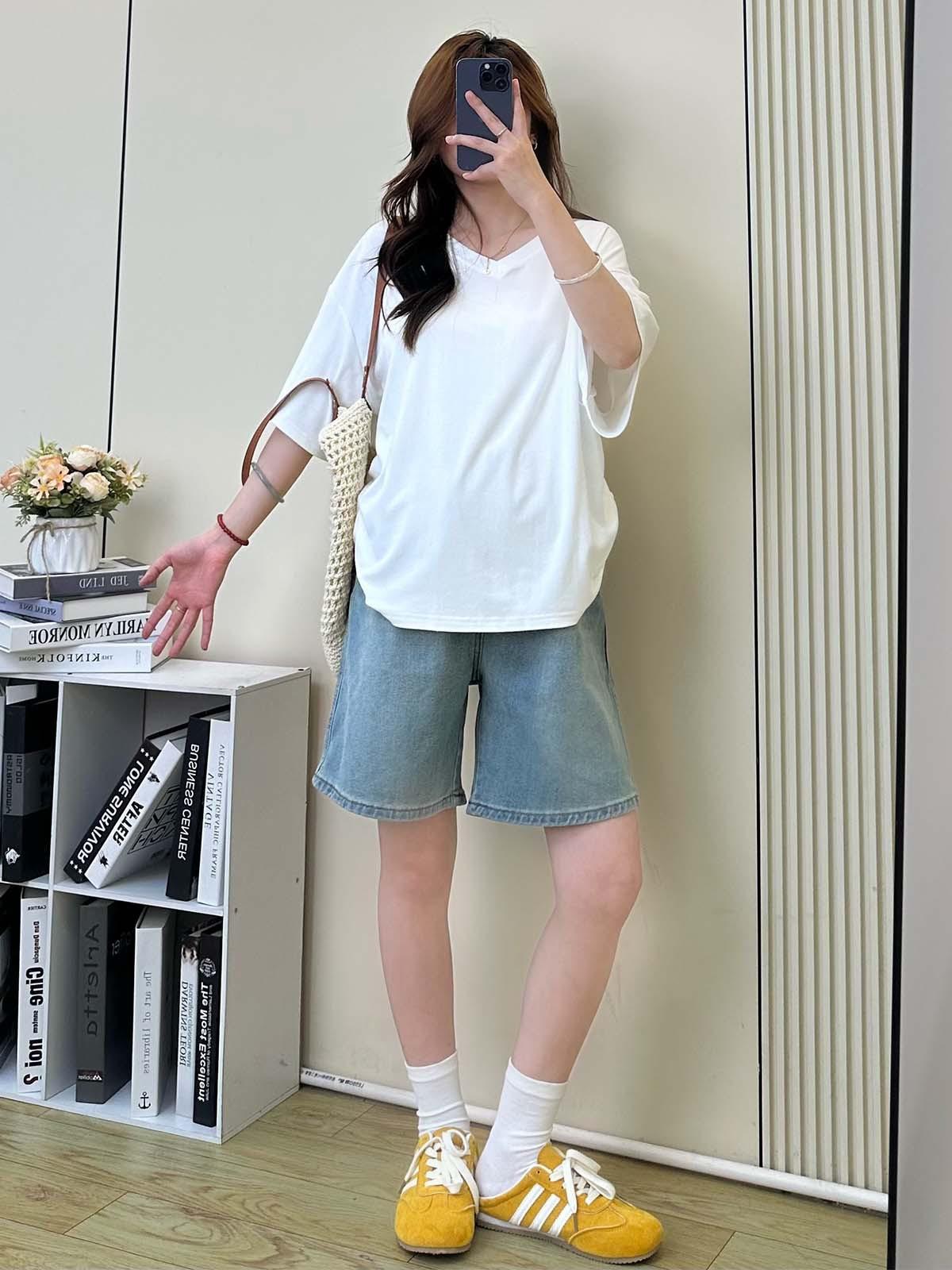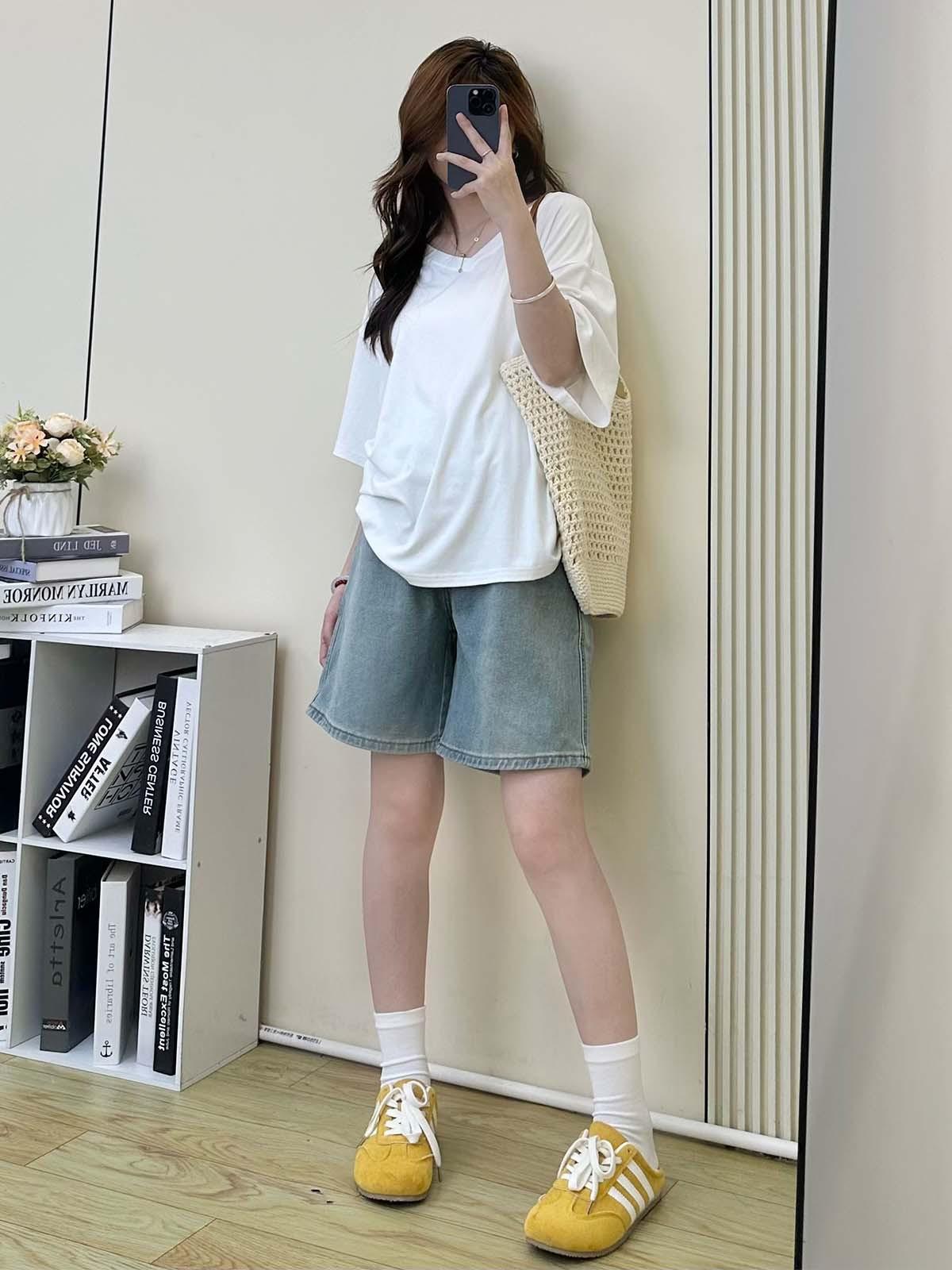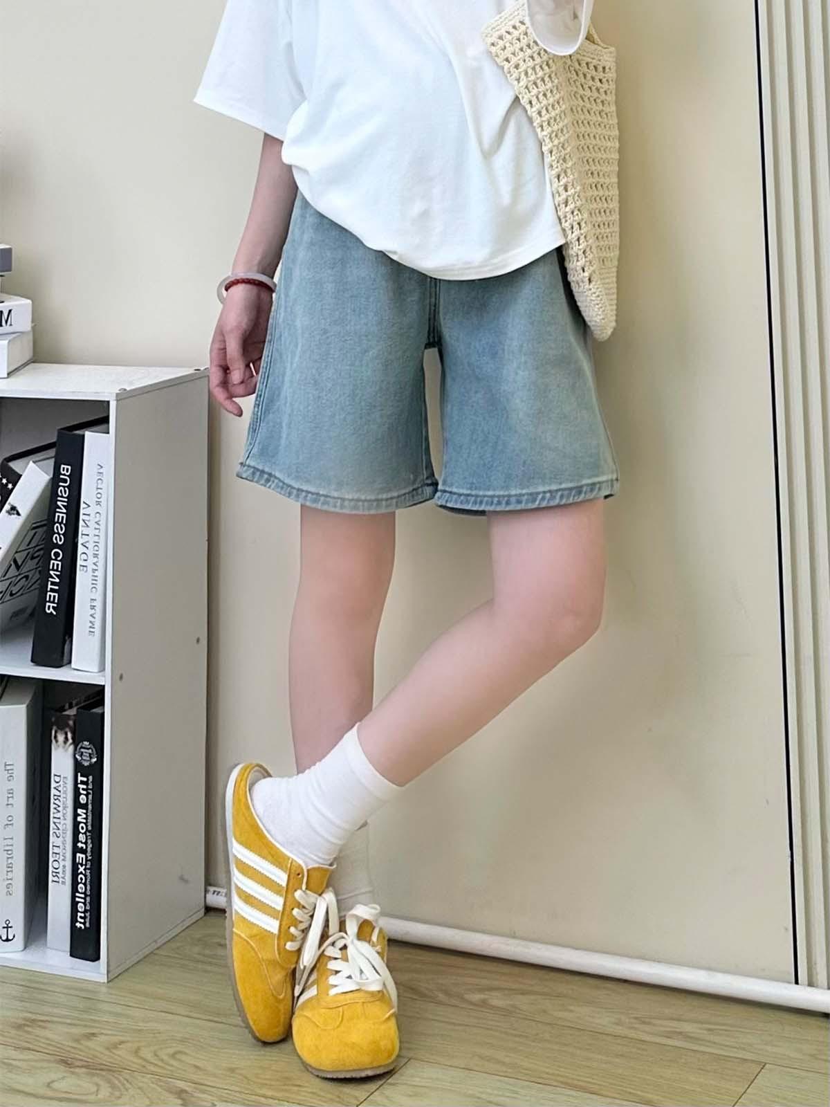 Pantalones de Maternidad Verano Delgados Ropa Exterior Sin Soporte Vientre Shorts de Mezclilla de Maternidad Sueltos Adelgazantes Rectos de Pierna Ancha