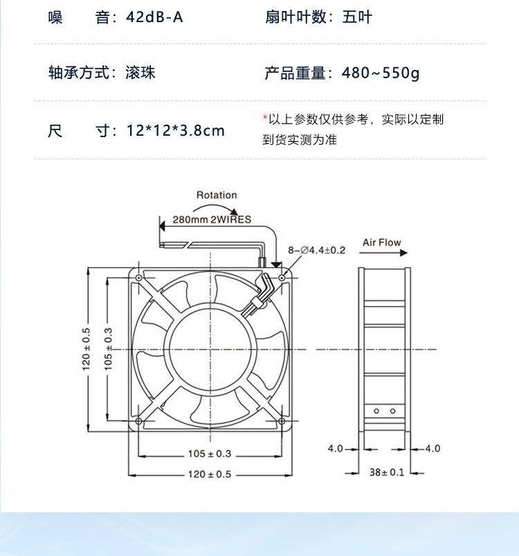 Ventilador 12038 doble rodamiento de bolas ventilador de refrigeración de cobre puro 12 cm motor de cobre en stock caja de distribución especial