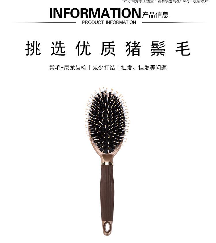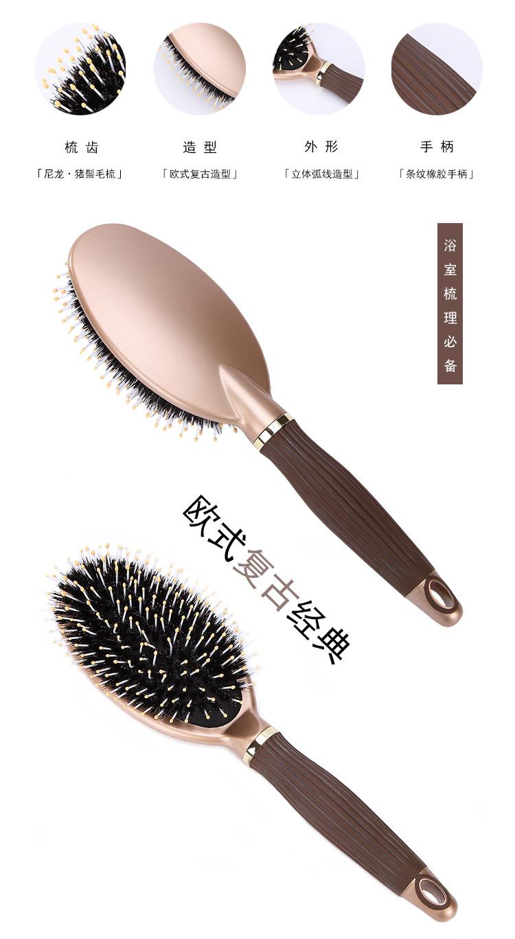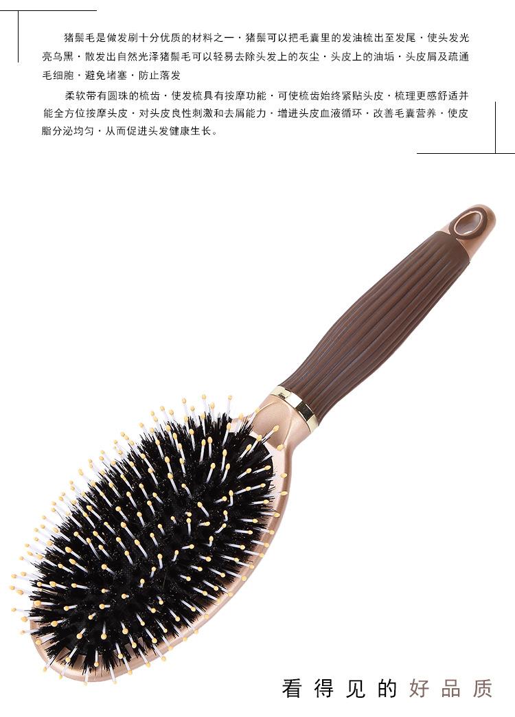 Compra Cepillo Grande Peine Salón de Peluquería Hogar Masaje Cuero Cabelludo Peine de Plástico Alta Calidad Cerdas de Cerdo Mango Antideslizante Peine Herramientas de Peluquería al por mayor en Joom.pro
