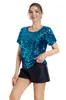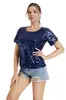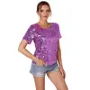 CAMISA DE LENTEJUELAS Esta brillante blusa adopta una decoración de capa de lentejuelas completas de doble cara.. El tejido de alta elasticidad y el forro suave lo hacen adecuado para la mayoría de las mujeres. Esta preciosa camisa brillante presenta lentejuelas cóncavas y degradados, que pueden crear un hermoso brillo bajo las luces del escenario de danza y actuación coral.