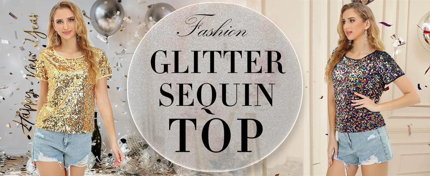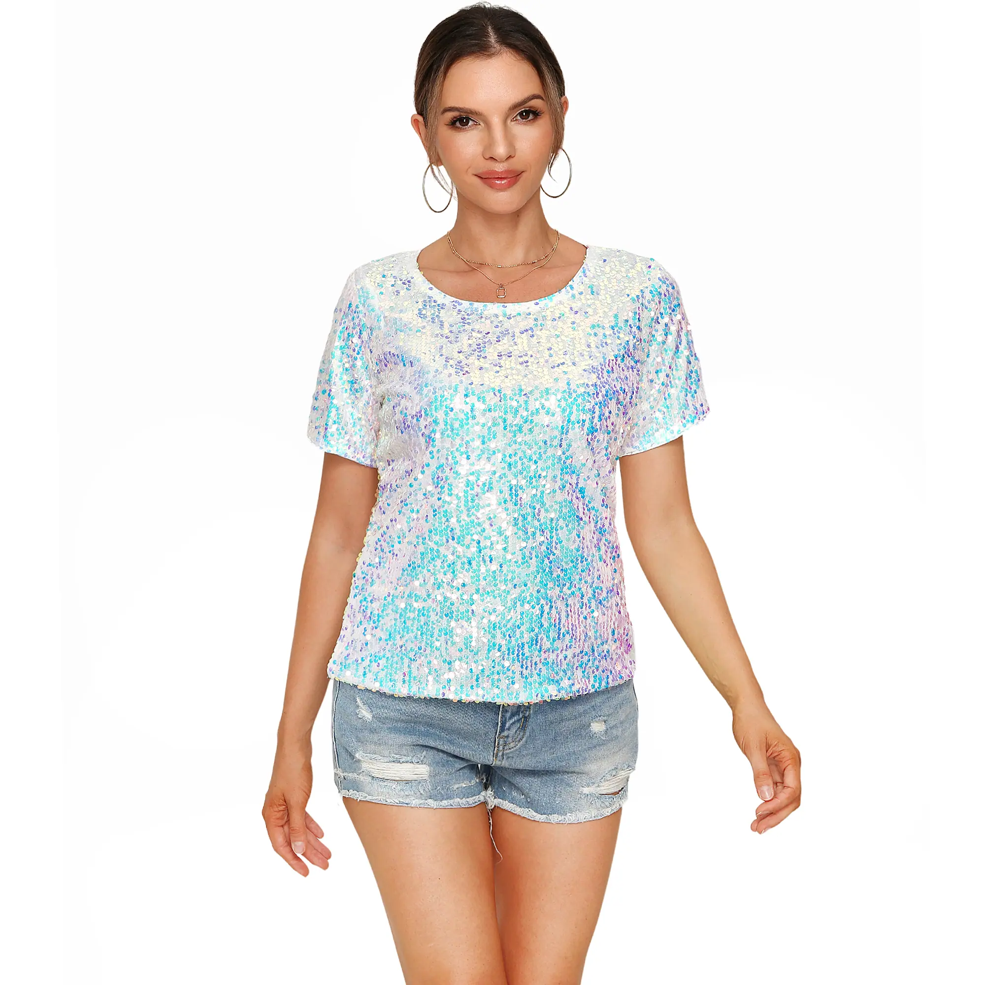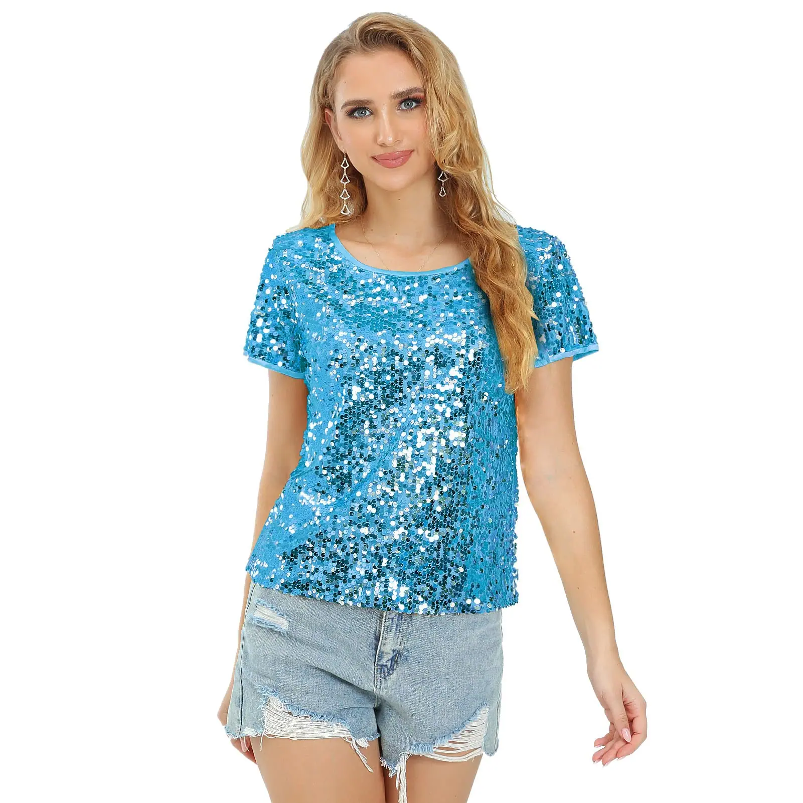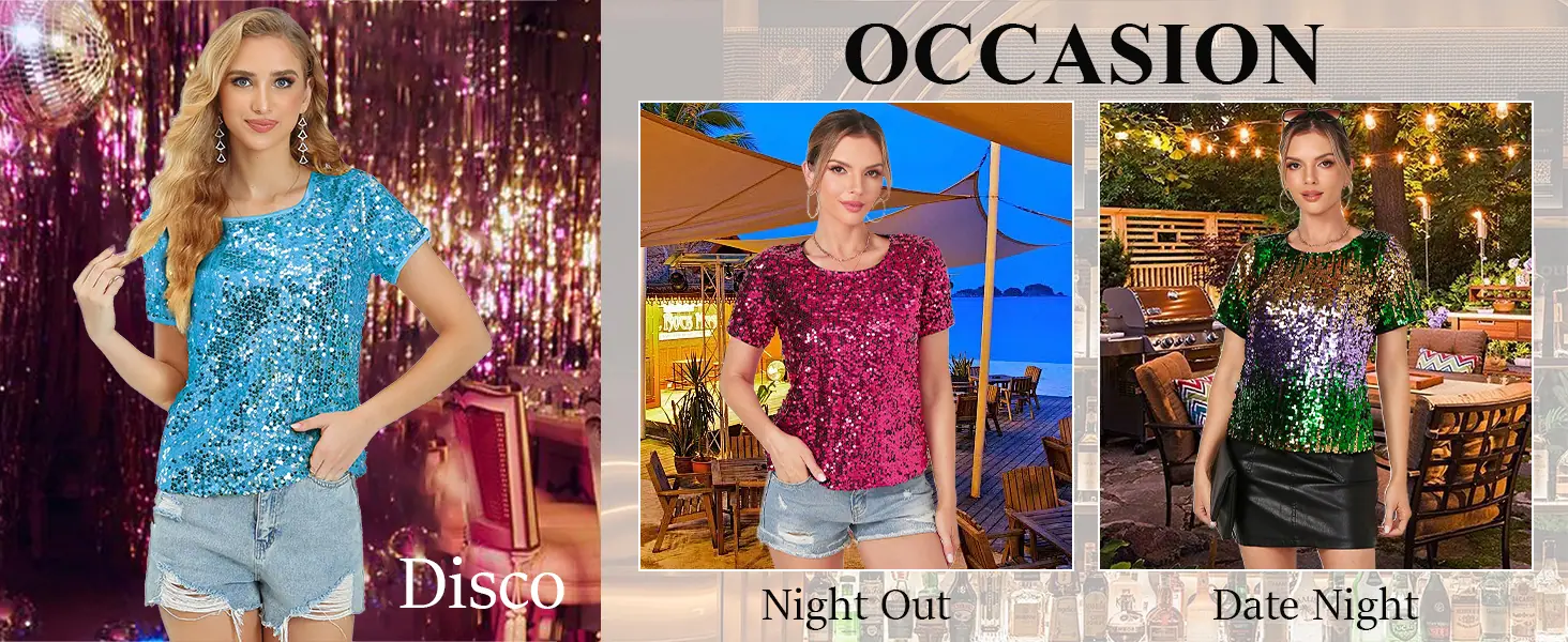 ROPA DE FIESTA - Es un Top de Lentejuelas Perfecto para Mujer Como Camisas de Fiesta, Tops de Actuación, Salida Nocturna, Atuendo Disco. Fácil de combinar con todo para un look noble sin esfuerzo, de día o de noche. Es tu mejor ropa de viaje, haciendo que tus fotos brillen y sean artísticas.