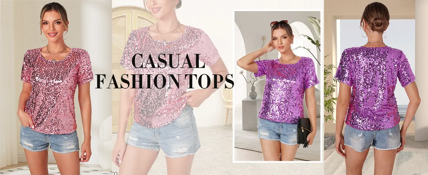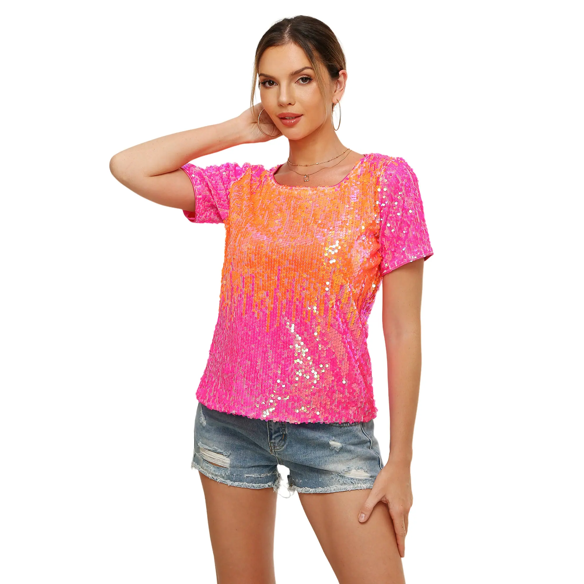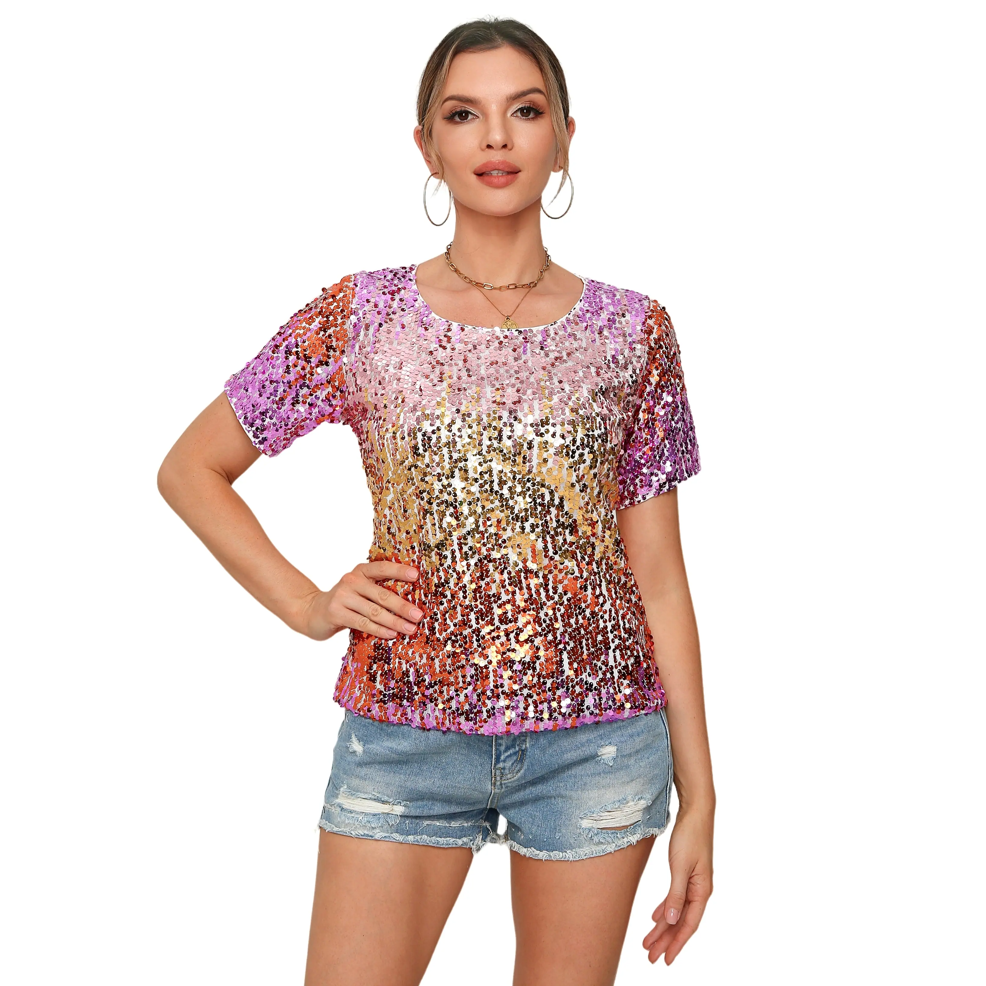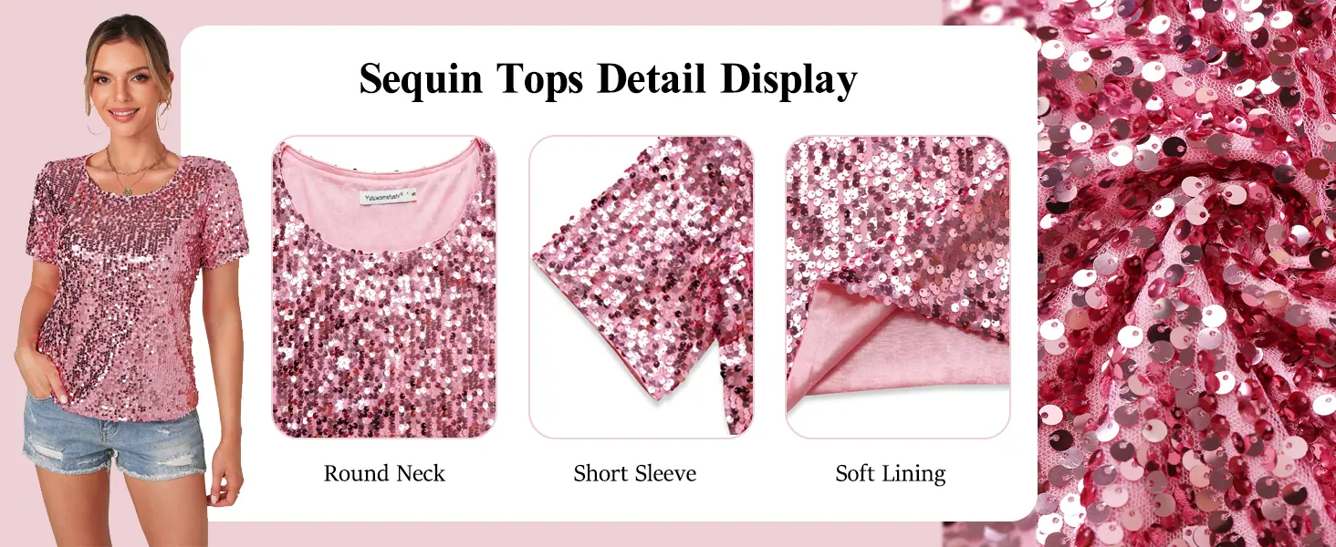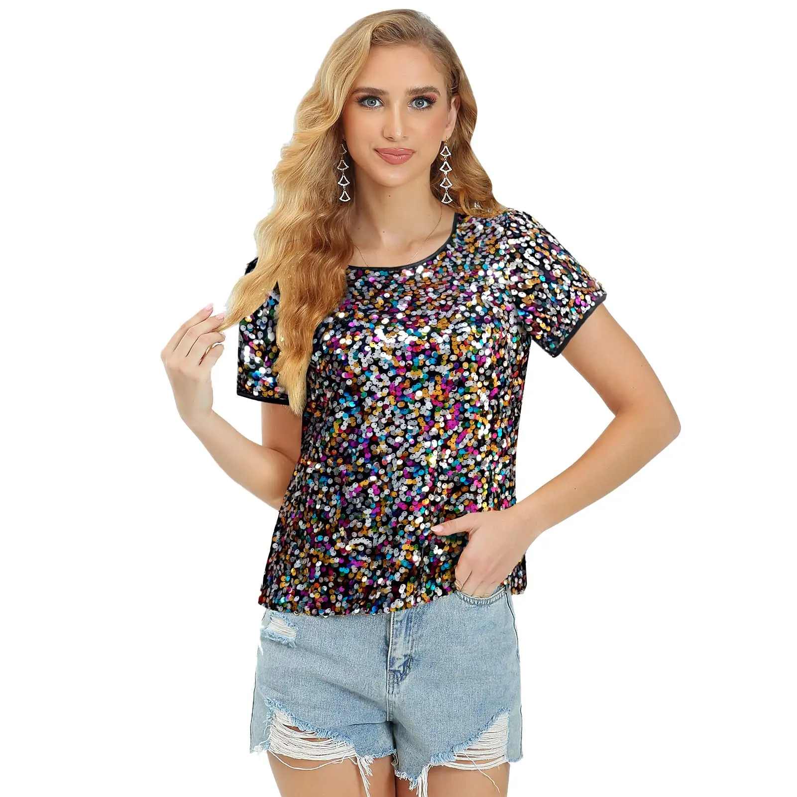 ROPA DE FIESTA - Es un Top de Lentejuelas Perfecto para Mujer Como Camisas de Fiesta, Tops de Actuación, Salida Nocturna, Atuendo Disco. Fácil de combinar con todo para un look noble sin esfuerzo, de día o de noche. Es tu mejor ropa de viaje, haciendo que tus fotos brillen y sean artísticas.