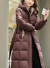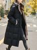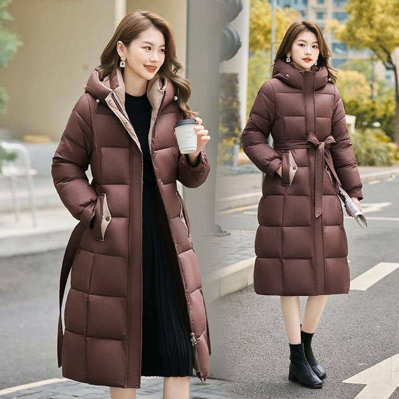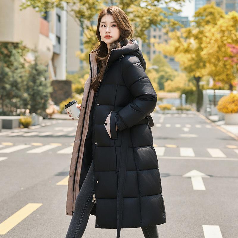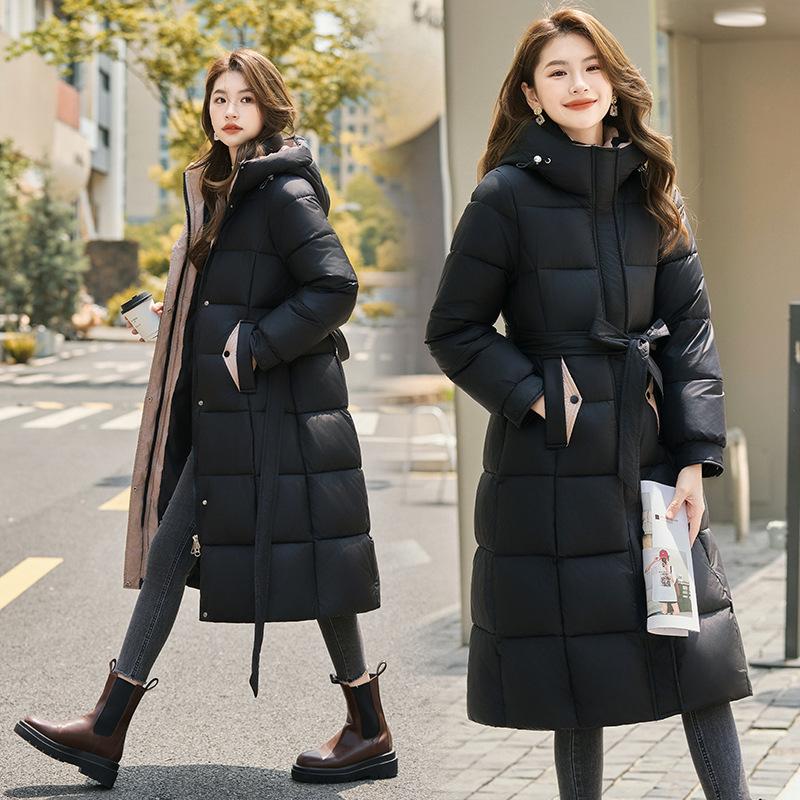 Invierno 2025 Nuevo Abrigo de Algodón Grueso para Mujer de Largo Medio con Capucha y Cintura Ajustable con Cordón Moda Adelgazante Cálido Ropa Exterior
