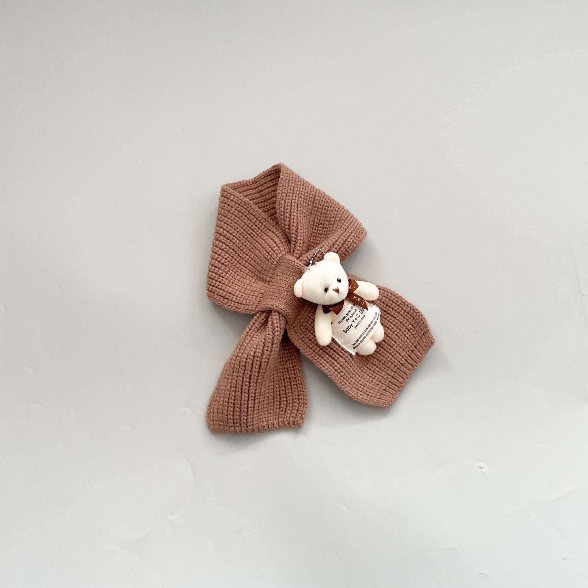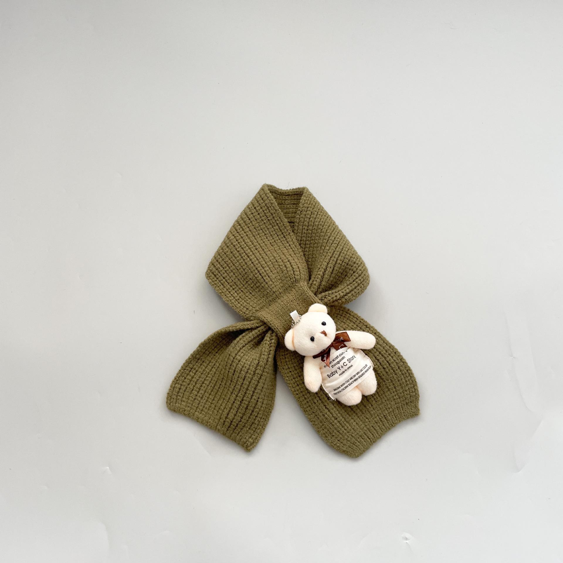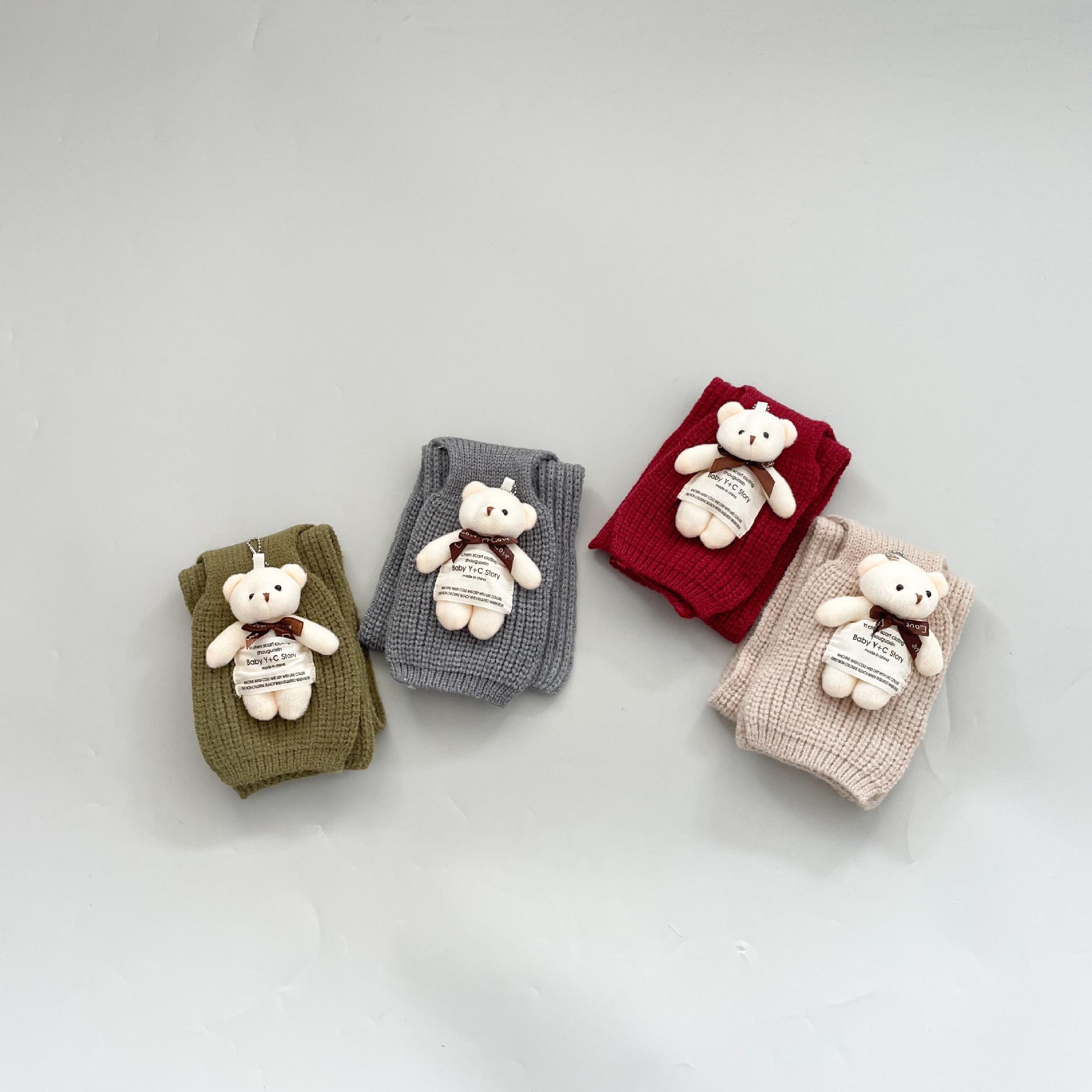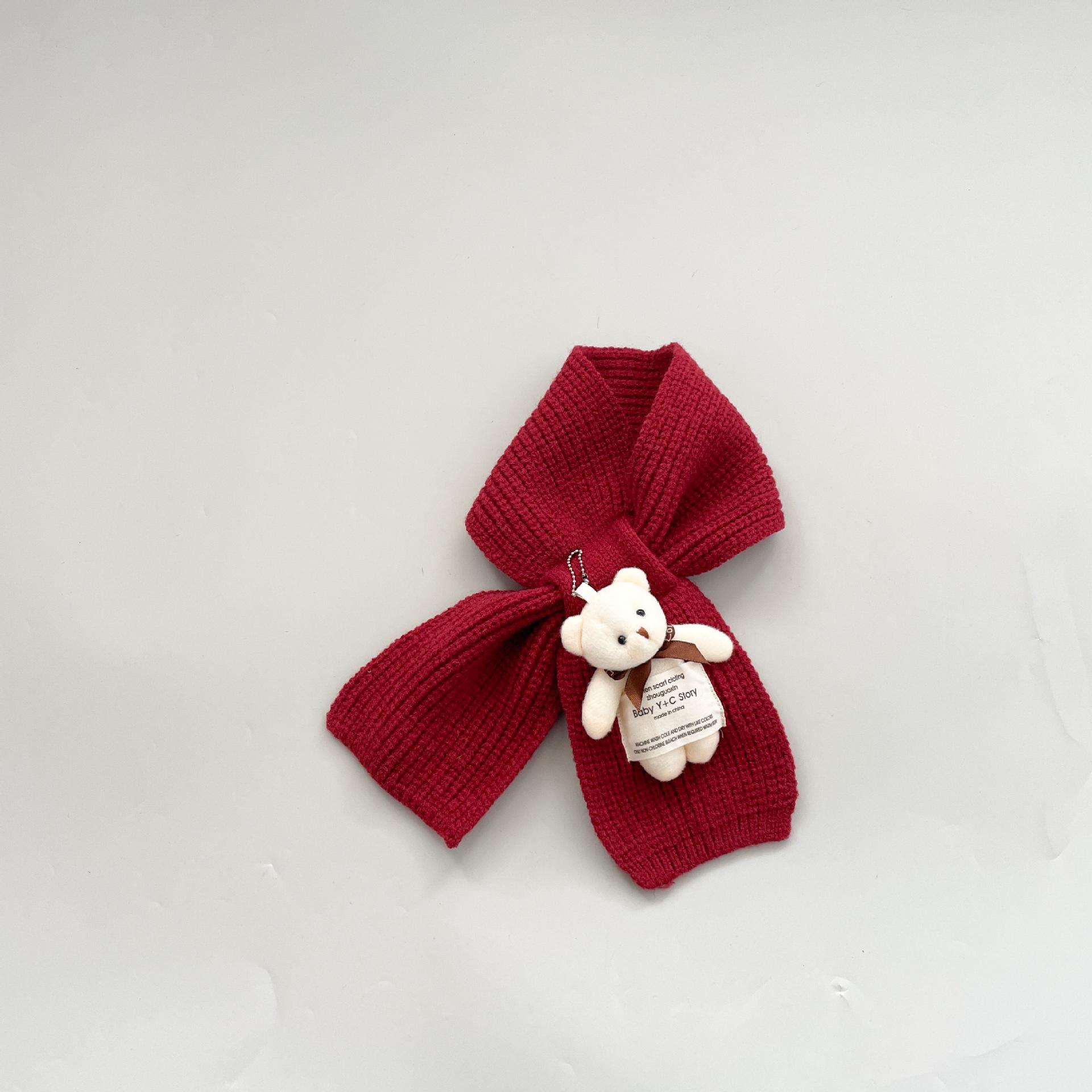 Bufanda infantil estilo occidental linda etiqueta de tela oso niñas bufanda cálida de punto caricatura Cruz bufanda de lana para niños