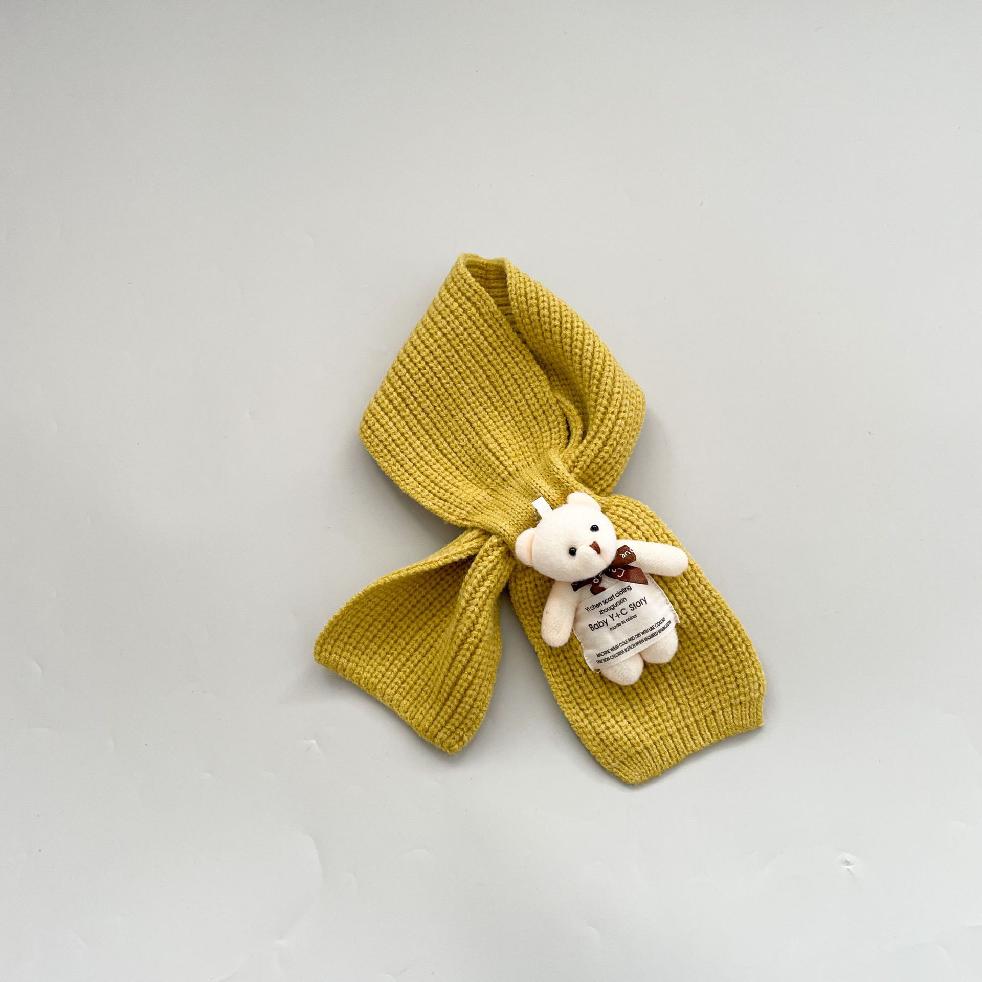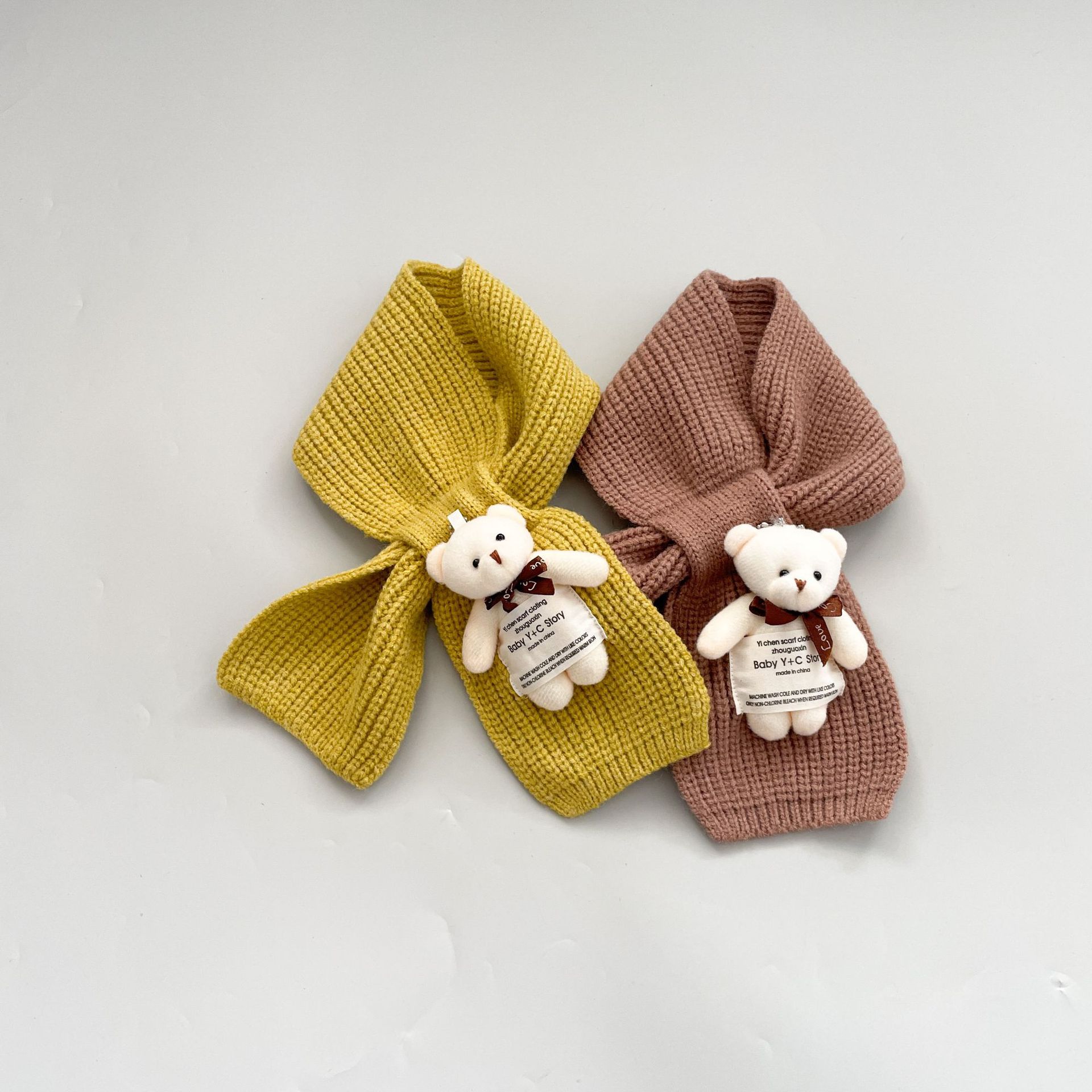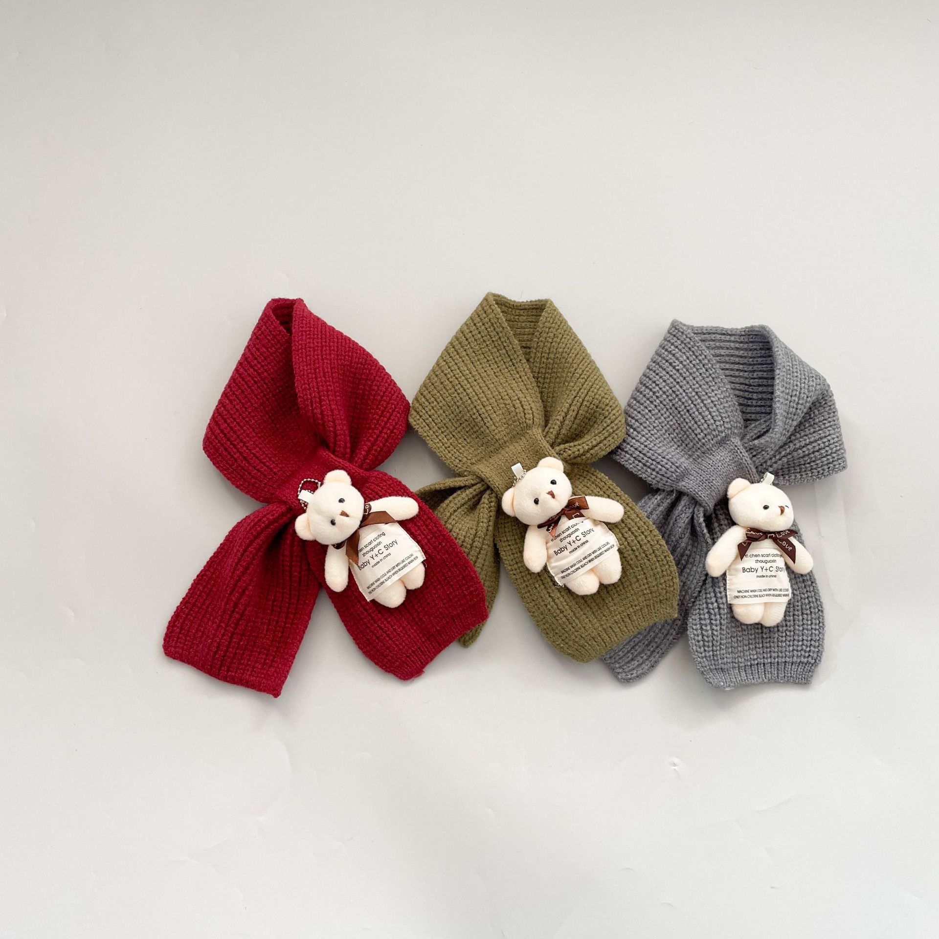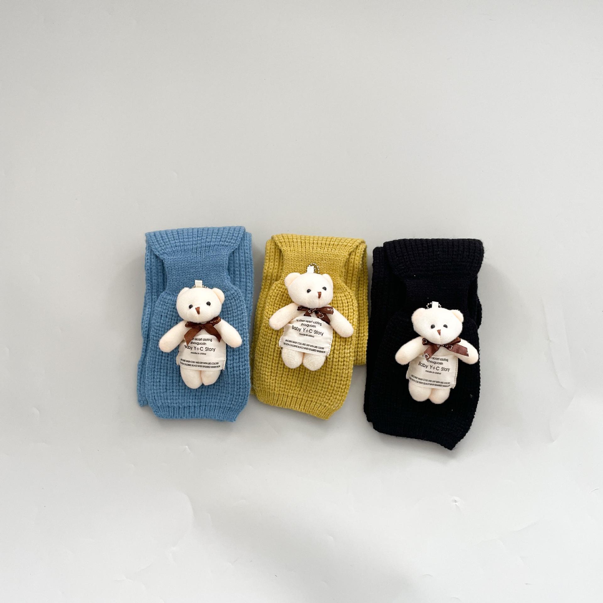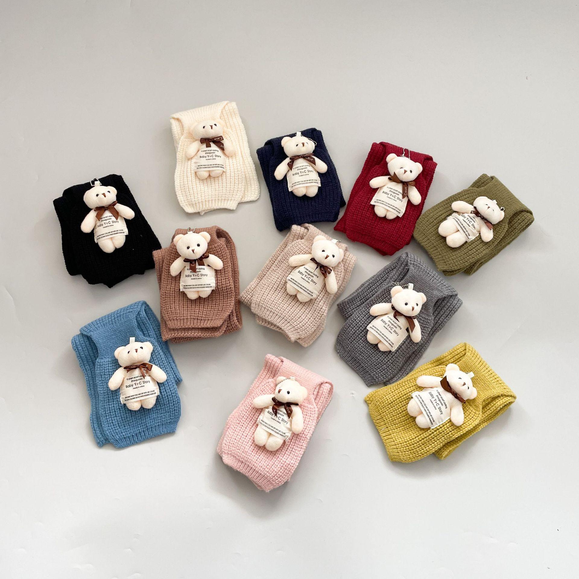 Bufanda infantil estilo occidental linda etiqueta de tela oso niñas bufanda cálida de punto caricatura Cruz bufanda de lana para niños